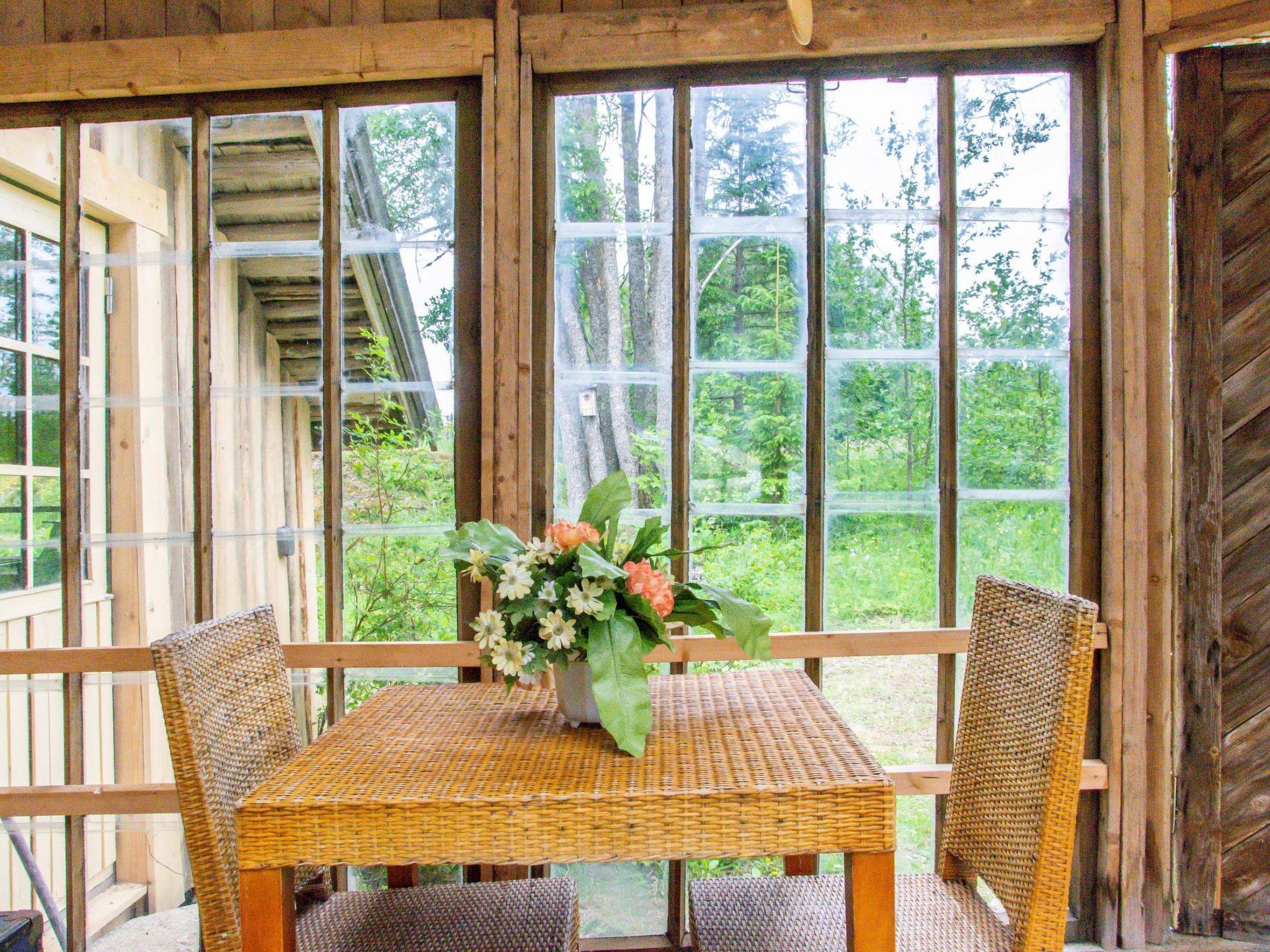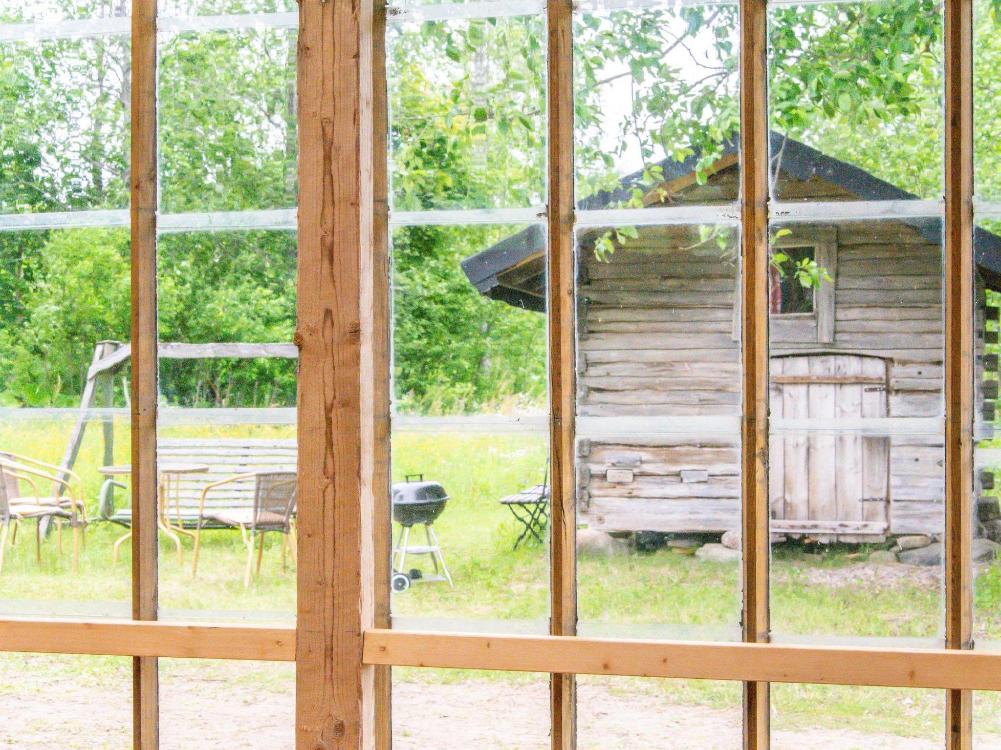 In the yard, there is a separate wood-heated sauna by a small grassy pond. Water for the sauna is carried from the pond, and the sauna has electric lighting.