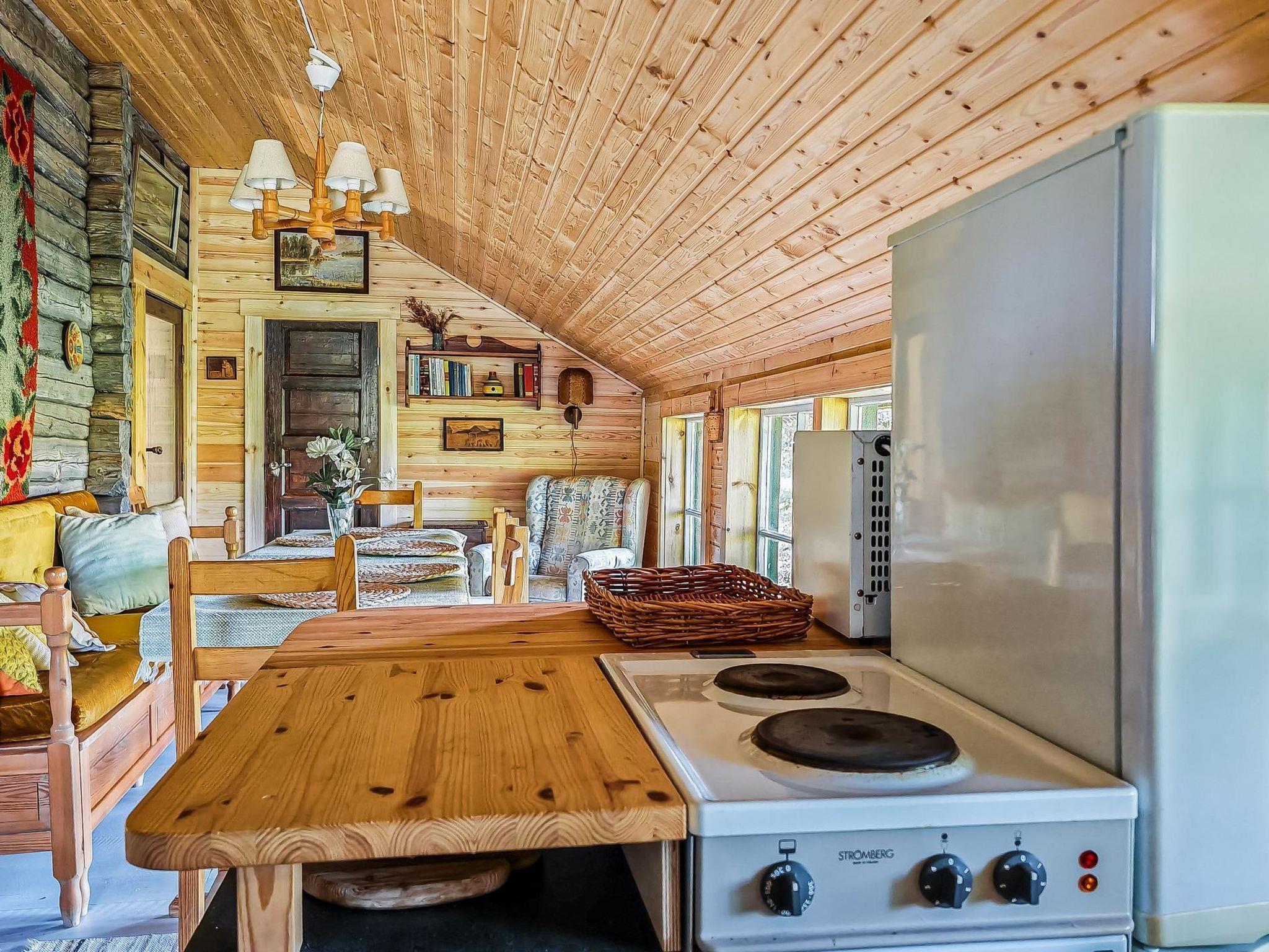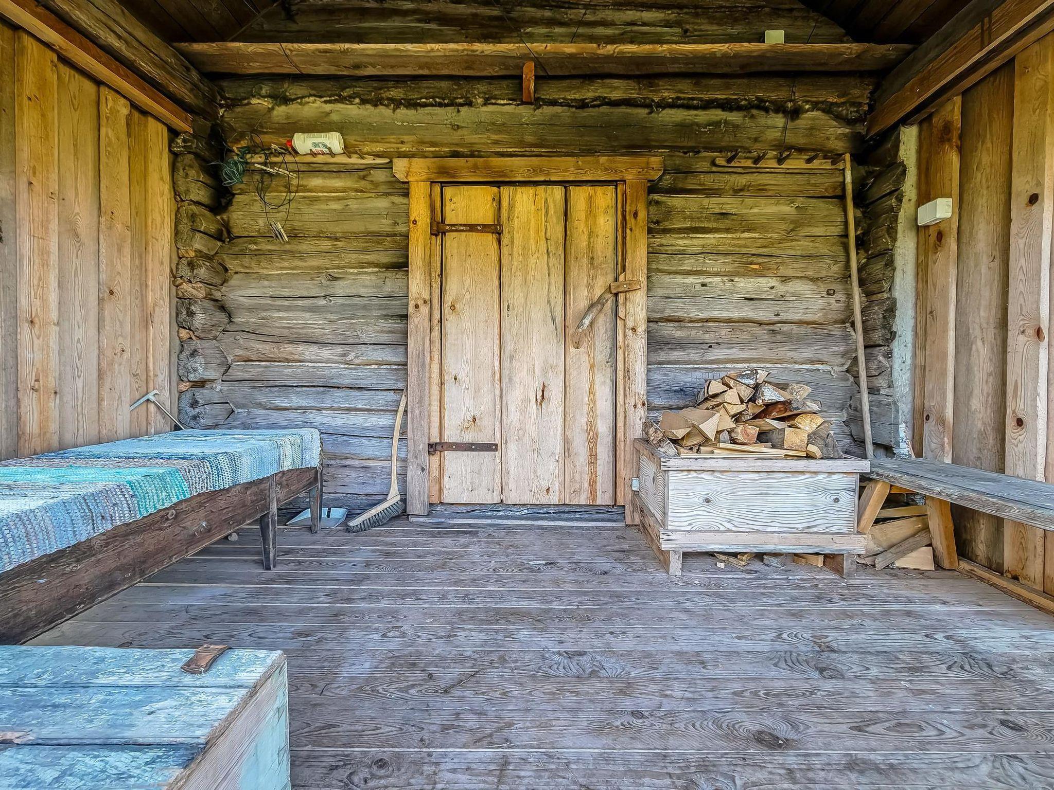 At the shore, 350 meters from the cabin, there is a separate sauna with a wood-heated stove, where water is carried from the lake. The sauna does not have electric lighting. Additionally, there is a small separate building with a dressing room and a bunk bed. These beds are optional, but the maximum accommodation capacity is still 7 people.