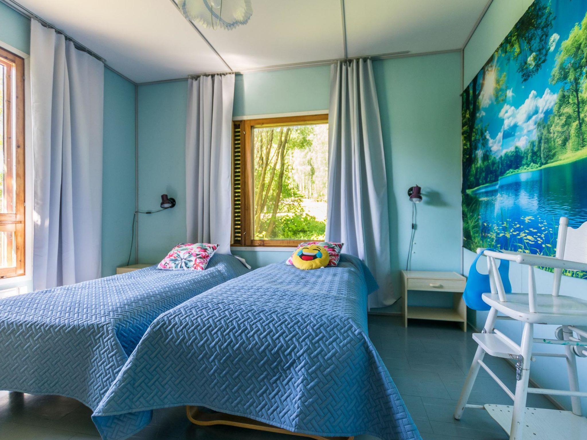 77 km northwest of Jyväskylä, Lake Iso-Löytänä 30 m, shallow sandy beach, no pier, rowing boat.