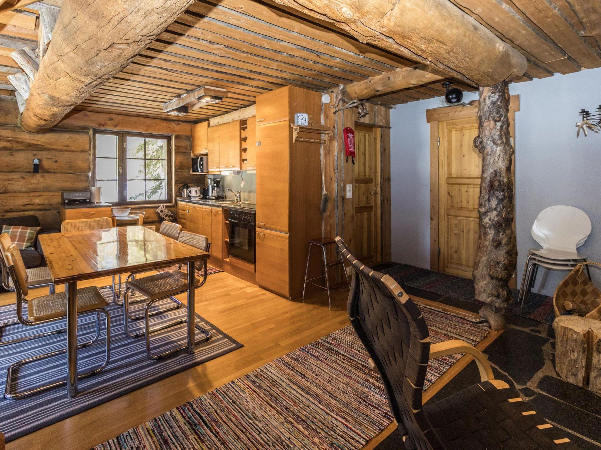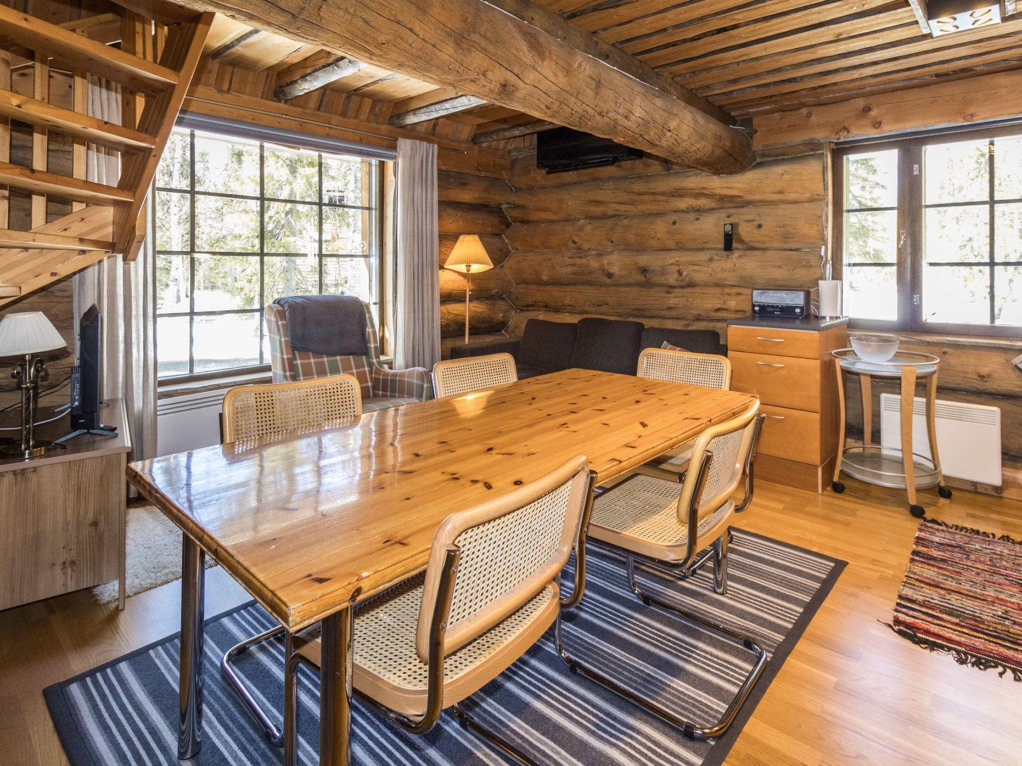 One half (apartment) of semi-detached silverlog house unit 1991, living room/kitchen convertible sofa/bed, bedroom double bed, upstairs 2 bedrooms with double bed in each, 2 alcoves to bedroom, both with mattresses, sauna, washroom, WC also upstairs, balcony. 2 mattresses provided as extra beds.