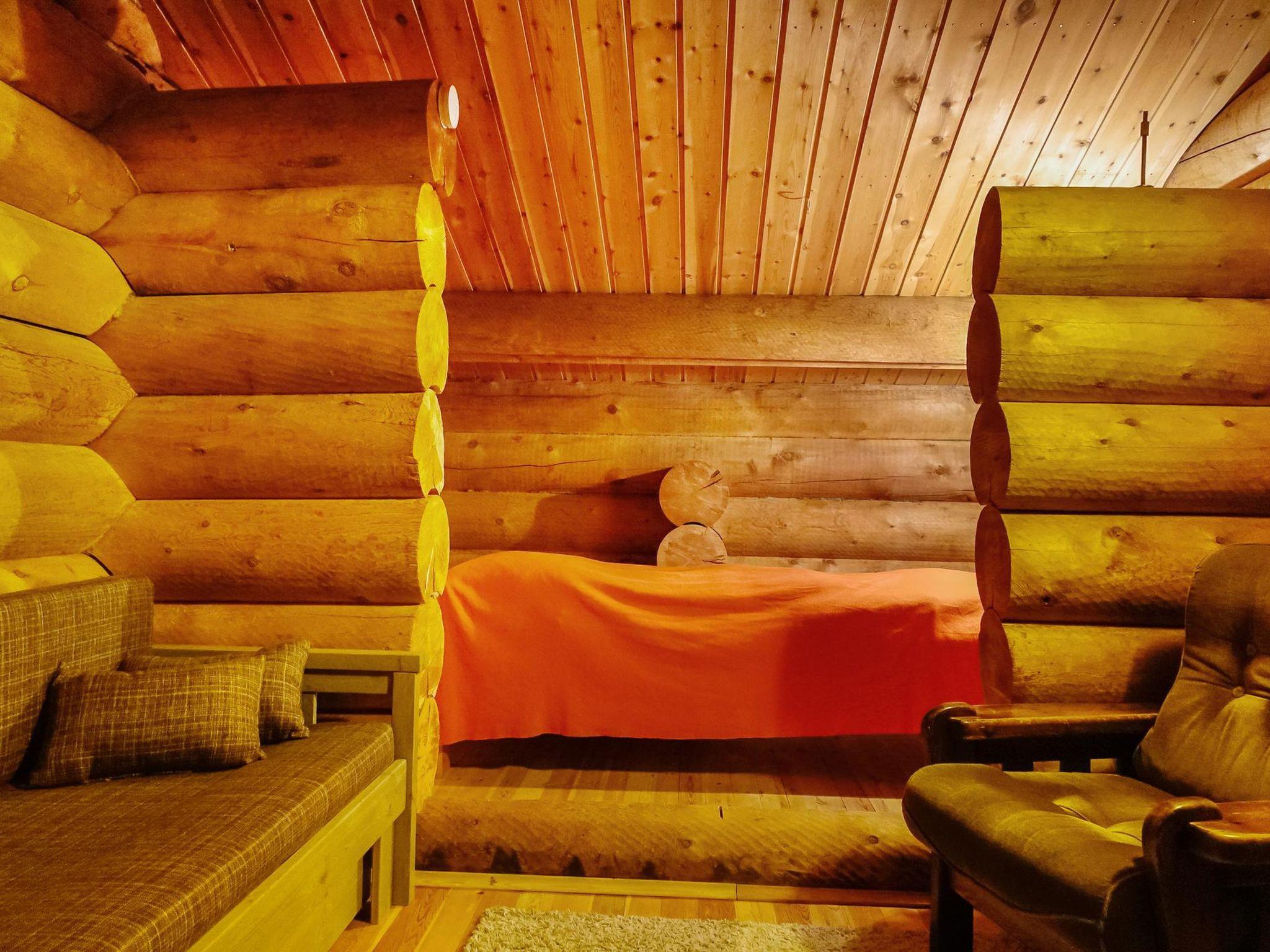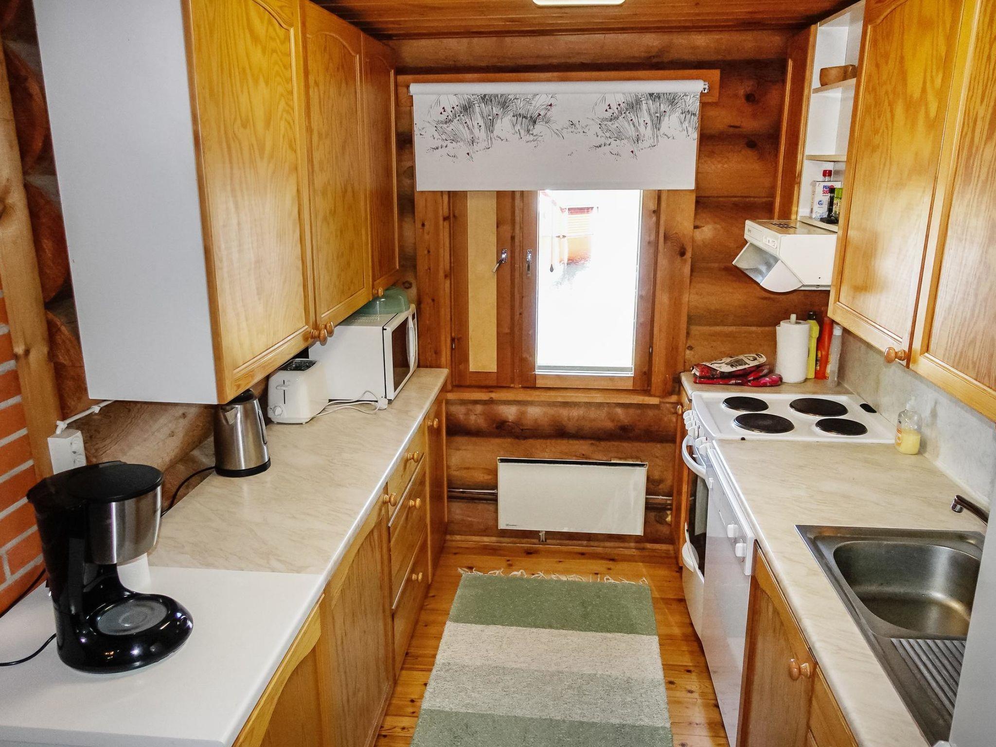 The sturdy log cabin was completed in 1996. Spacious living room with 2 extra beds (sofa beds), kitchenette, bakery oven. Upstairs bedroom with 3 beds, access via porch. The cottage has an electric sauna, washroom, dressing room and open porch.
