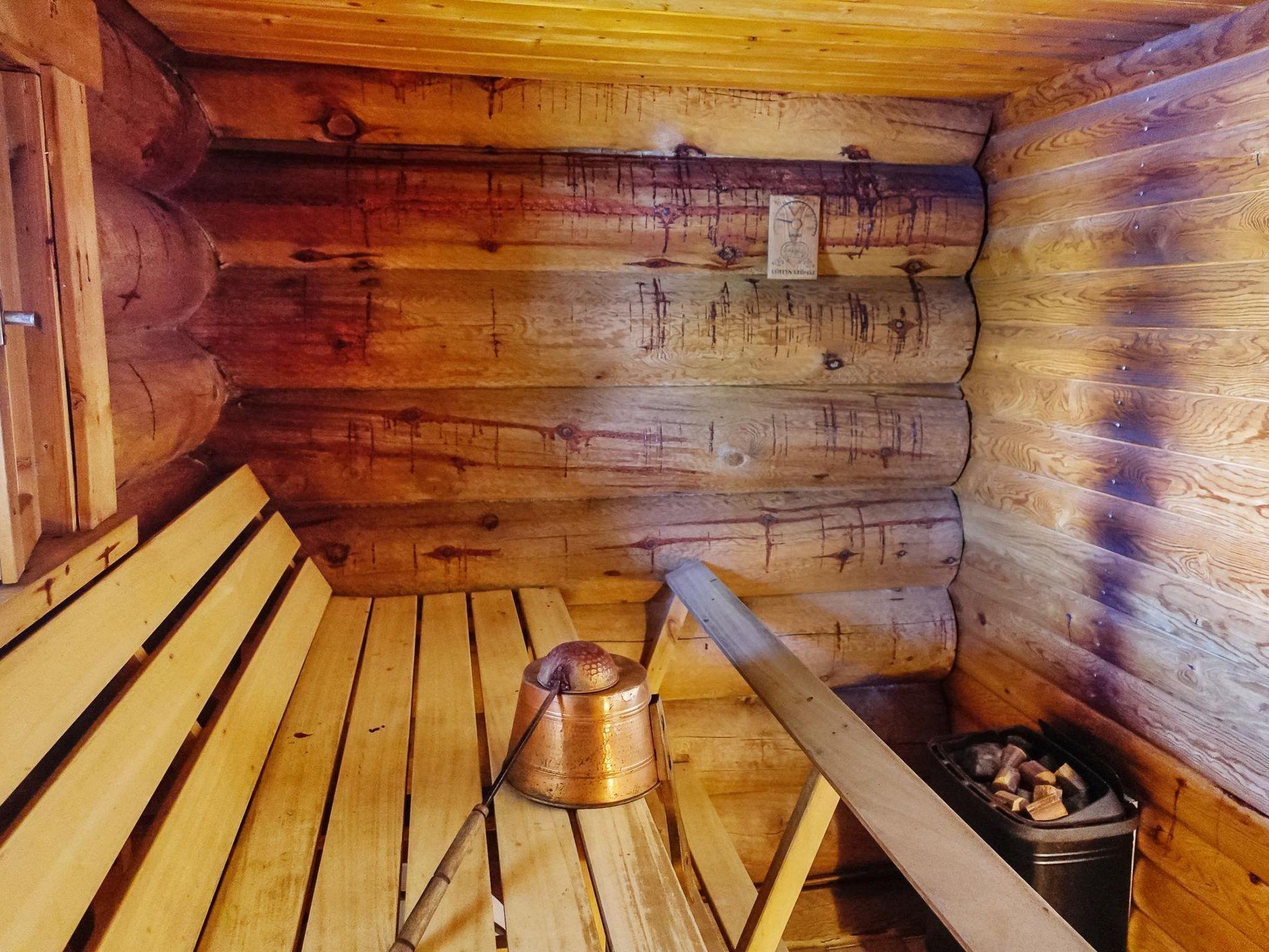 Also separate riverside sauna, wooden heated (10 m²) with fireplace room . There is no electricity in the sauna.