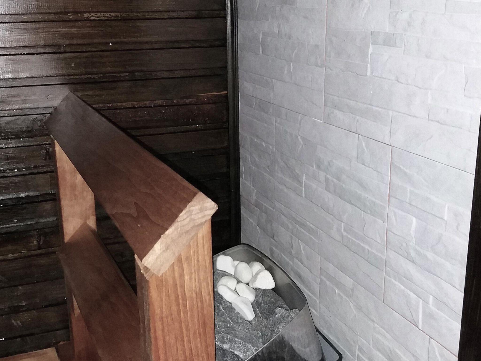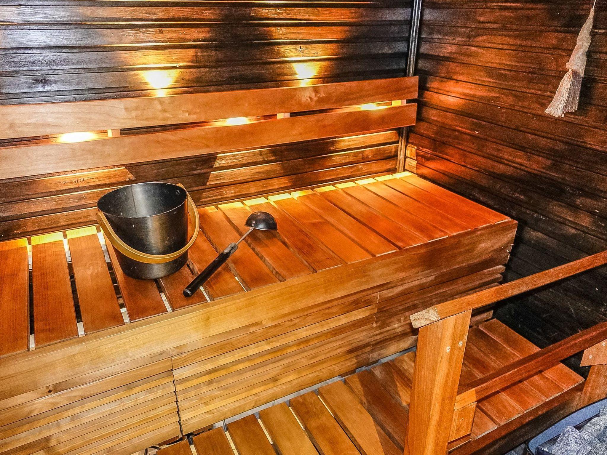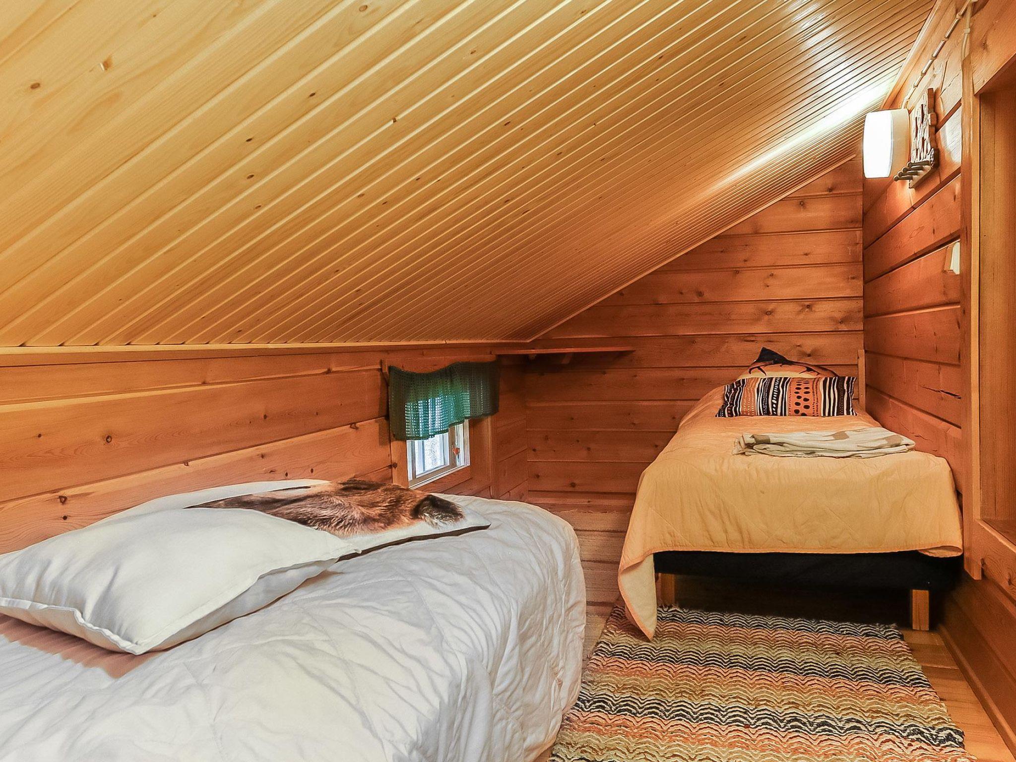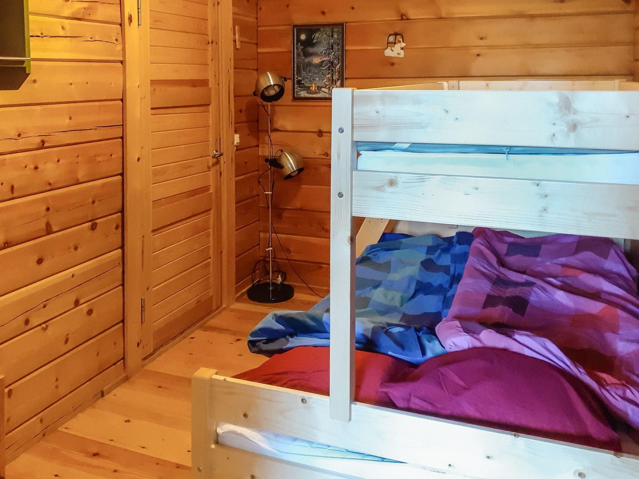 Apartment in semi-detached log building, 1989, living room/ kitchen, in ground floor there is sofa bed for two, upstairs 2 bedrooms, one with 2 beds, one with bunk bed with extendable lower bed. Additionally, sleeping alcove with sloping ceiling 2 beds, sauna with elec. stove, washroom, dressing room, open porch.