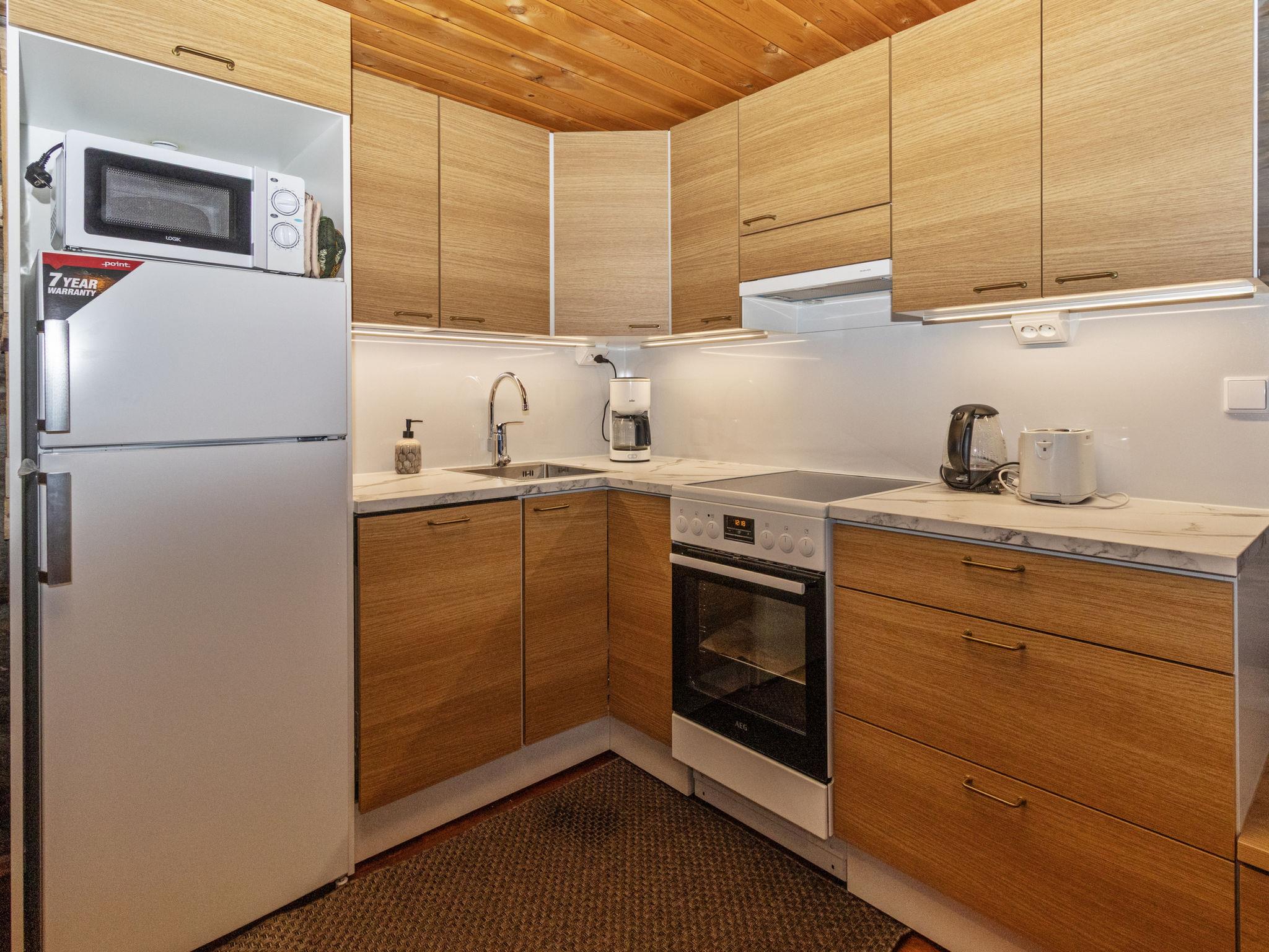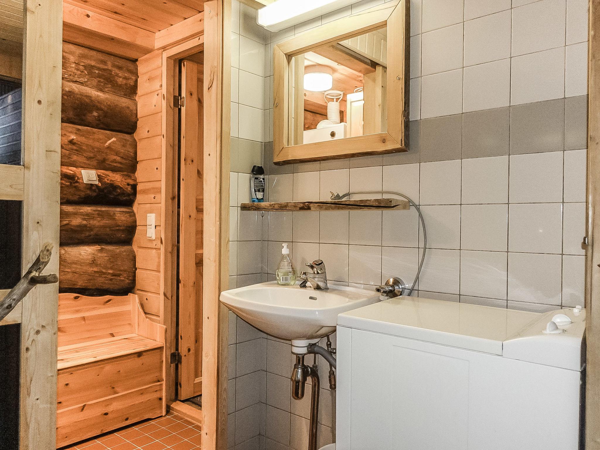 Kelo log apartment in a semi-detached house, built in 1990, living room/kitchen, bedroom with double bed, another bedroom with bunk bed, loft with 4 beds (loft 20 m², steep stairs), sauna, immediately ready electric sauna stove, washroom (2 showers and WC), separate WC and balcony.