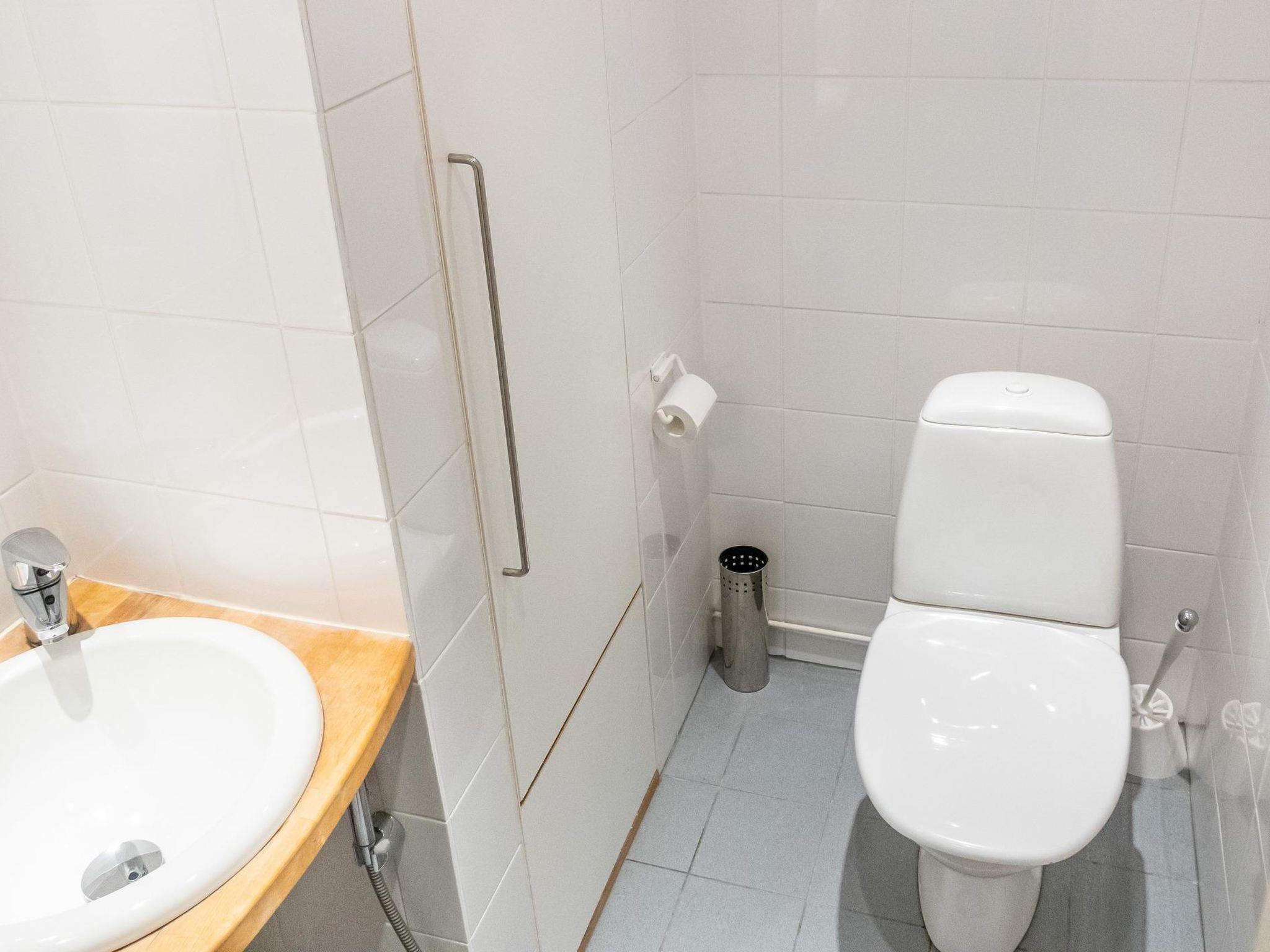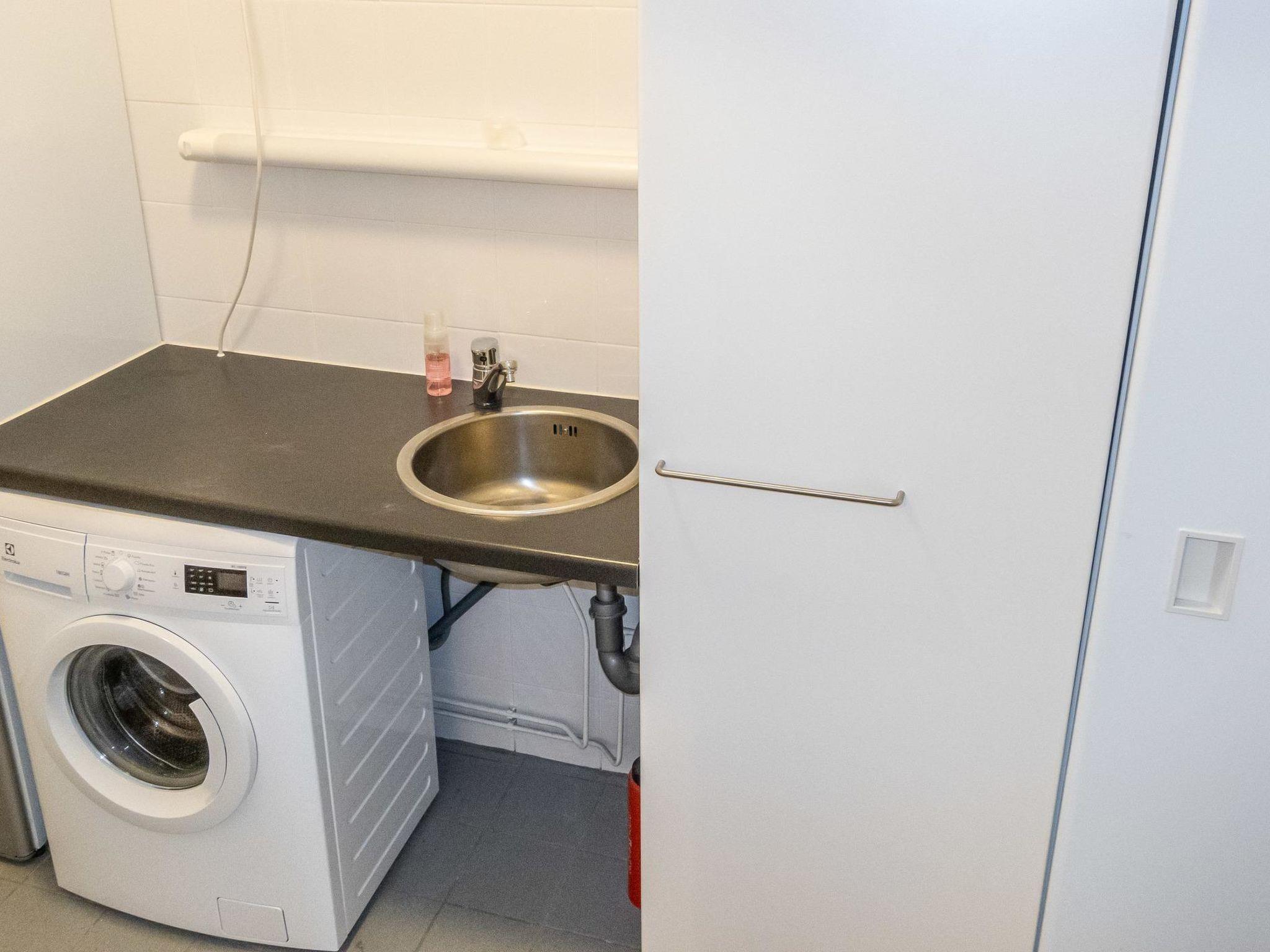 On the ground floor, bedroom with 2 beds, sauna, washroom, utility room and wardrobe. The apartment has two separate WCs, one on both floors.