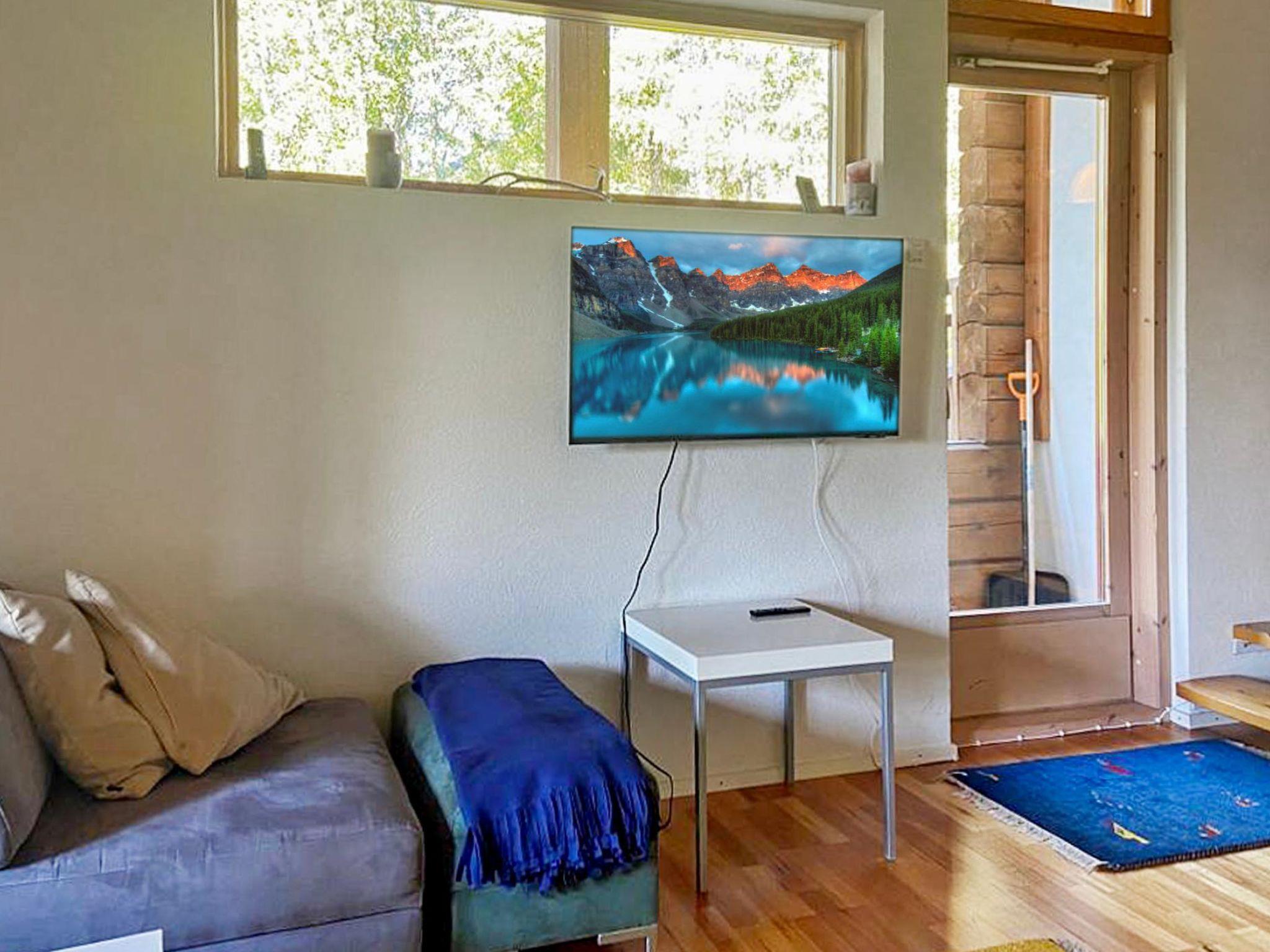 The semi-detached house is built in 2004. Facilities on two floors. On the upper floor (entrance floor), living room, kitchen, bedroom with 2 beds and another bedroom with bunk bed. Access to the loft from the upper floor, 2 bed chairs on the loft. Very steep ladder to the loft. Access to the terrace from the upper floor.