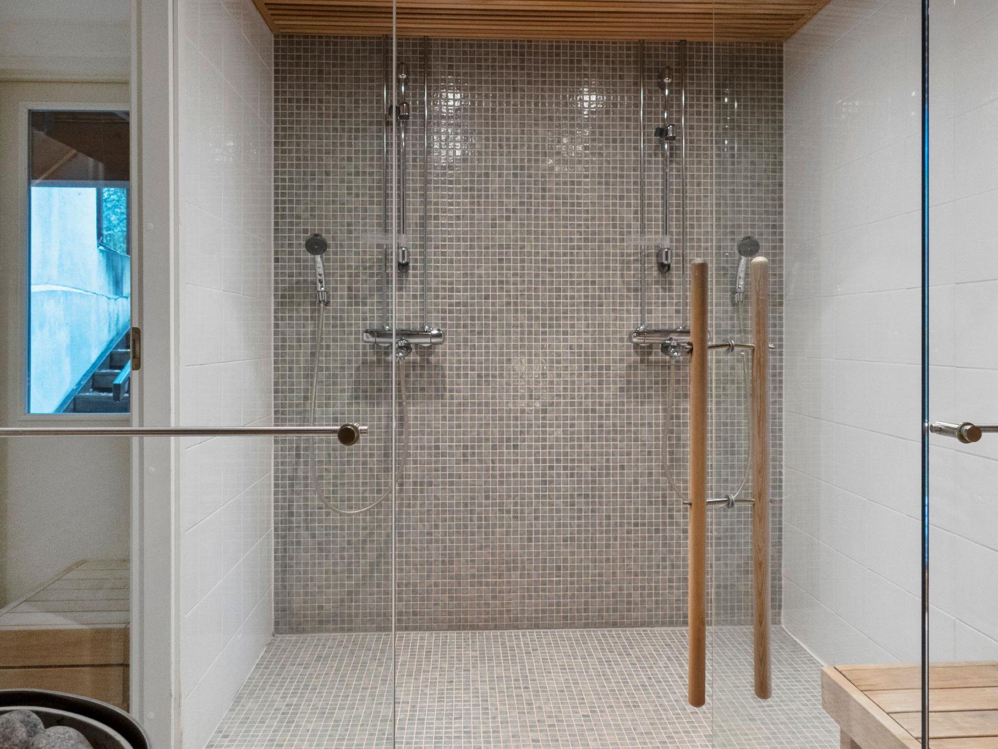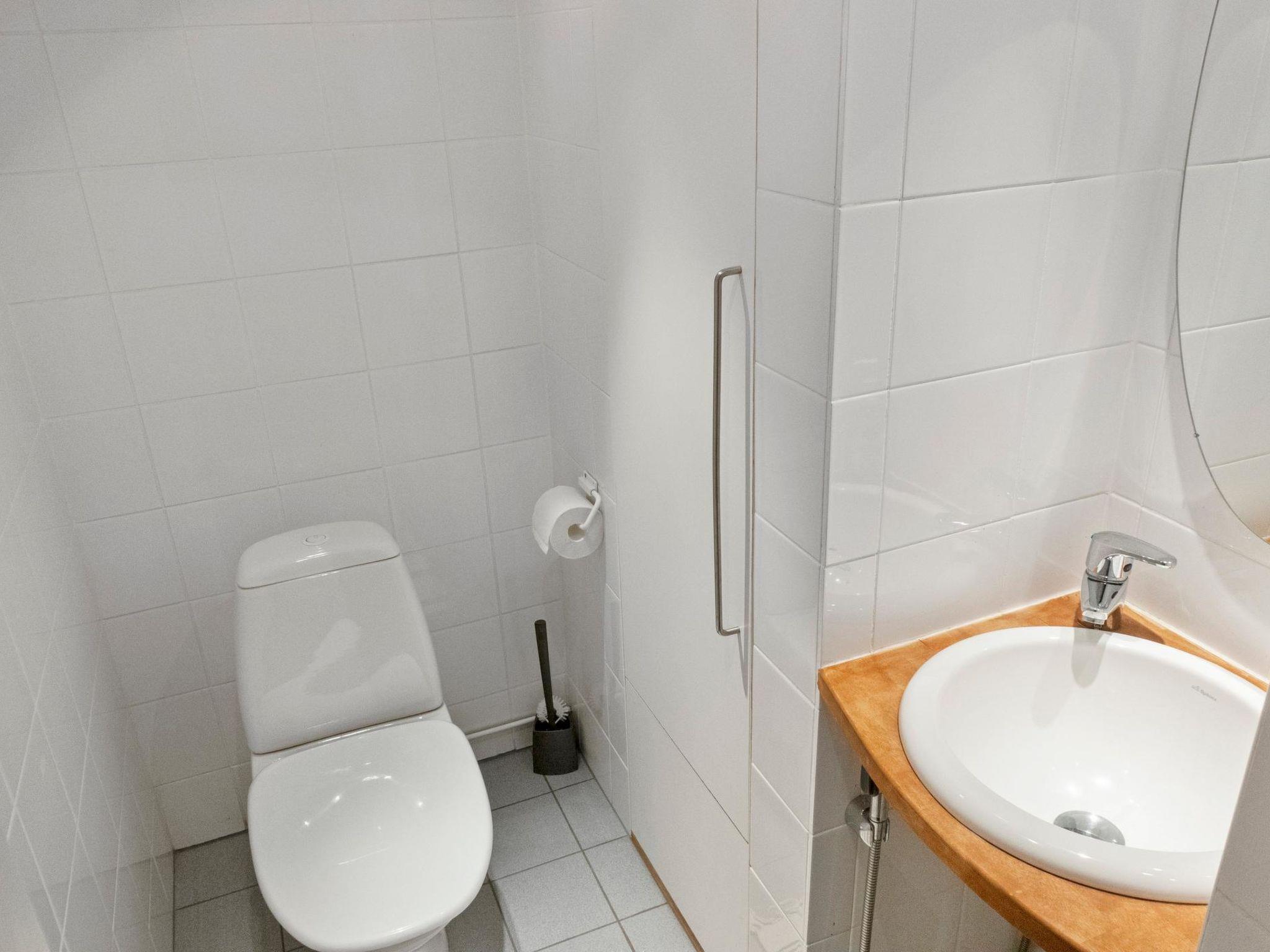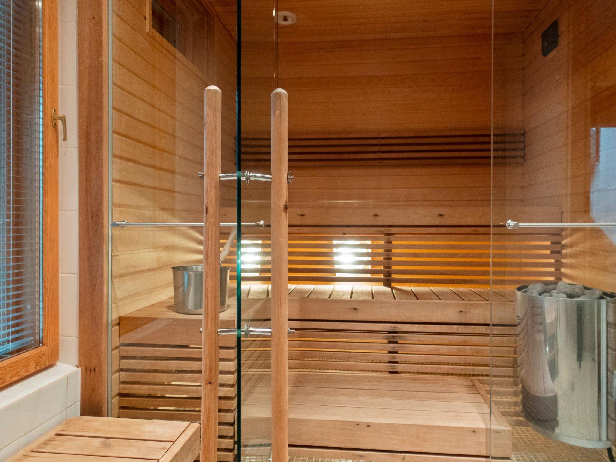 On the ground floor, bedroom with double bed, sauna, washroom, utility room and wardrobe. The apartment has two separate WCs, one on both floors.