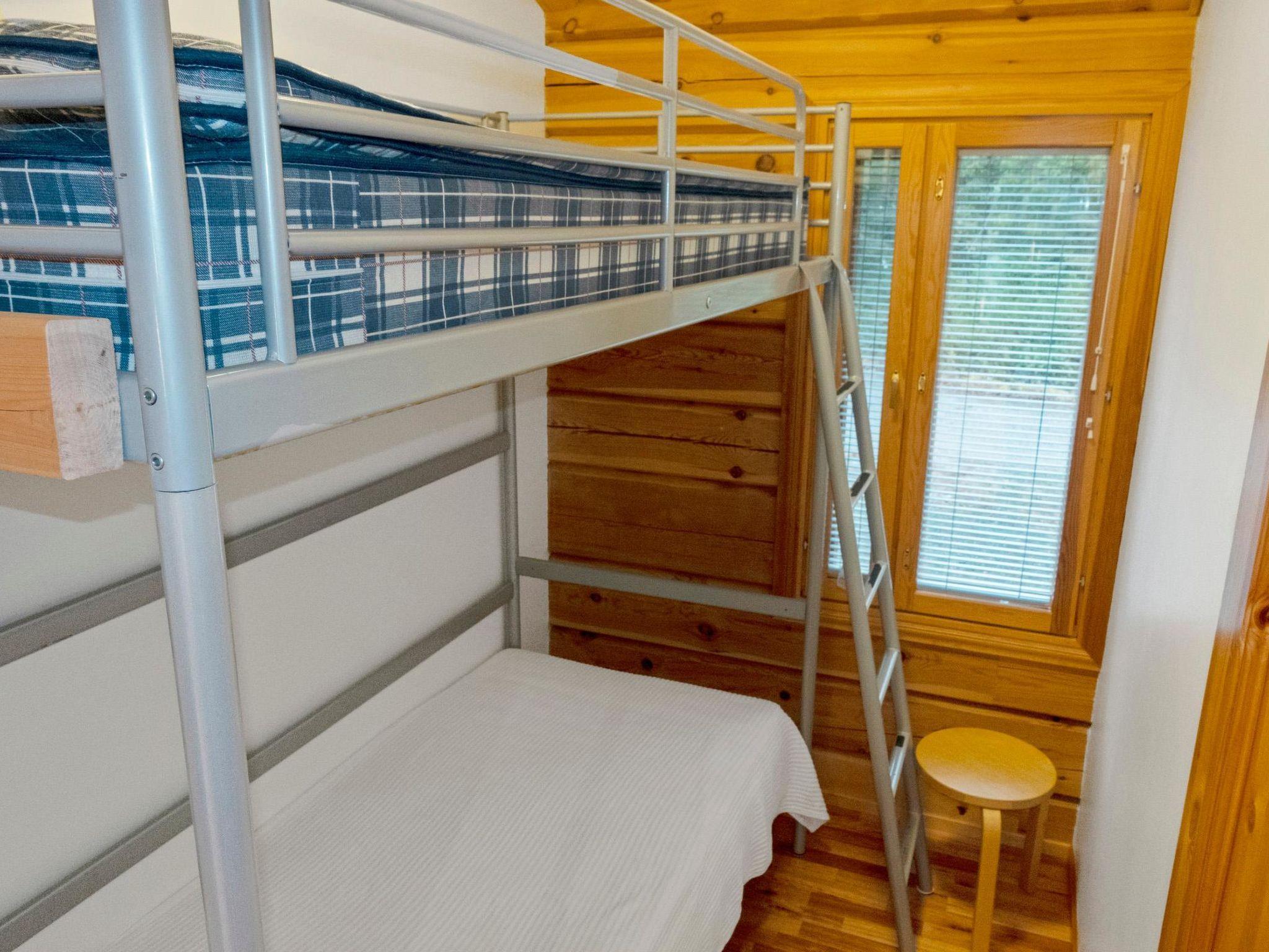 The semi-detached house is built in 2004. Facilities on two floors. On the upper floor (entrance floor), living room, kitchen, bedroom with double bed and another bedroom with bunk bed.