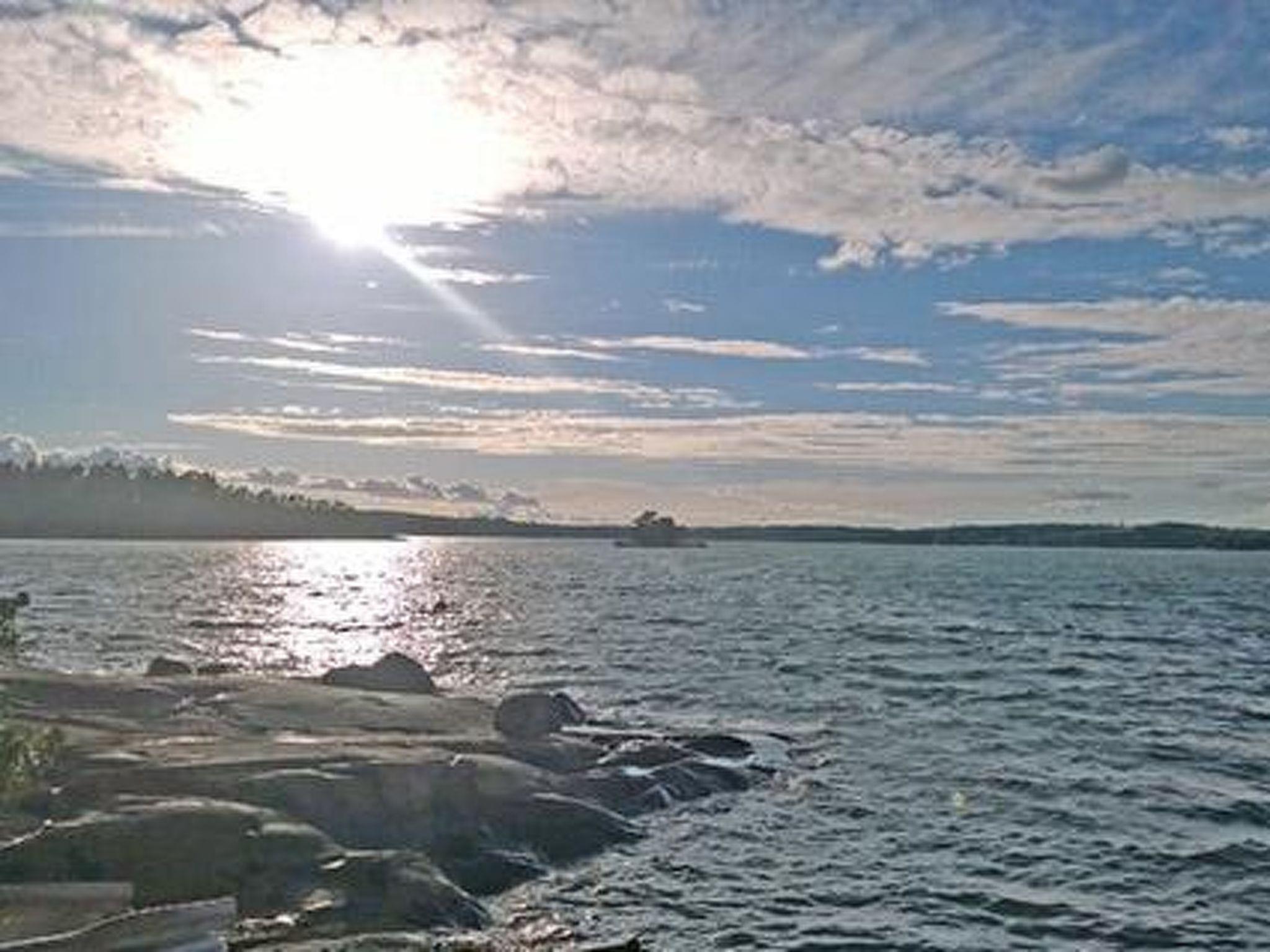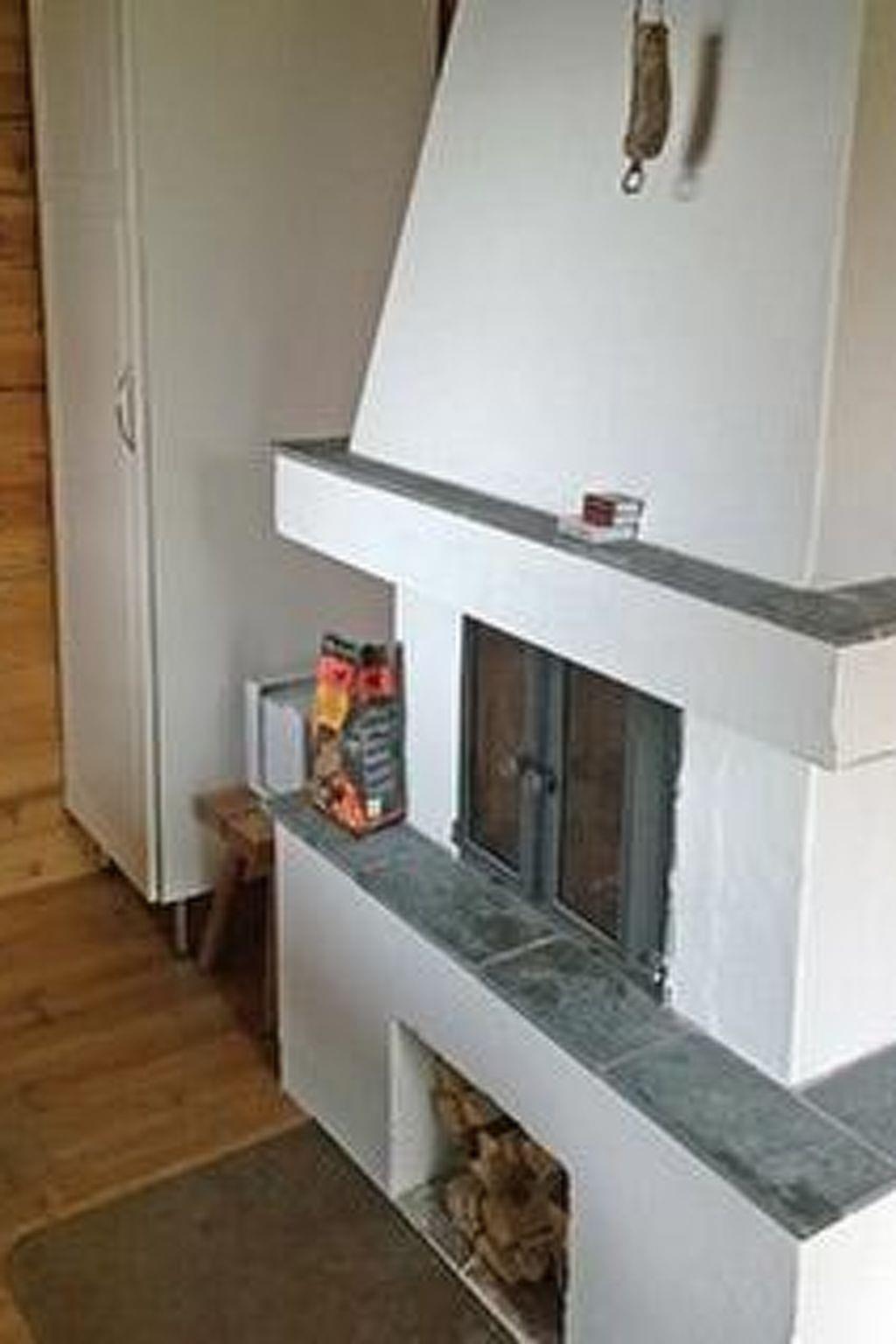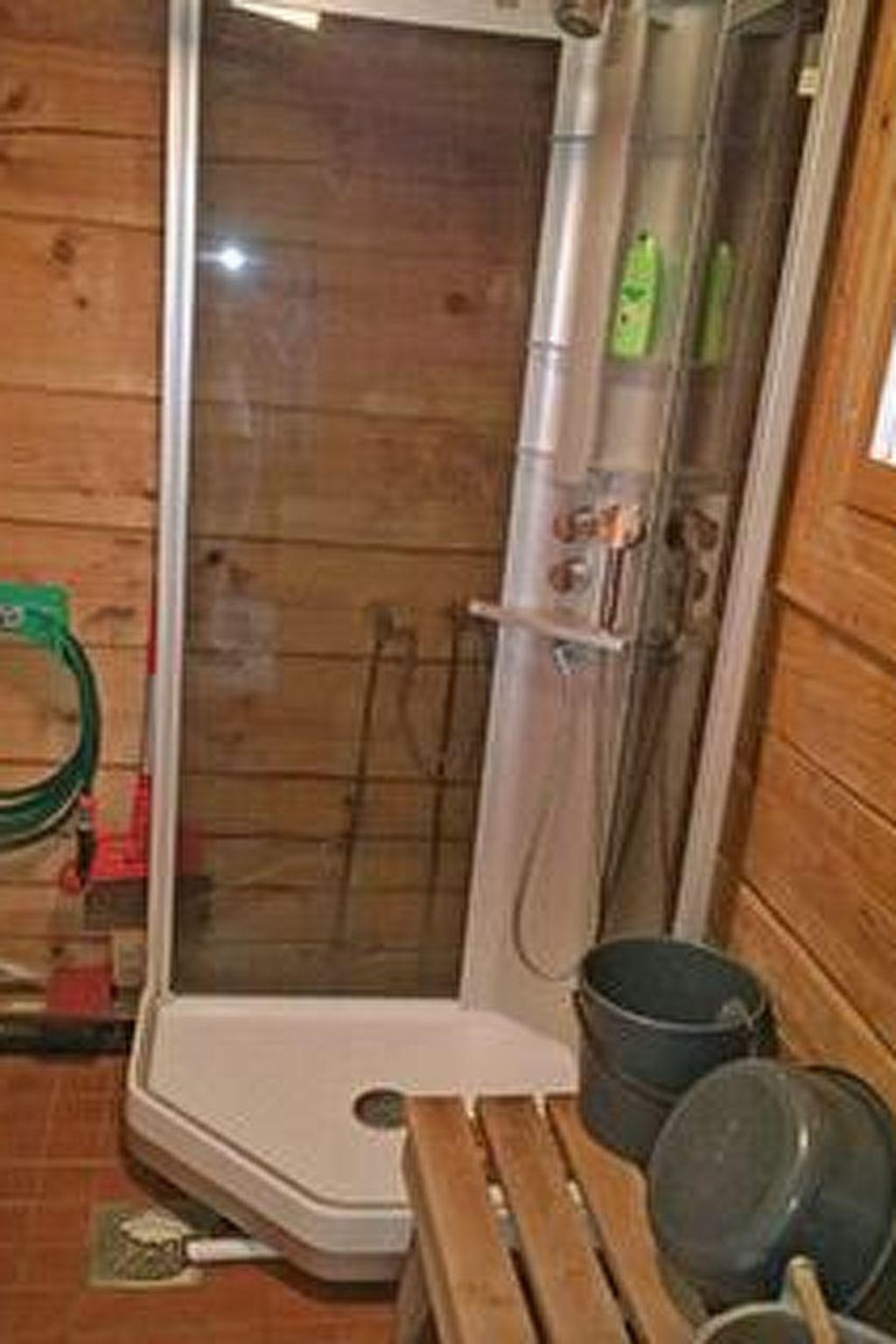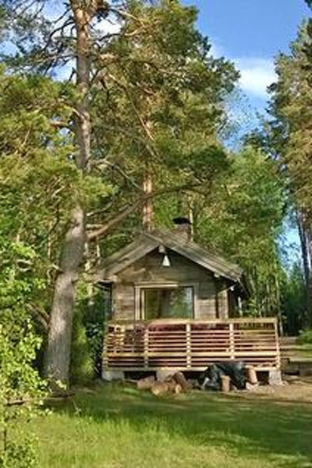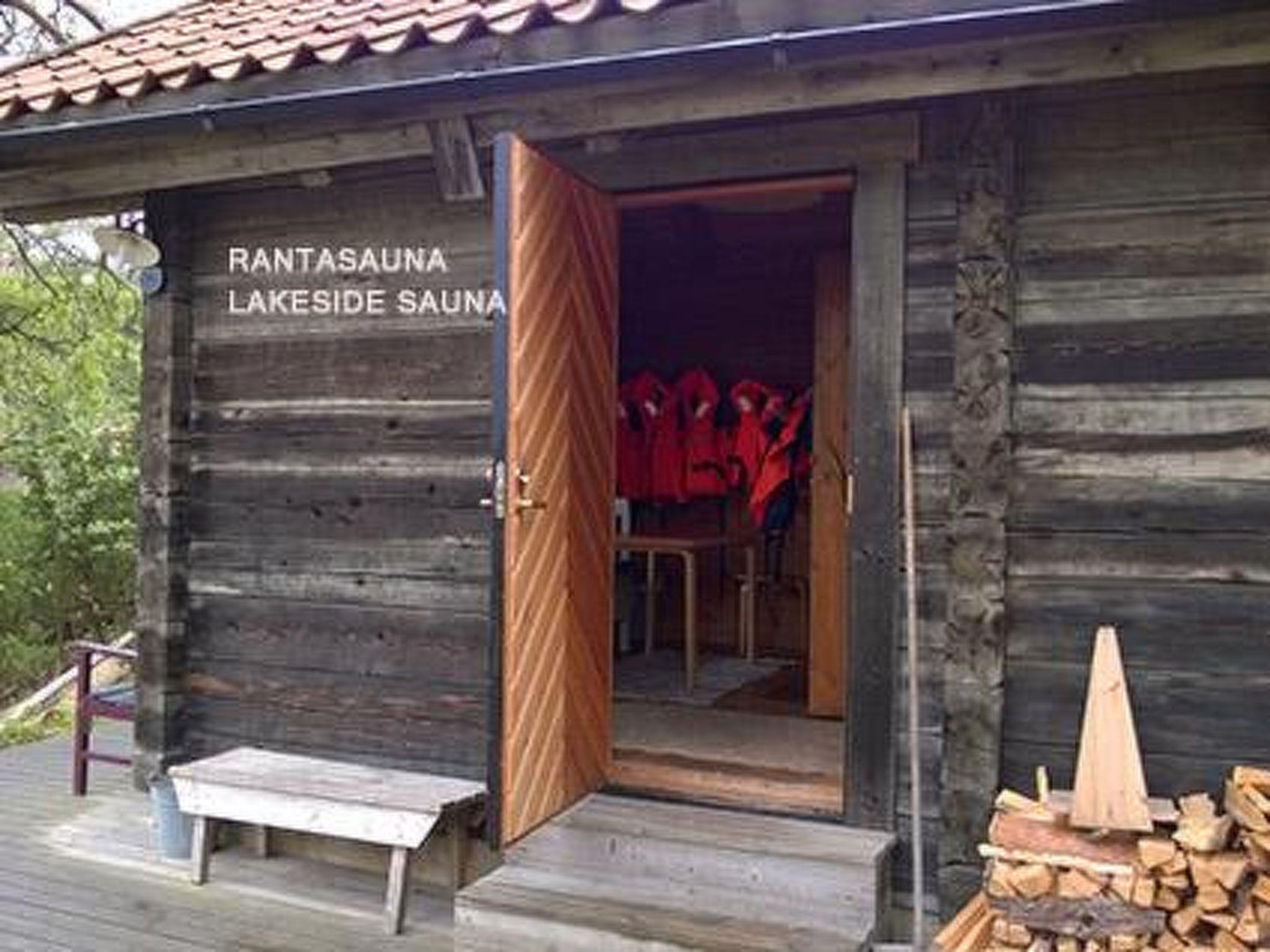 Separate seashore sauna with washroom and room with fireplace. Washing machine is in the sauna building.