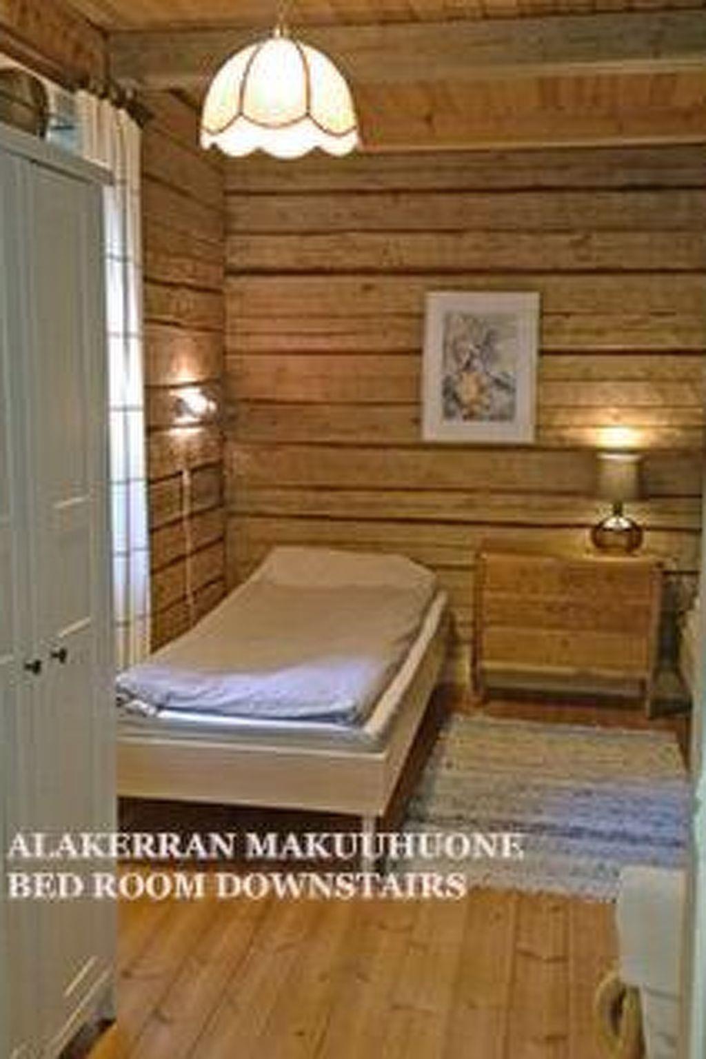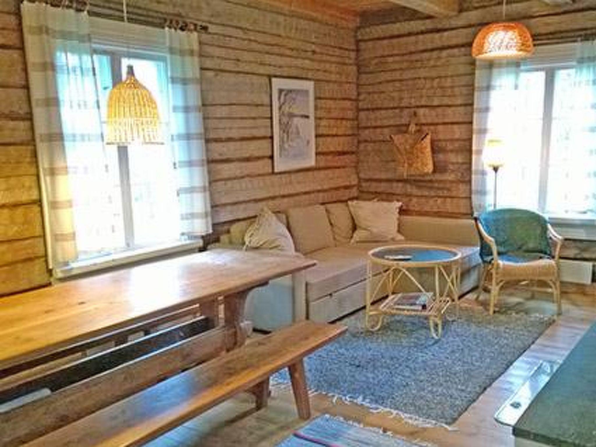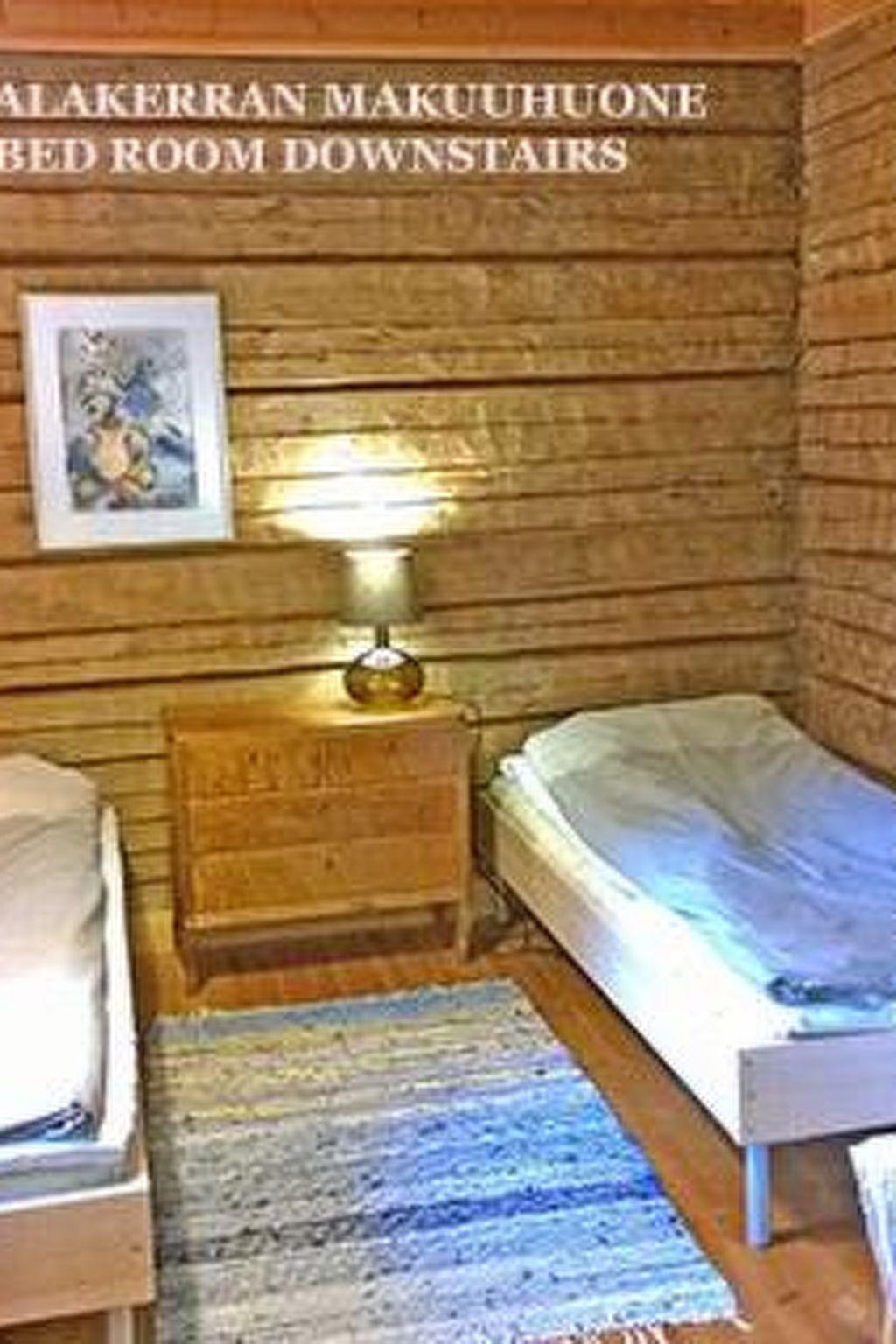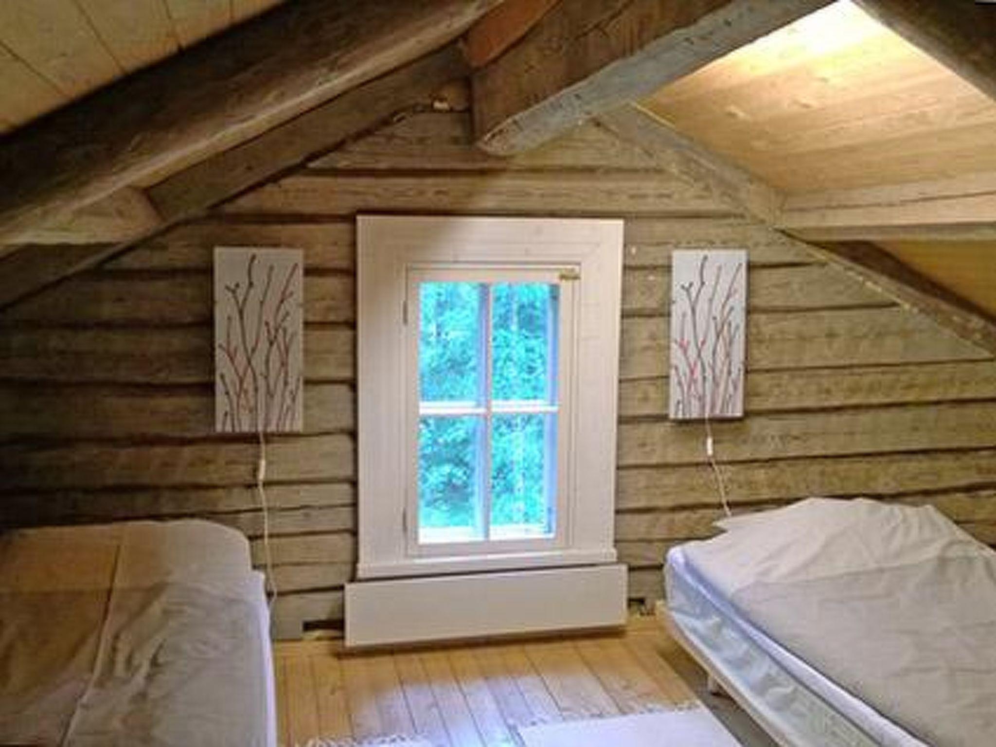 Log cottage 1986, living room/kitchen, bedroom 2 beds, upstairs 2 sleeping alcoves closed off by curtains, 3 beds in each (exceptionally in this property, alcoves are included in the number of bedrooms). Additionally 2 extra beds upstairs glazed and open porch.