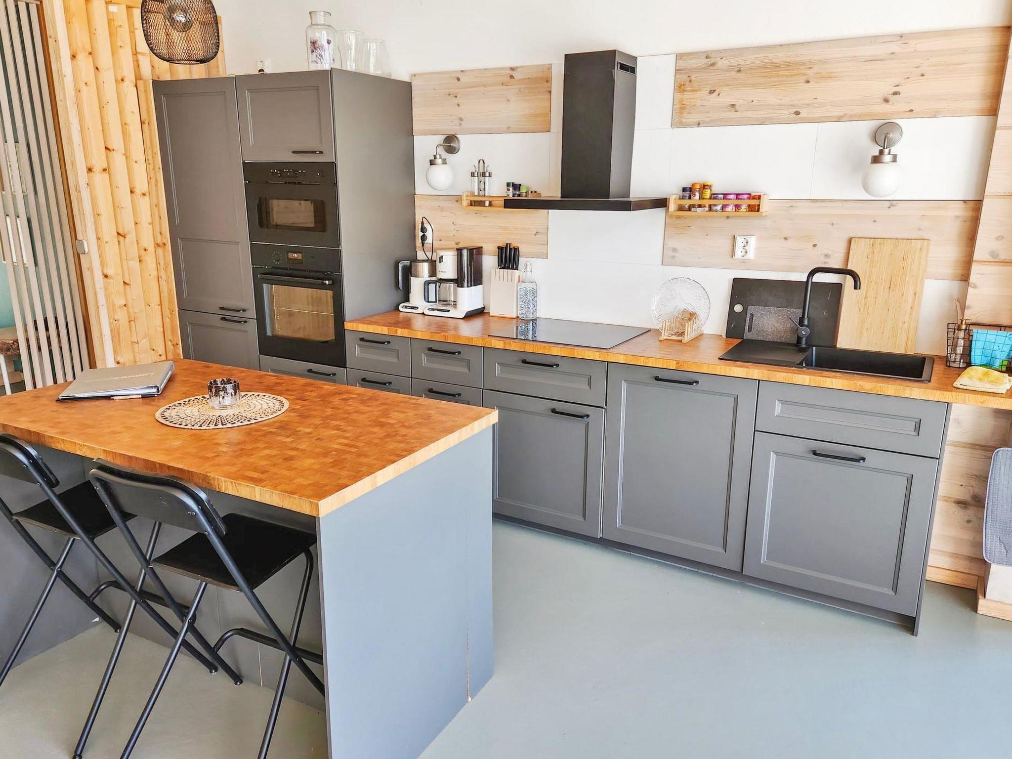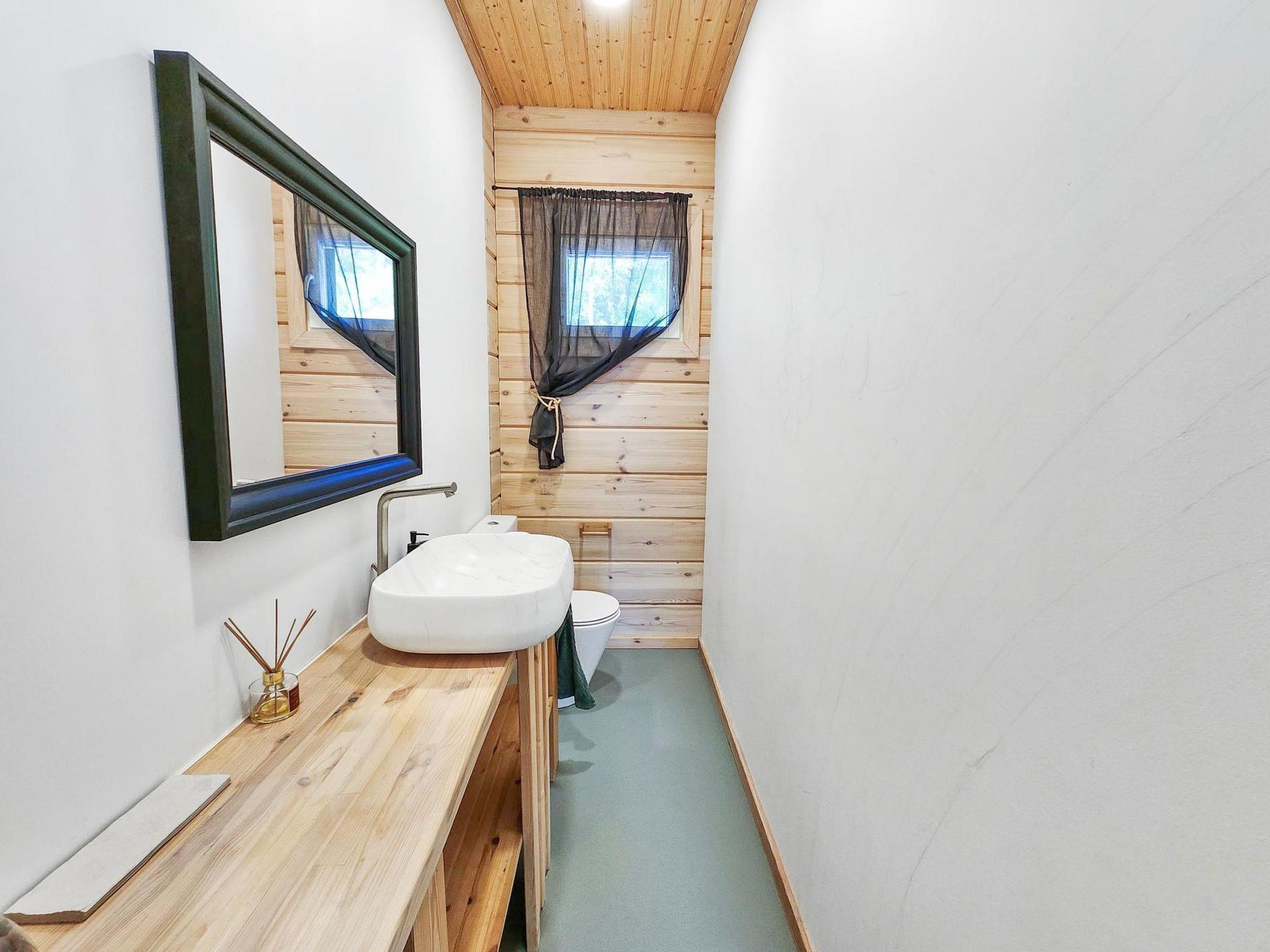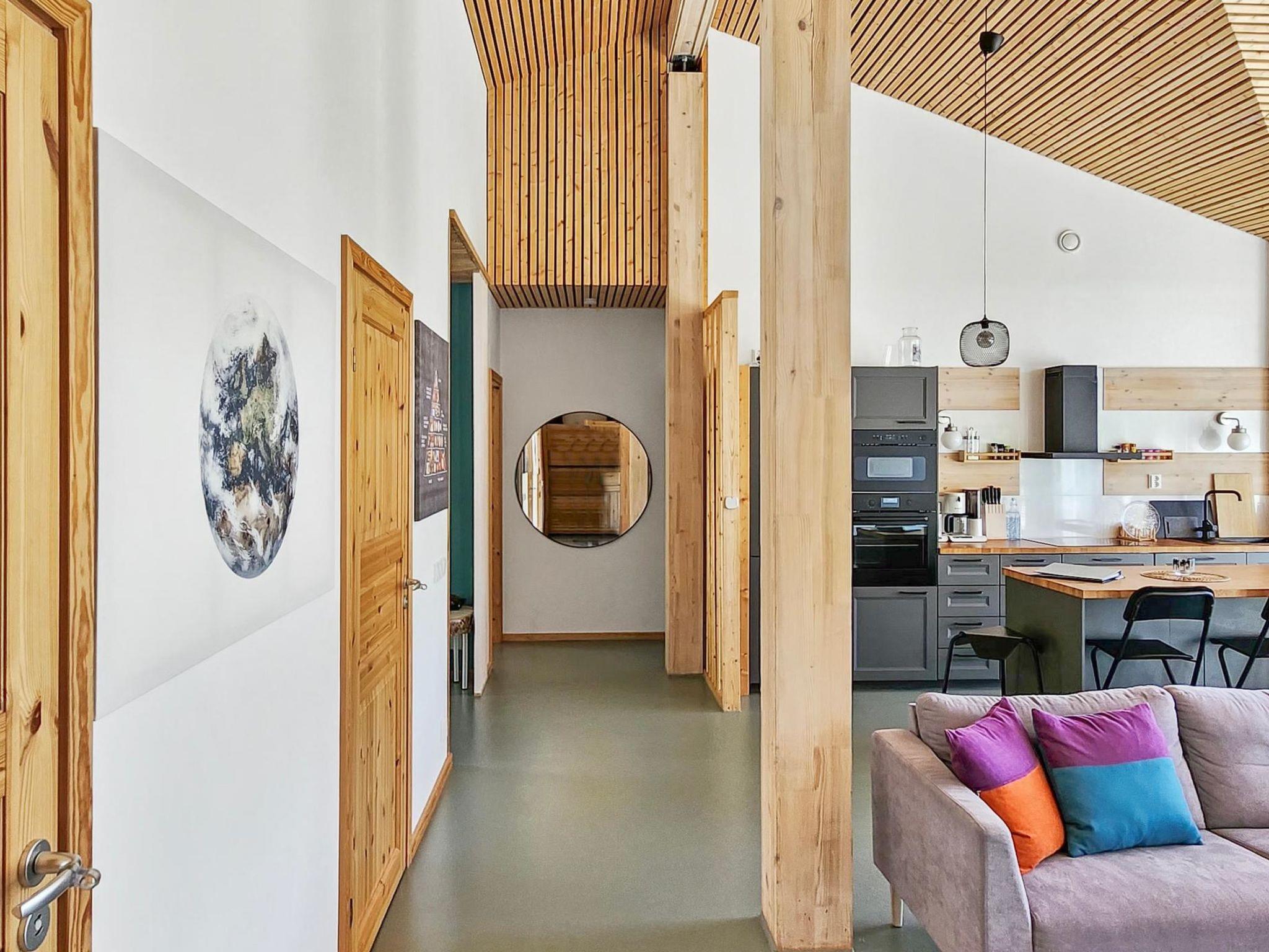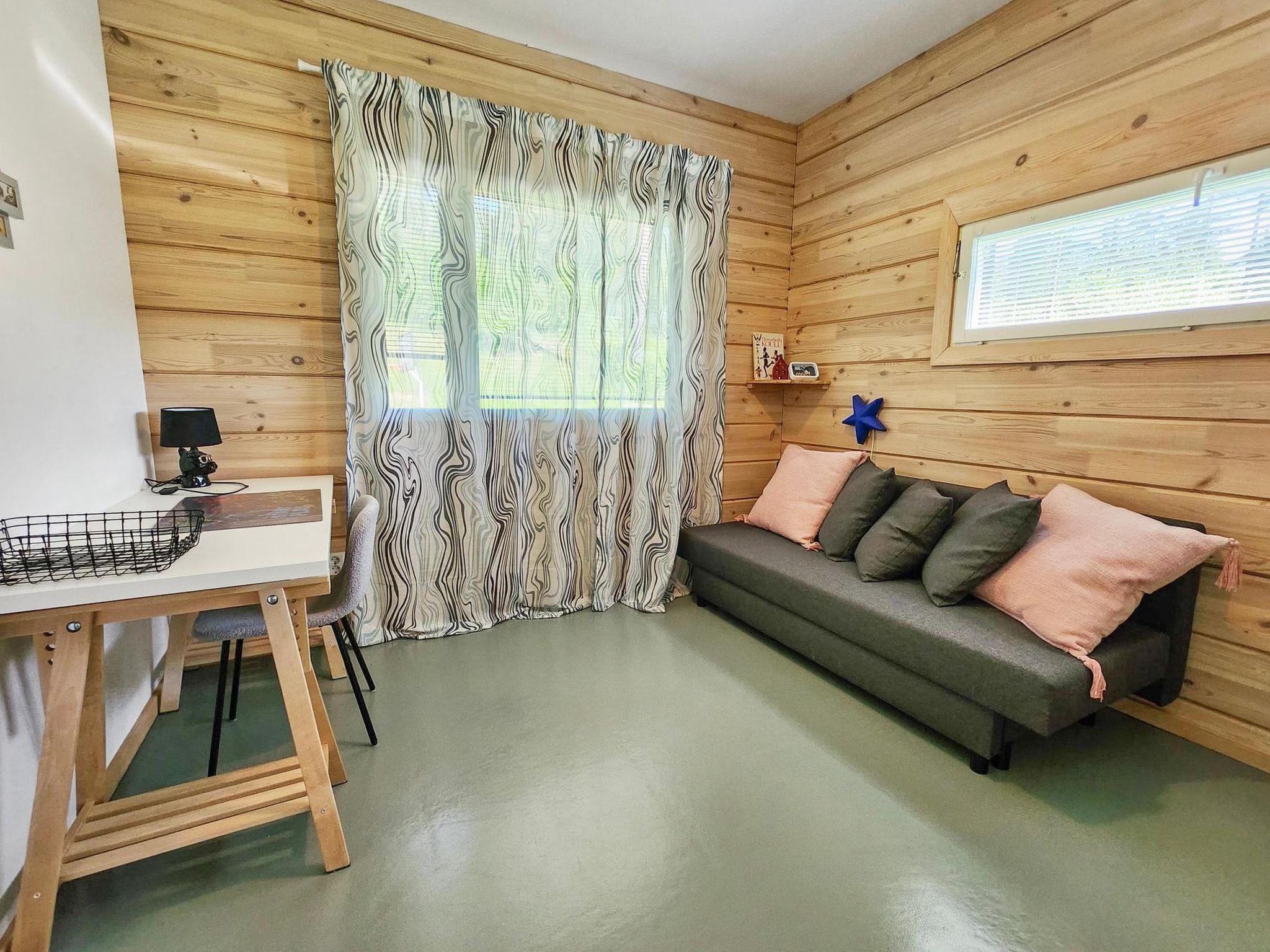 The heart of the cottage is a spacious and bright open kitchen / living area, where high ceilings and large windows bring nature into the interior. There are two bedrooms, one with a double bed (200 x 160 cm) and the other with two separate beds (200 x 80 cm), making the cottage ideal for couples, families or groups of friends.