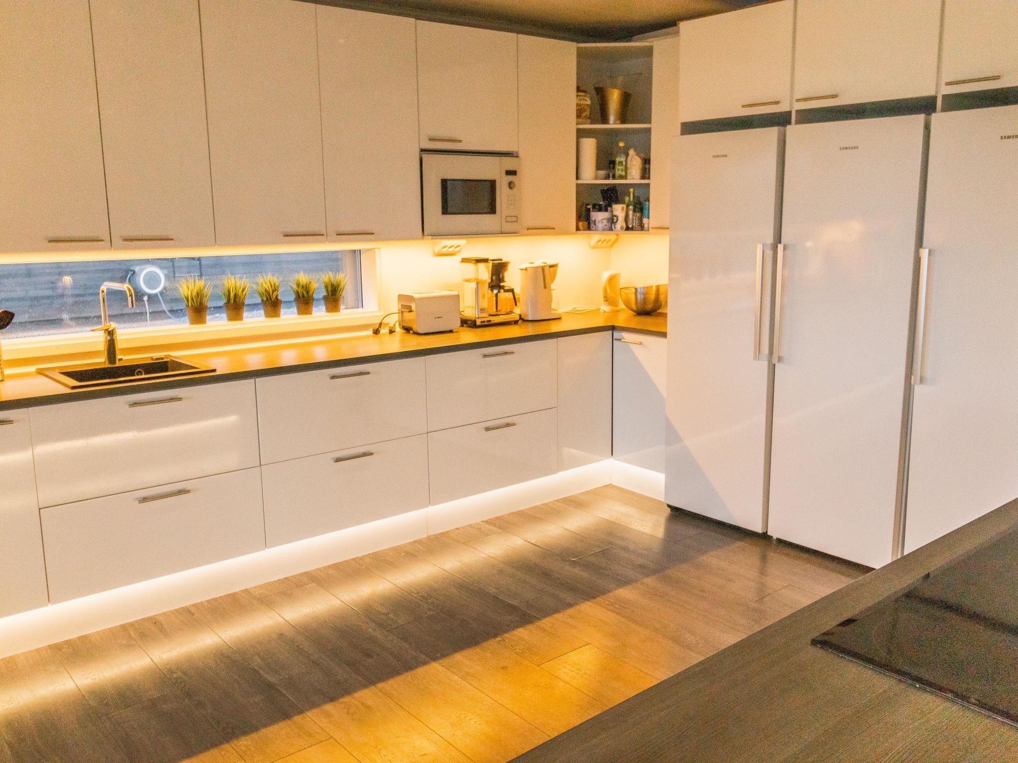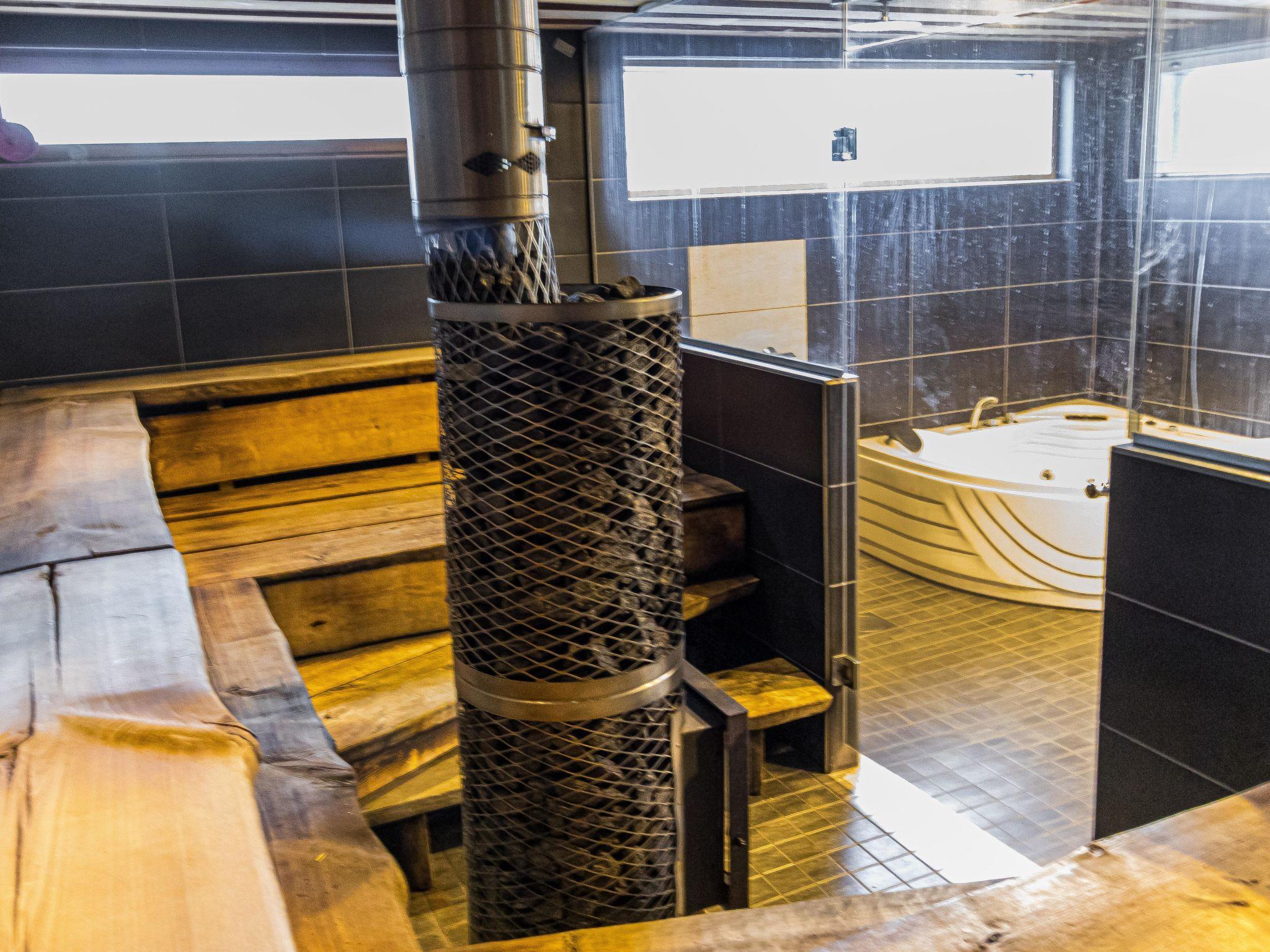 The villa is well-equipped, featuring 75? and 55? Samsung SMART TVs, 100 Mbps wireless internet, and a projector. The total terrace area is 300 m² and includes a large Limelight hydro massage bath outdoors, available for use at an additional charge. The spacious sauna facilities include an indoor hydro massage bath, which is included in the rental price. Additionally, a "Drop-in" cold plunge pool can be reserved directly from the owner for an additional fee of 200 EUR per booking period.