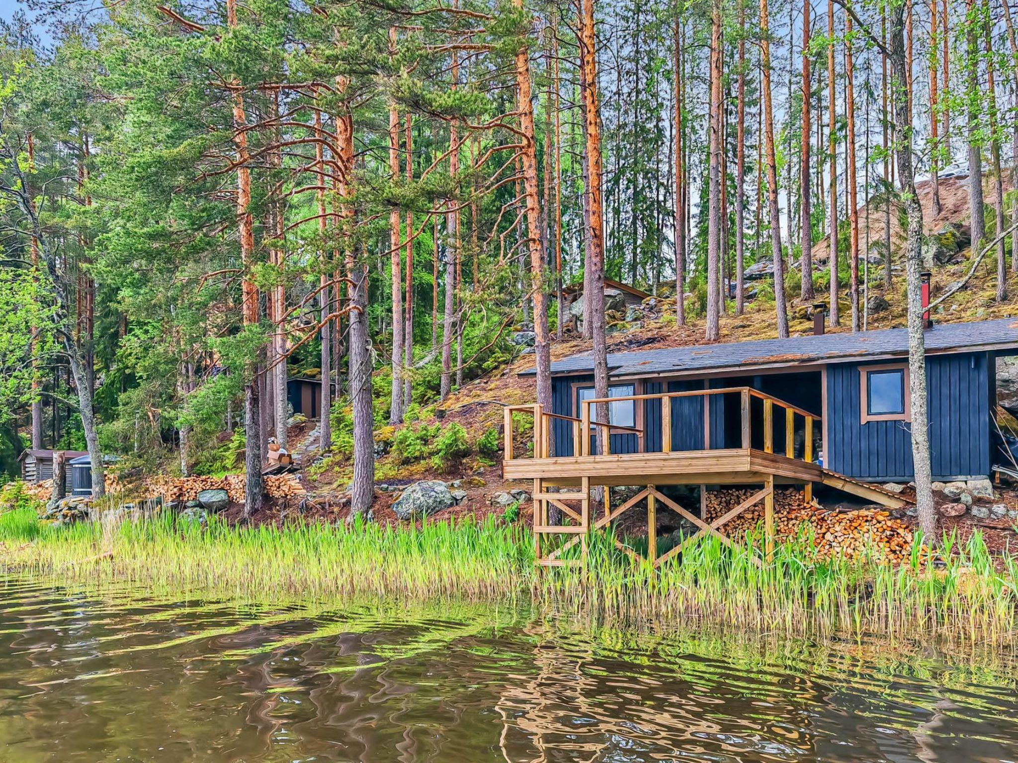 Atmospheric summer cabin and lean-to accommodate, right by the lake Houhajärvi. The distance to the lake is only about 3 m, sandy beach. The terrace (with furniture) is built over the lake. A wood-heated hot tub on the beach with a wonderful view of the lake. On the lean-to, it is atmospheric to sit by the campfire in the evening in the lake view,