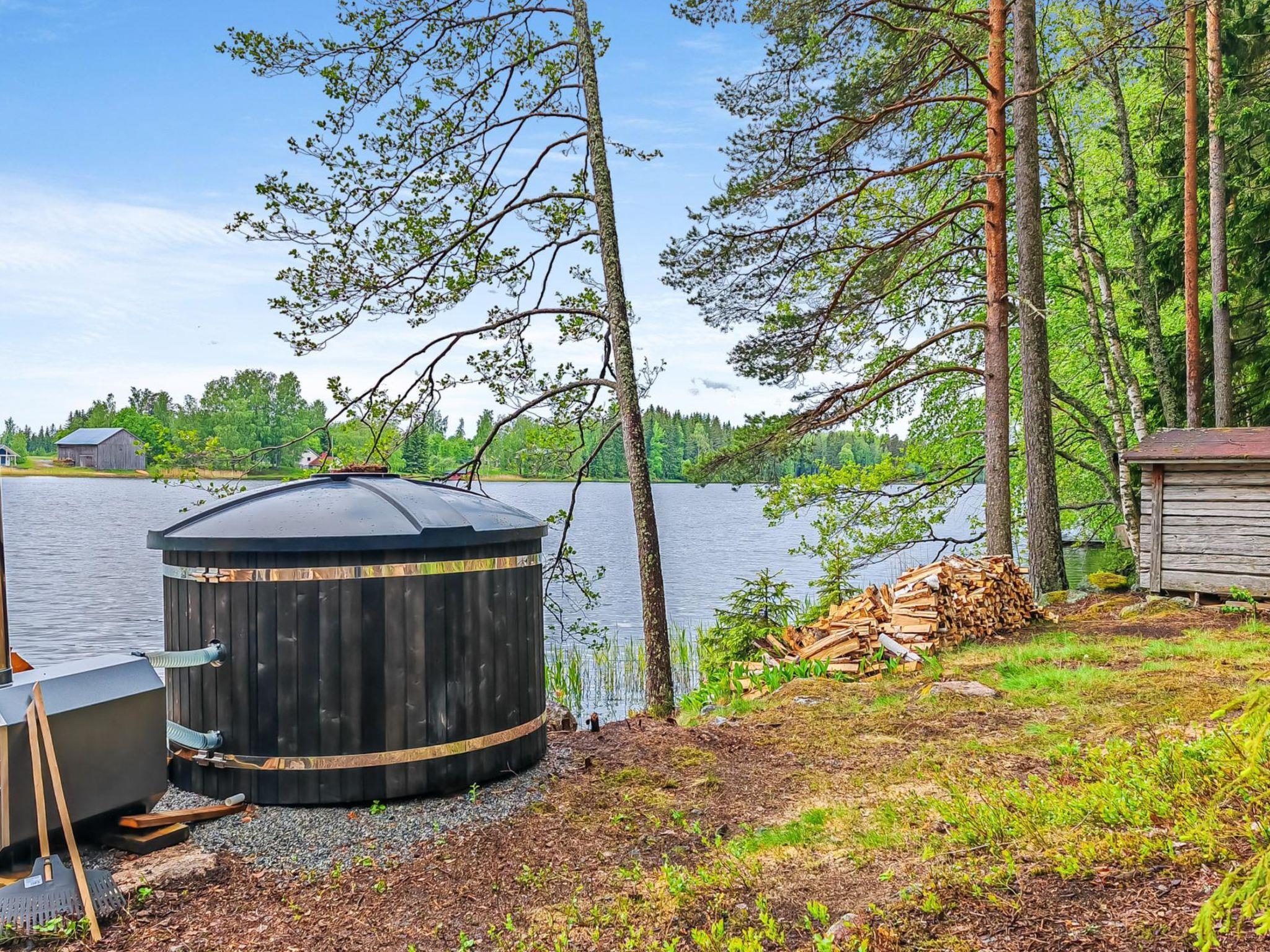 On the shore, is a wood-heated hot tub, where water can be taken from the lake with an electric pump. The tenant cleans the hot tub at the end of the holiday. Final cleaning can be ordered as an additional service, in which cleaning the floor is not included.