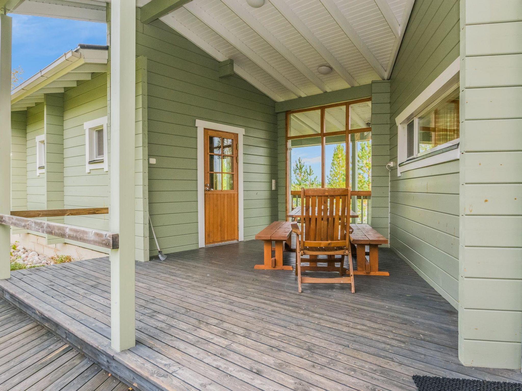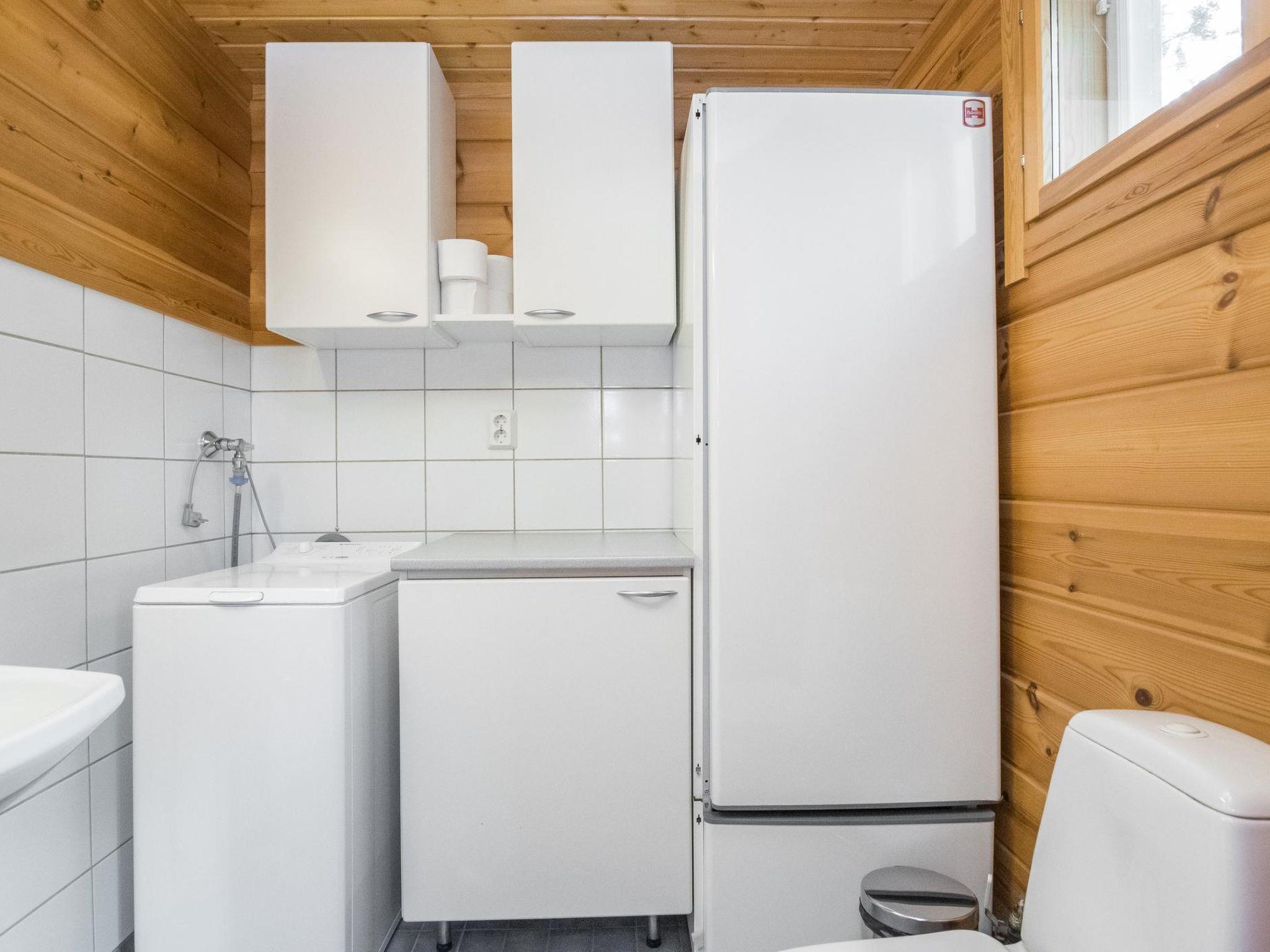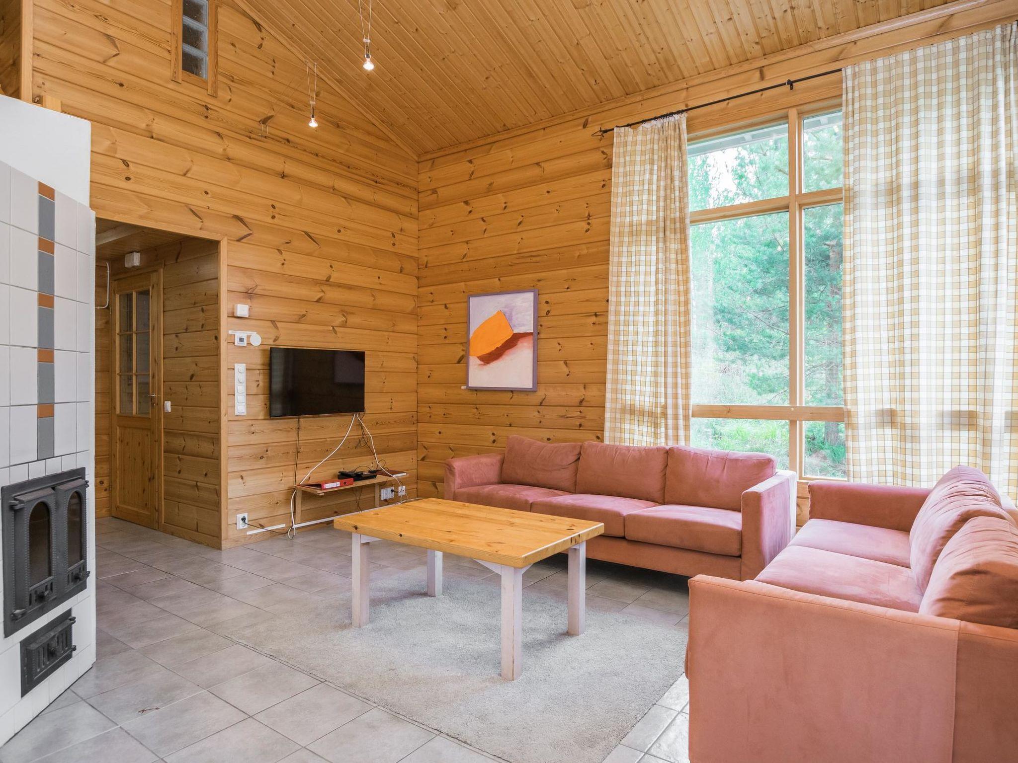 Log chalet 2003, living room/kitchen. Downstairs 2 bedrooms with 2 beds in each, WC. Upstairs 2 bedrooms with 2 beds in each, WC. Separate sauna area with the dressing room, washroom (2 showers), sauna (electric stove), WC. Entrance to sauna department through porch.