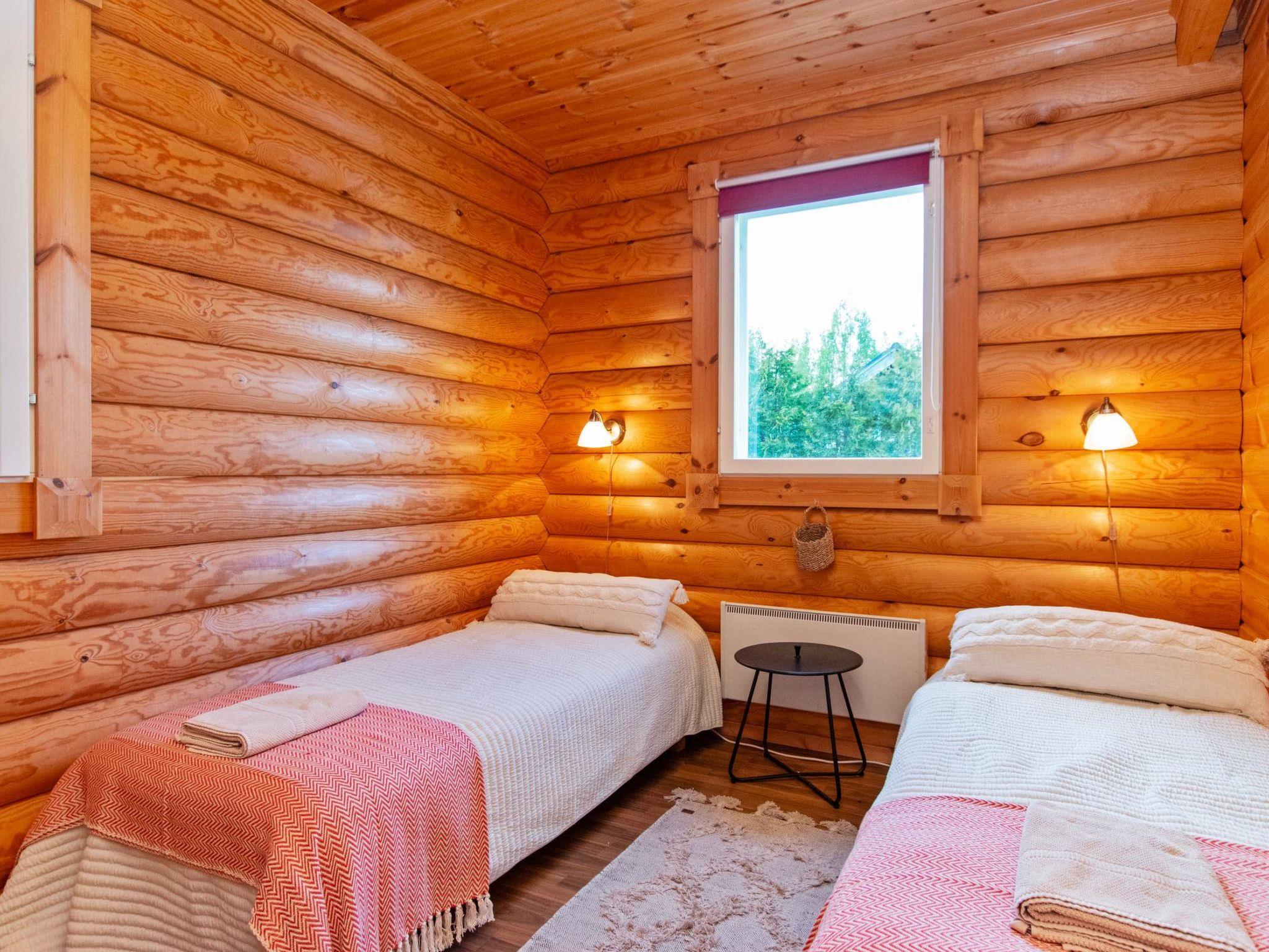 Log villa built in 2011. The ground floor features a living room, kitchen, two bedrooms—one with a double bed and the other with two single beds. Bathroom with WC and shower, electric sauna. Covered porch.