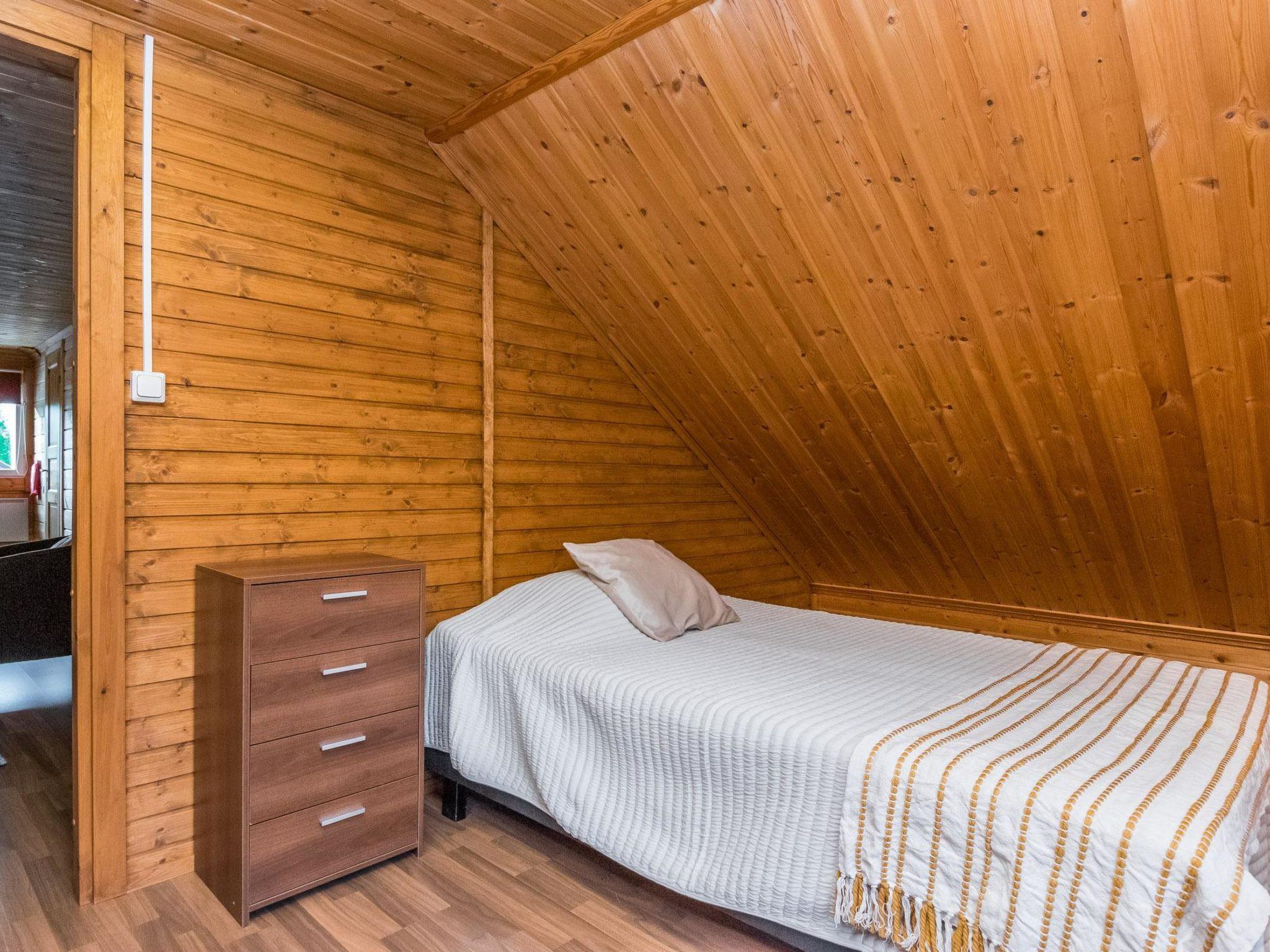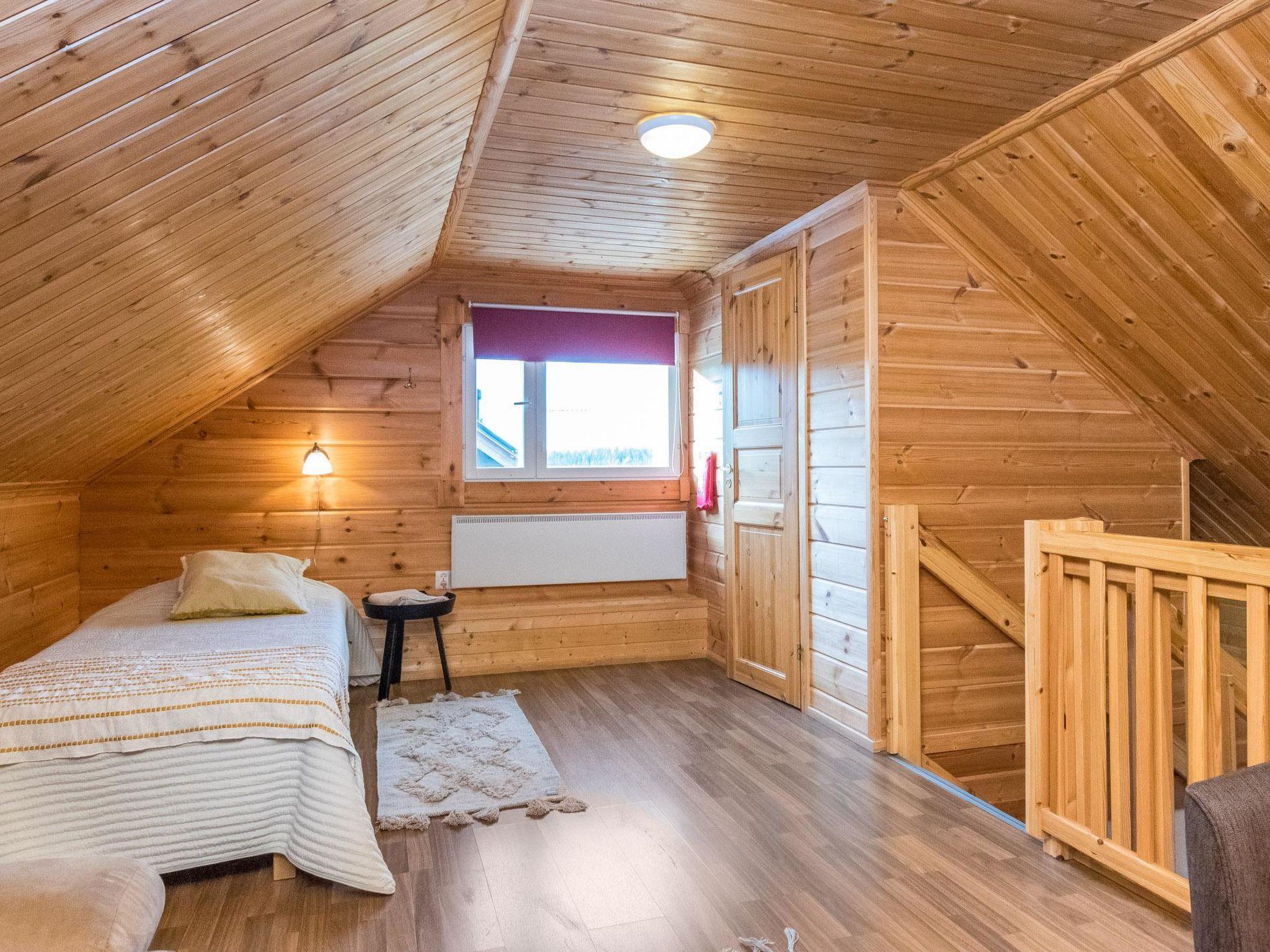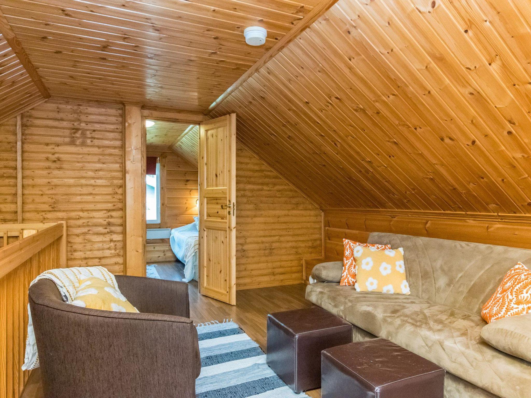 Log villa built in 2011. The ground floor features a living room, kitchen, two bedrooms—one with a double bed and the other with two single beds. Bathroom with WC and shower, electric sauna. Covered porch.