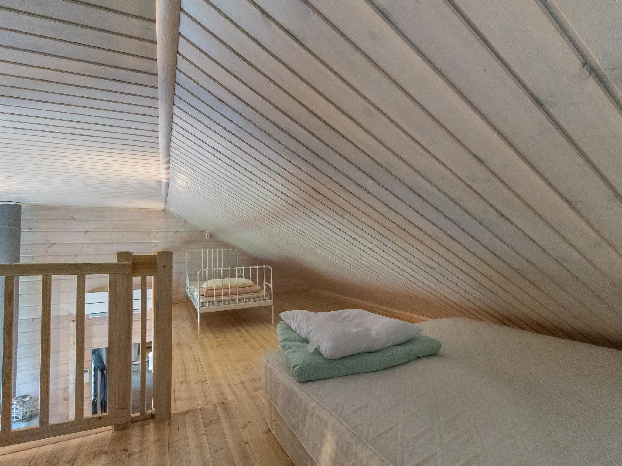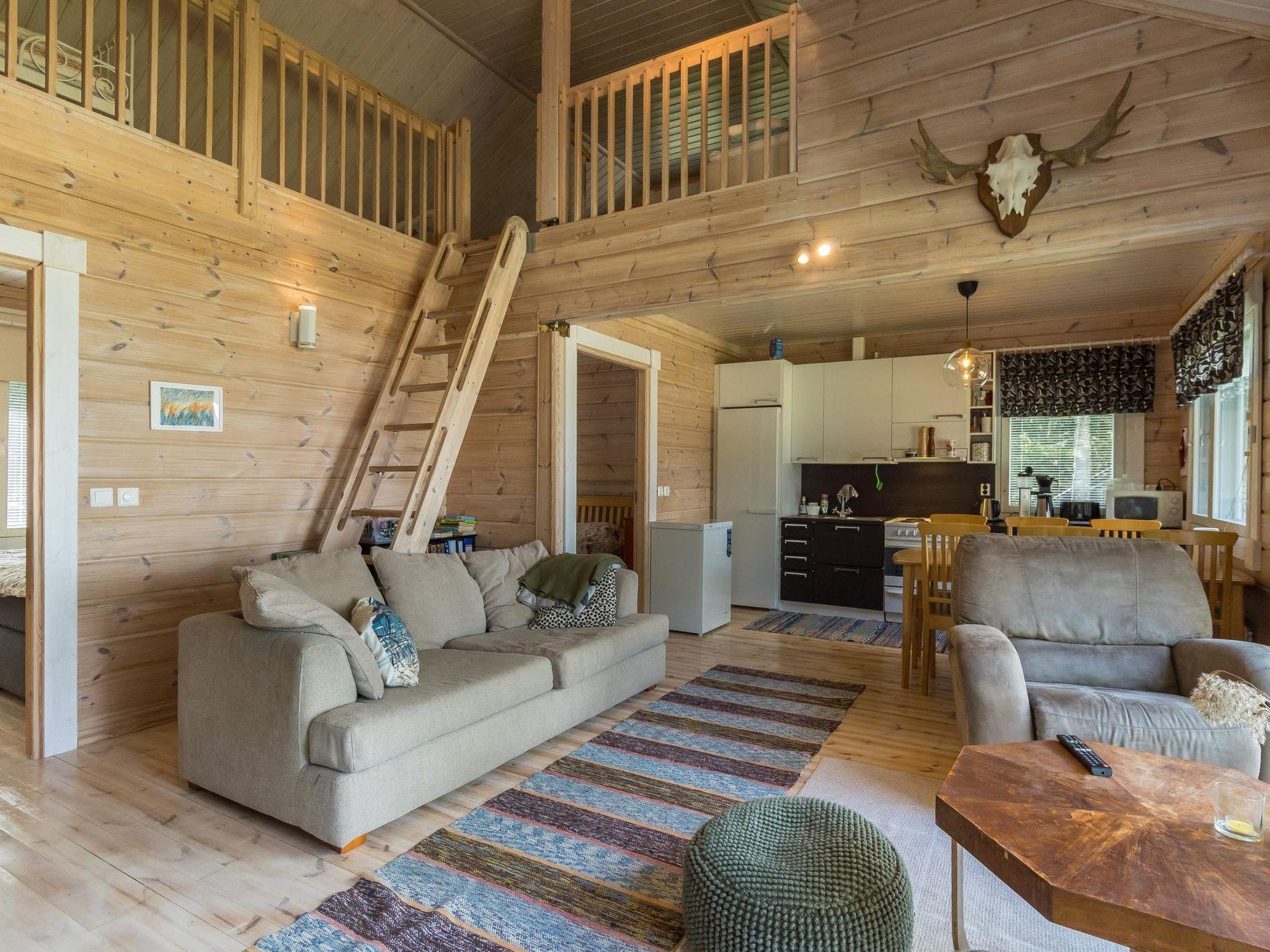 The 83 square metre cottage, built in 2014, has everything you need for a successful cottage holiday. Downstairs there is a spacious living room with a fireplace and a spacious kitchen-living room. The cottage's two bedrooms are located downstairs. Both have a 160 cm wide double bed. The bathroom has a toilet and a sauna (with an electric heater), which offers an easy and warm sauna session at the end of the day. The partly low loft upstairs offers additional sleeping space. The loft has two 80 cm wide beds in its own alcove, an additional 160 cm wide mattress + 140 cm wide pull-out sofa bed and another 80 cm wide bed in the open space. The loft is an excellent option for children and young people or a larger group.