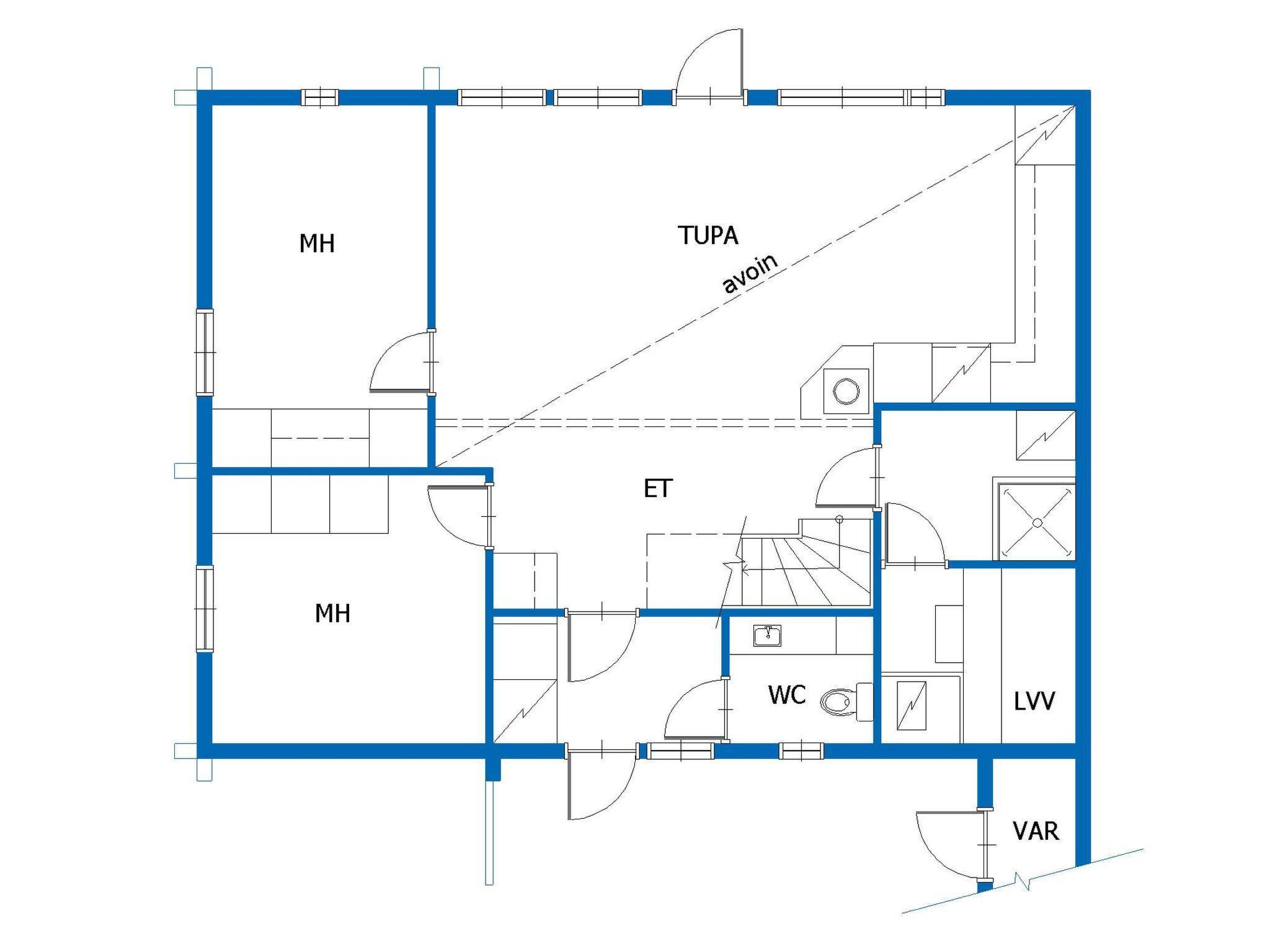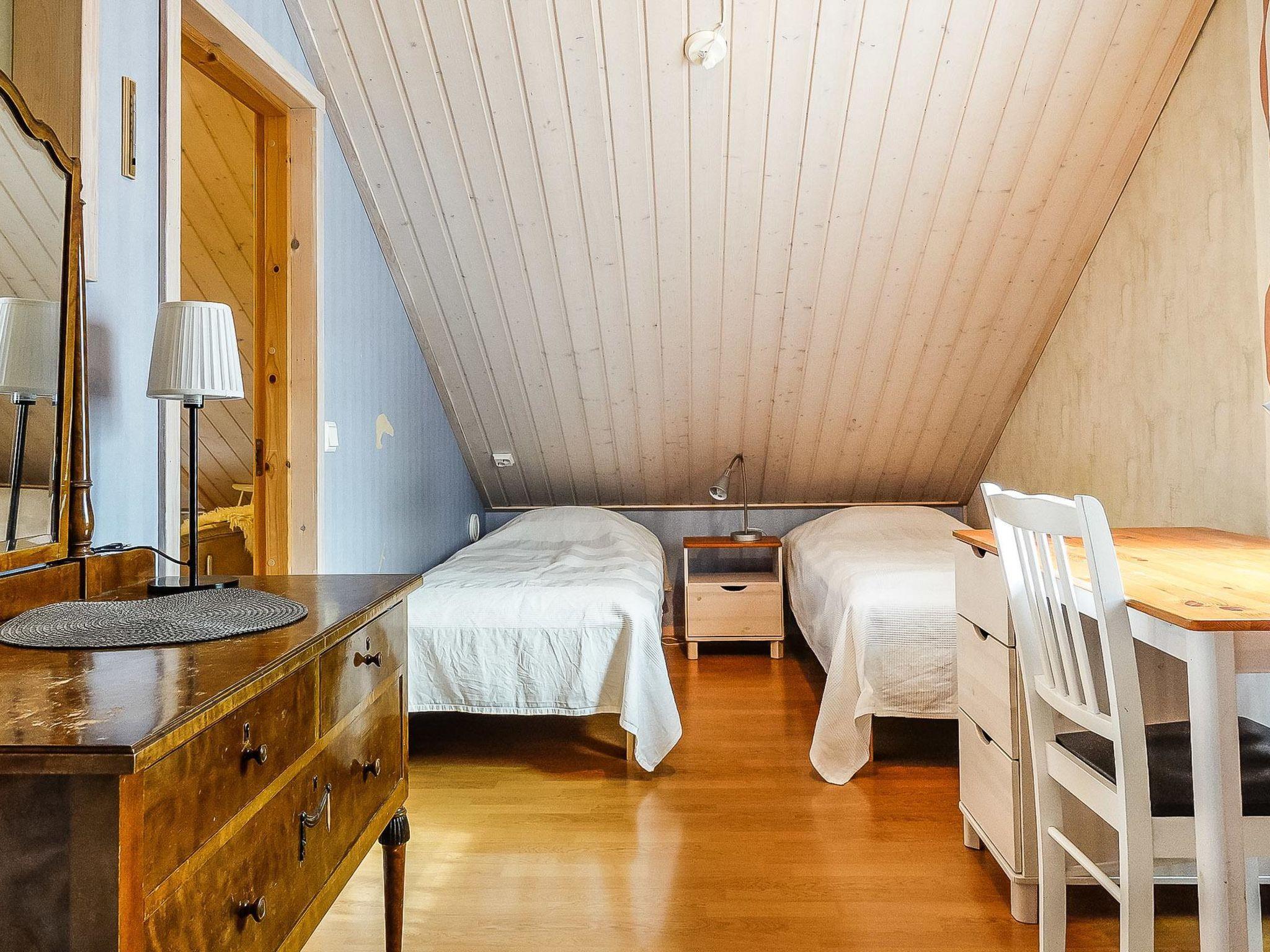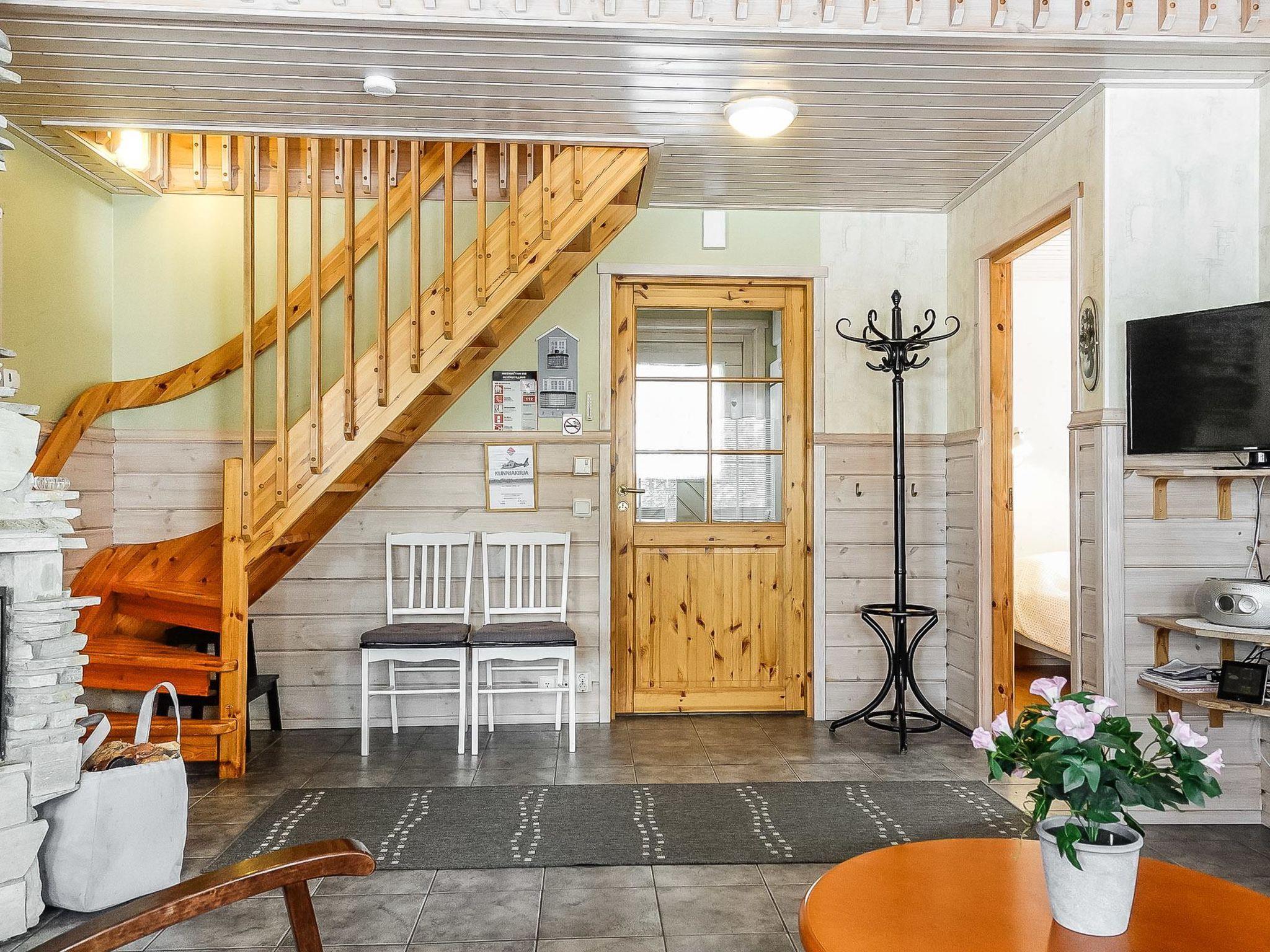 118 km north of Rovaniemi, in Orresokka area of Luosto Tourism Resort. One half of log (heat-hardened log type) semi-detached unit 2006, living room/kitchen, bedroom 2 beds, bedroom 2 beds, sleeping loft, which has a bedroom with 4 beds, sauna, washroom, open porch, WC also upstairs. Equipment also includes 2 TV sets. Car port. Use of ski care room and grill tepee (shared with 2 other holiday homes) is included in rent.