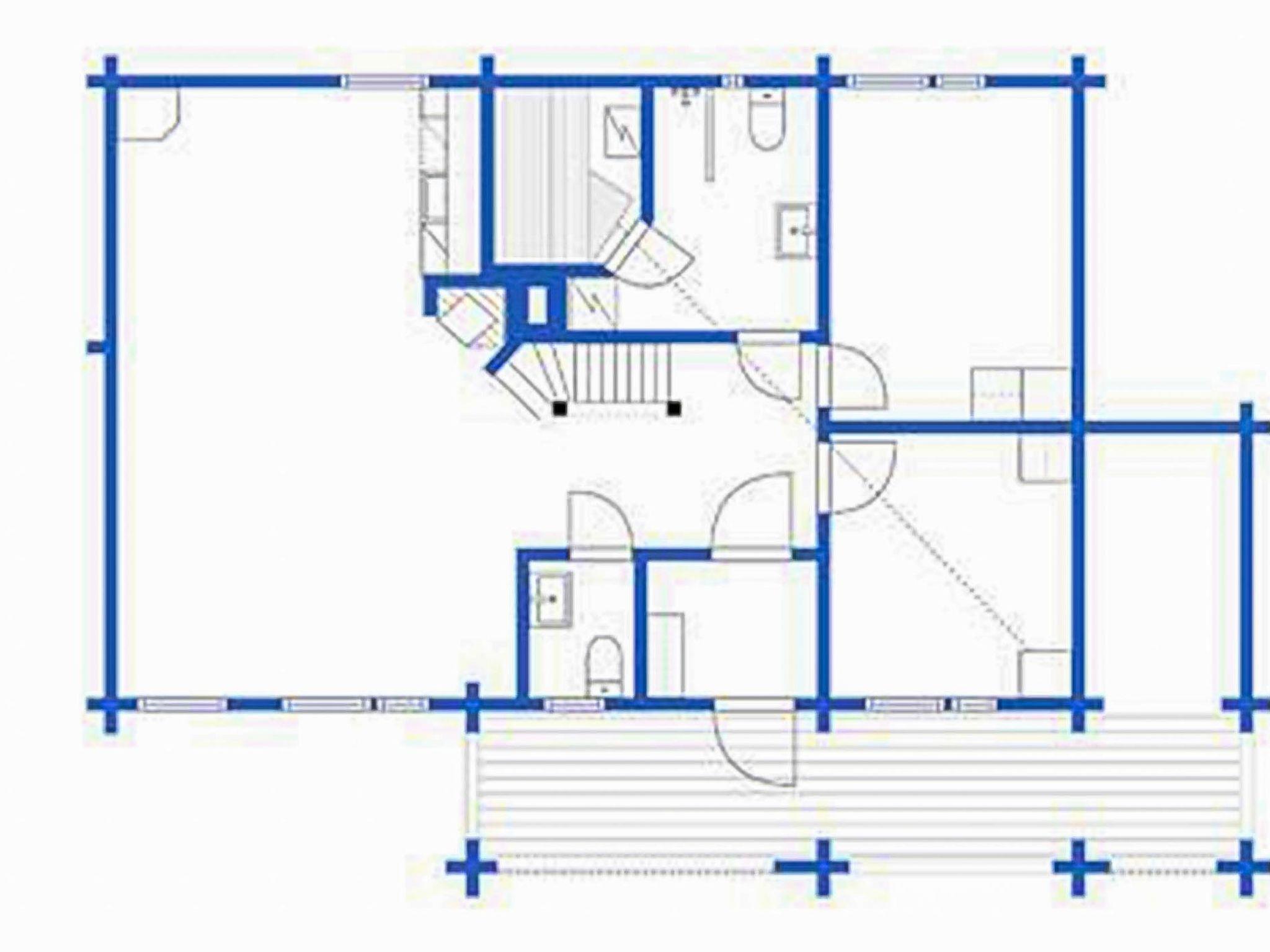 Open kitchen, 2 bedrooms each with 2 beds (second bedroom beds can also make my double bed), sauna (electric stove), bathroom/wc, separate wc, loft (floor area of 30 m², steep staircase) 2 beds and 2 mattresses. The apartment has also a gas grill (outdoor use). Air-source heat pump.