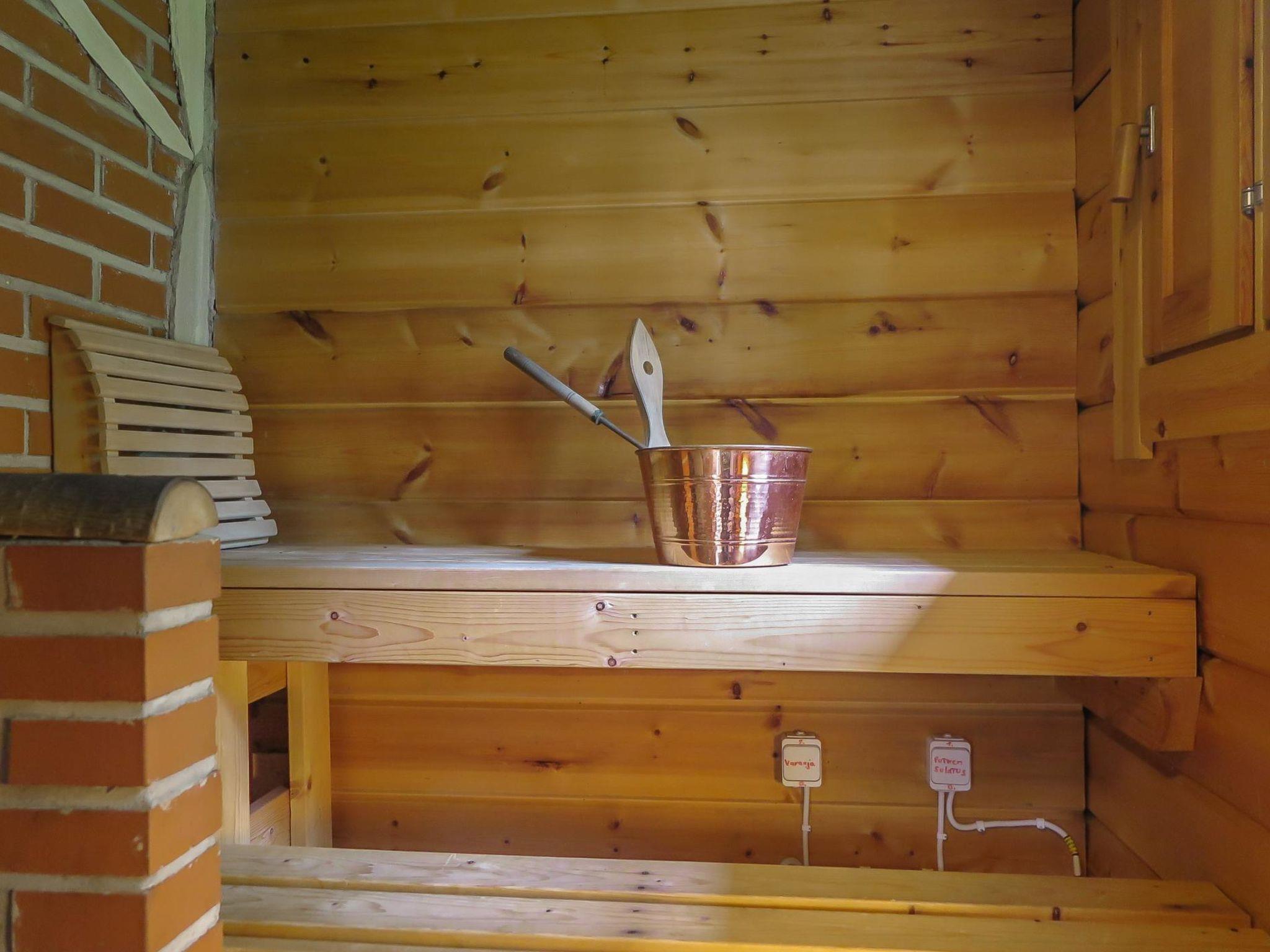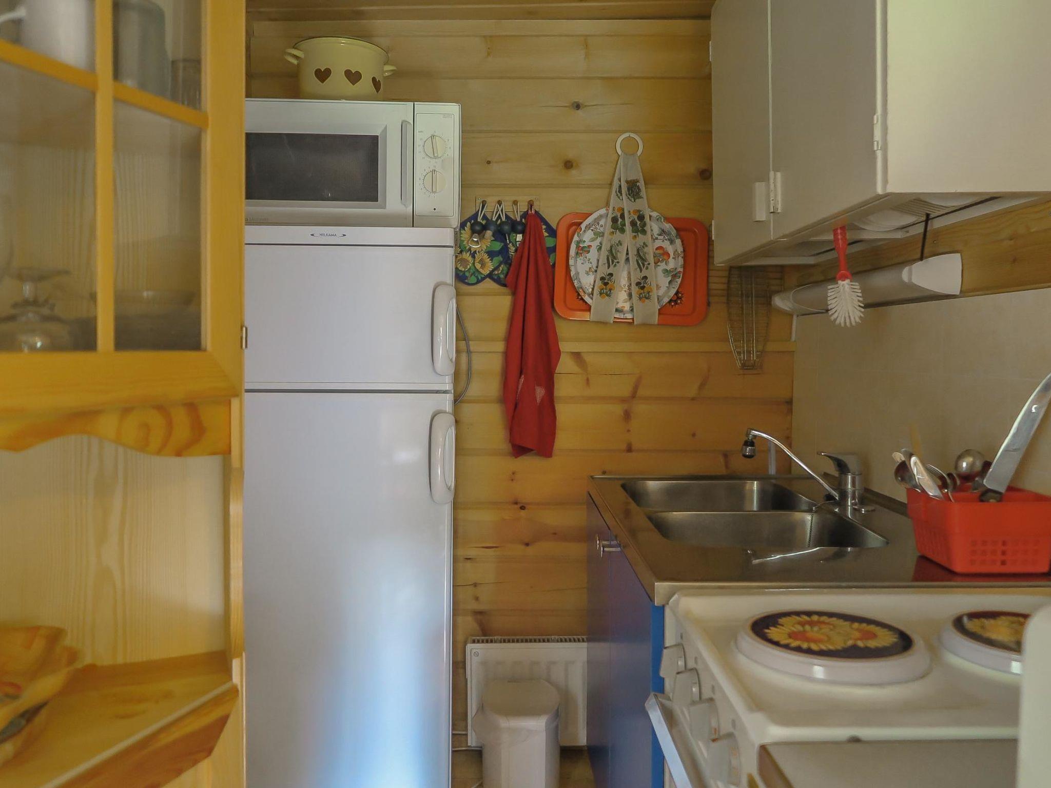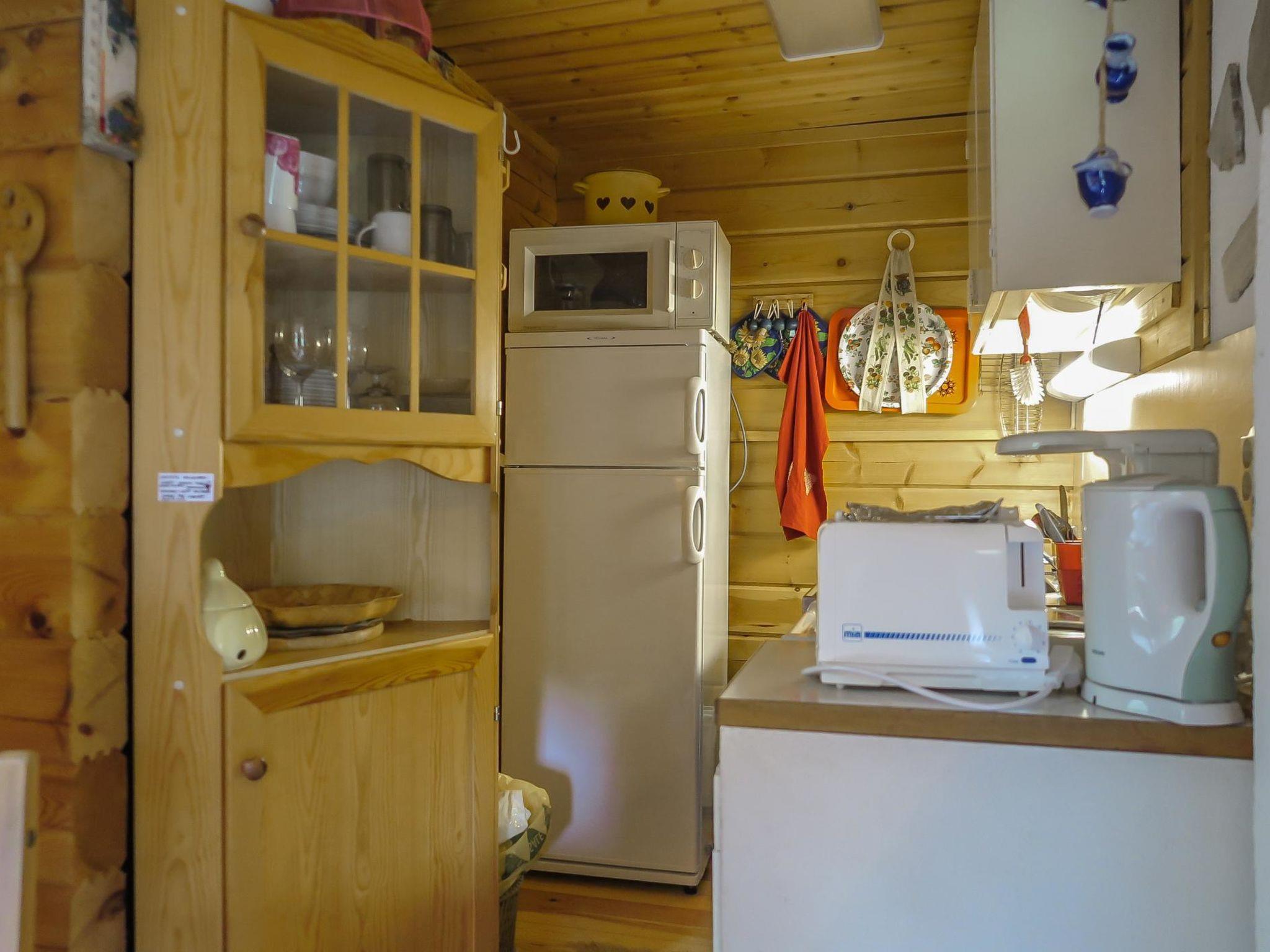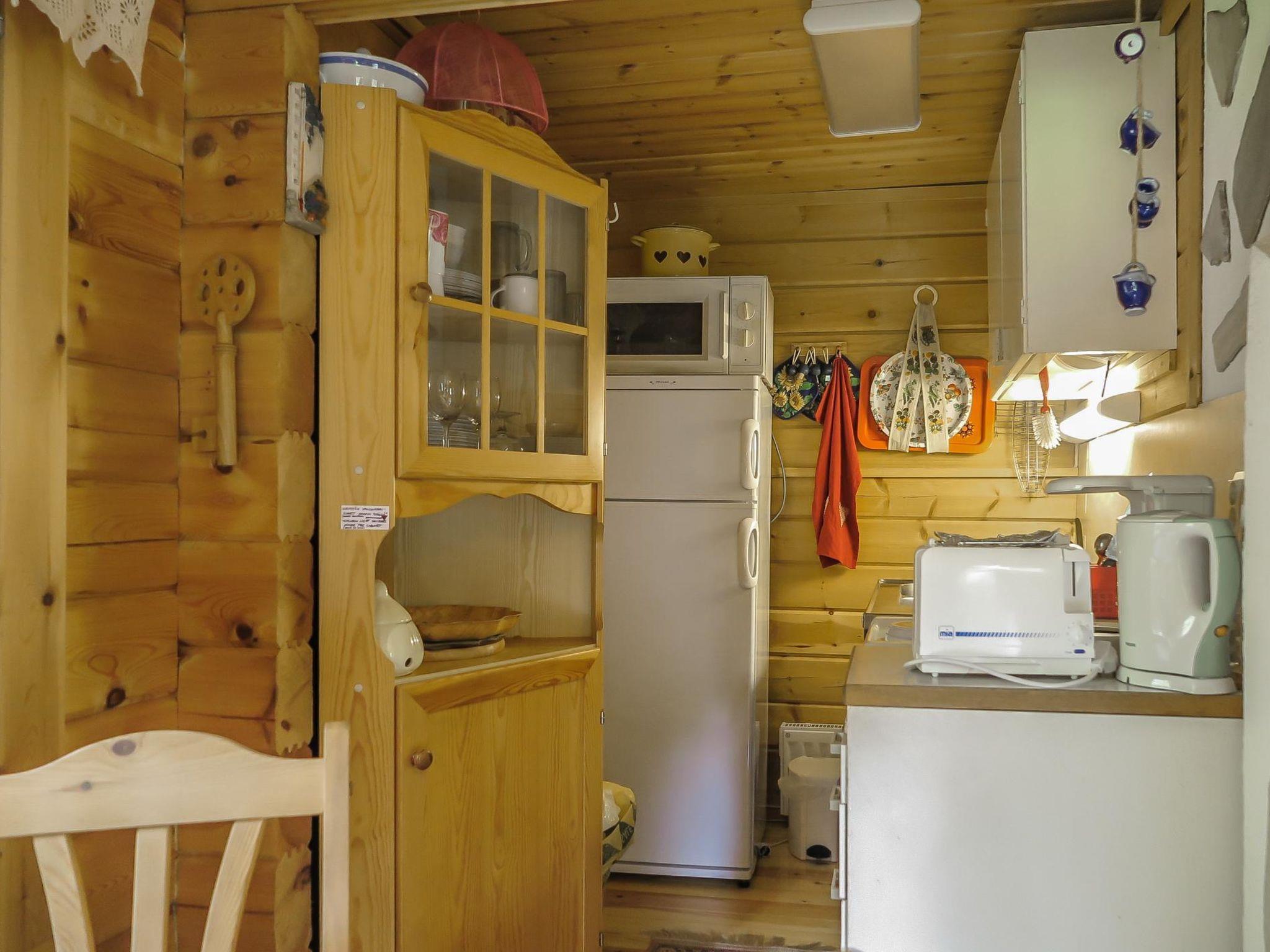 Log house, built in 1997, living room foldable sofa bed for two, kitchenette, sauna (woodstove), washroom/toilet and covered porch.