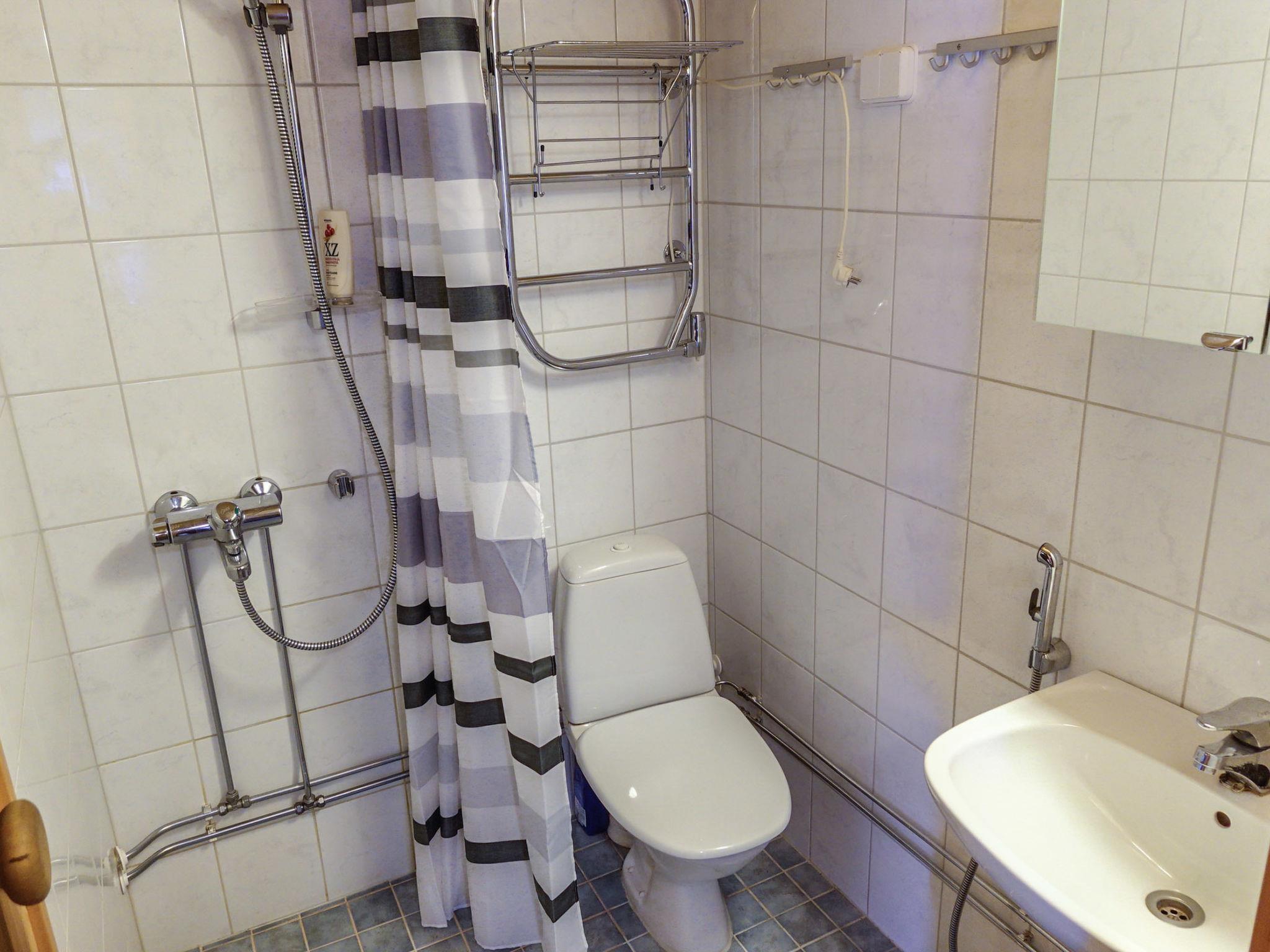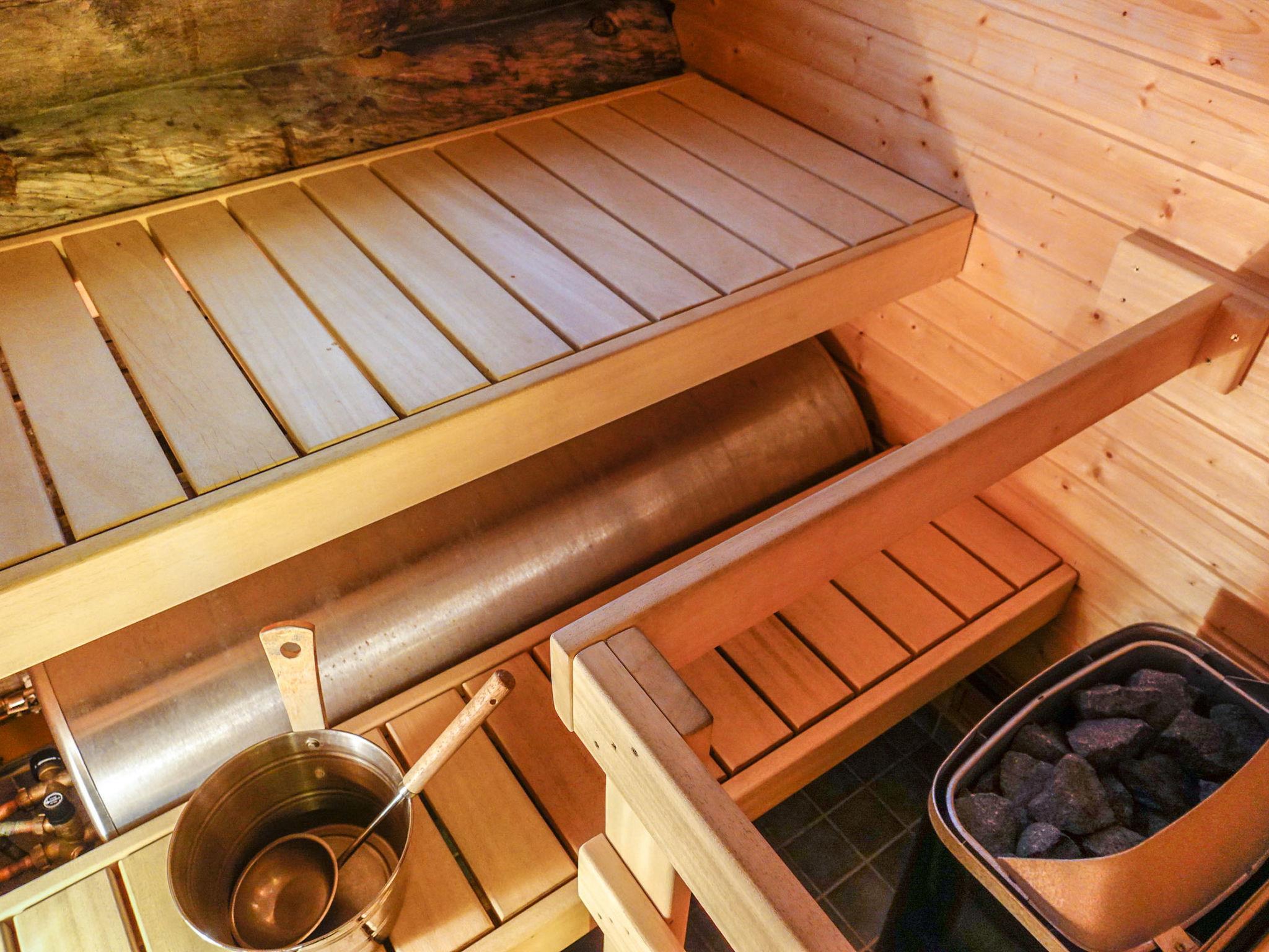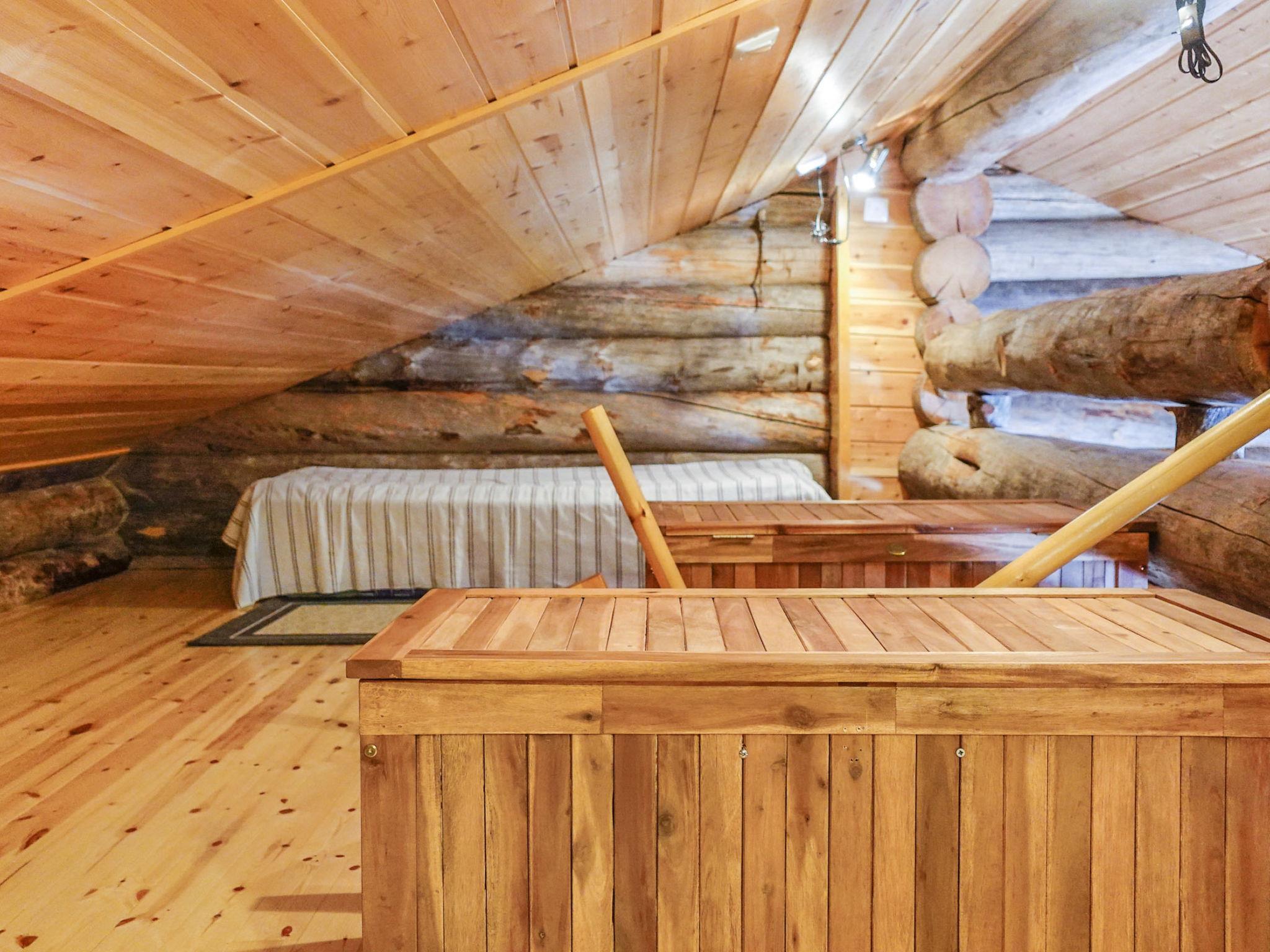 Living room/kitchen, double bed in the bedroom, four mattresses on the loft, steep stairs to the loft, sauna and washroom/WC. The kitchen also has a kettle and a toaster. Television IPTV (20 HD channels).