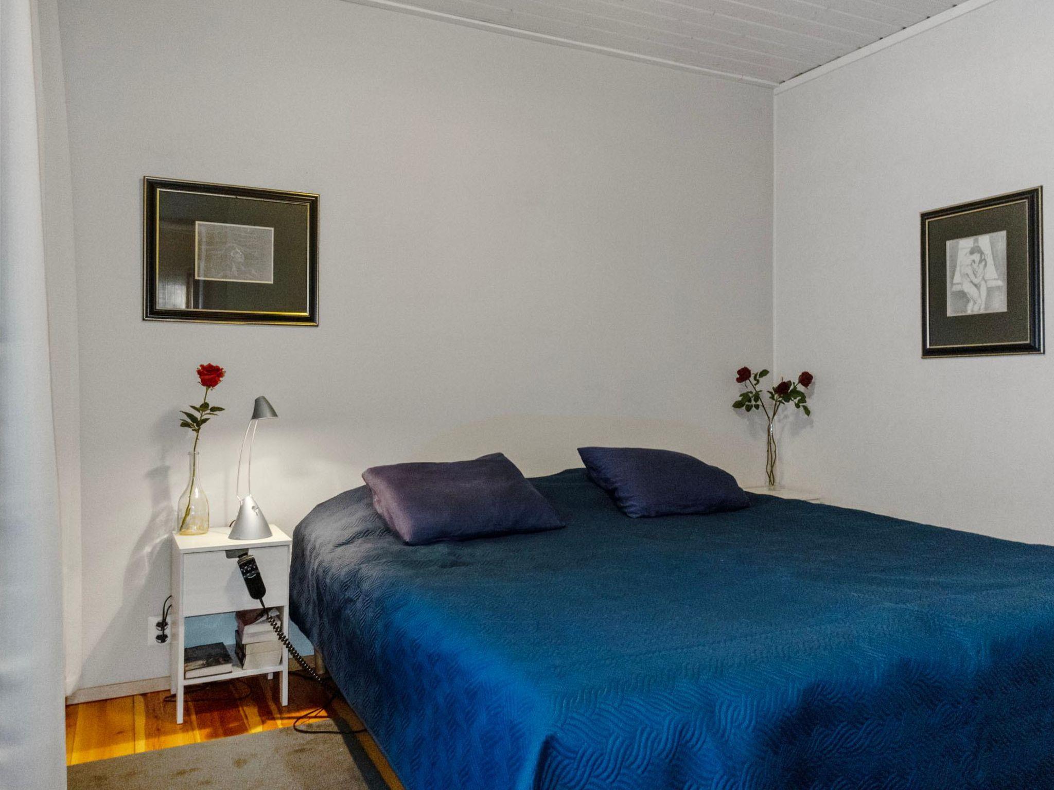 Wooden house, originally built in 1962, renovated and renewed in 2012. Living room/kitchen with sofa bed and separate 80 cm bed, bedroom with 2 motorized beds, second bedroom with 120 cm wide bed. Sauna, washroom, separate WC, cellar (access from inside the house) and a covered and partially glazed terrace.