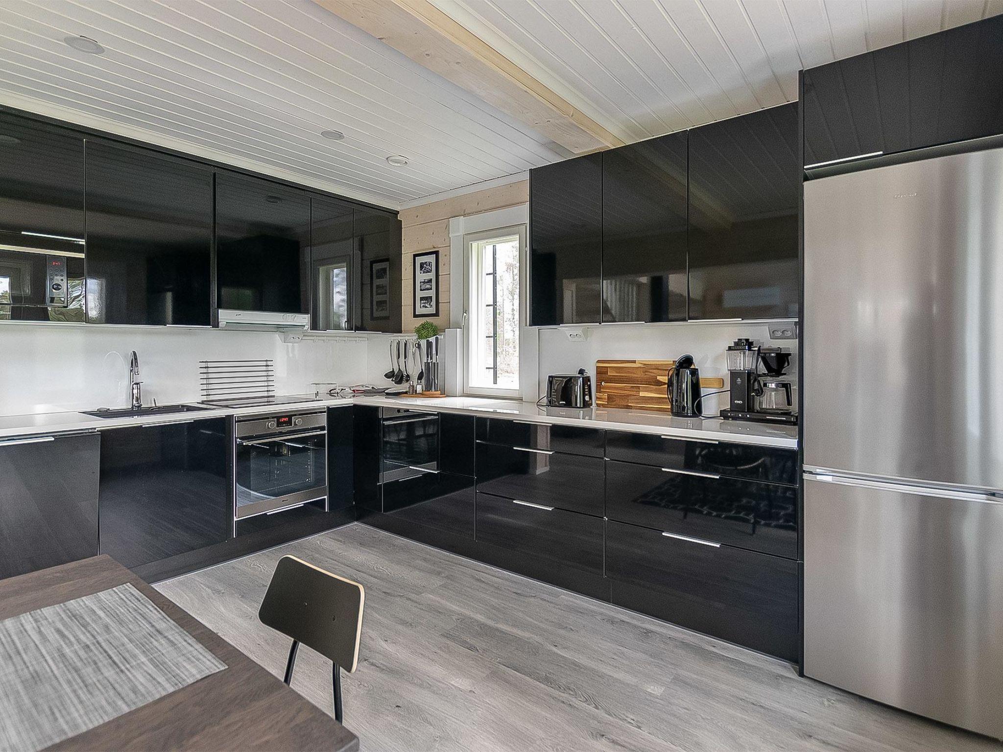Log cabin 2019, bedroom 1: two 80 x 200 cm beds, bedroom 2: 120 x 200 cm bed, bedroom 3: two 80 x 200 cm beds, bedroom 4: two 80 x 200 cm beds, sofa bed (140 x 190 cm spare bed) in the lobby on the upper floor. Living room with wood-burning stove, dining group which can be extended (for 10 people group), well-equipped kitchen corner, sauna (electric sauna stove), washroom, terrace with gas grill and garden furniture.