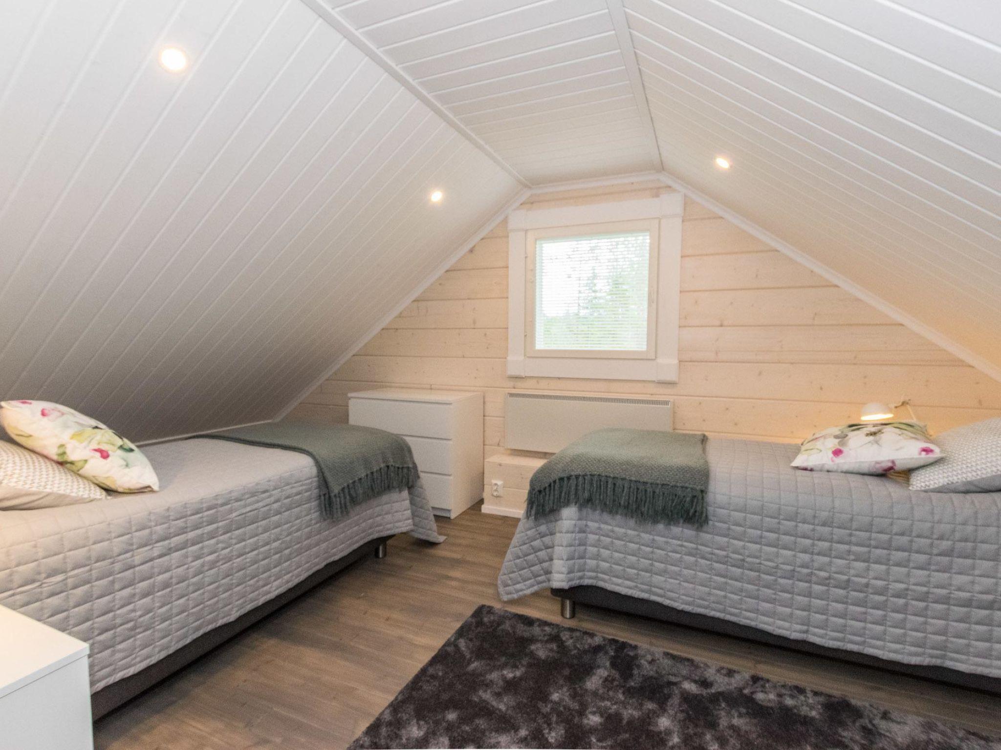 Log cabin 2019, bedroom 1: two 80 x 200 cm beds, bedroom 2: 120 x 200 cm bed, bedroom 3: two 80 x 200 cm beds, bedroom 4: two 80 x 200 cm beds, sofa bed (140 x 190 cm spare bed) in the lobby on the upper floor. Living room with wood-burning stove, dining group which can be extended (for 10 people group), well-equipped kitchen corner, sauna (electric sauna stove), washroom, terrace with gas grill and garden furniture.