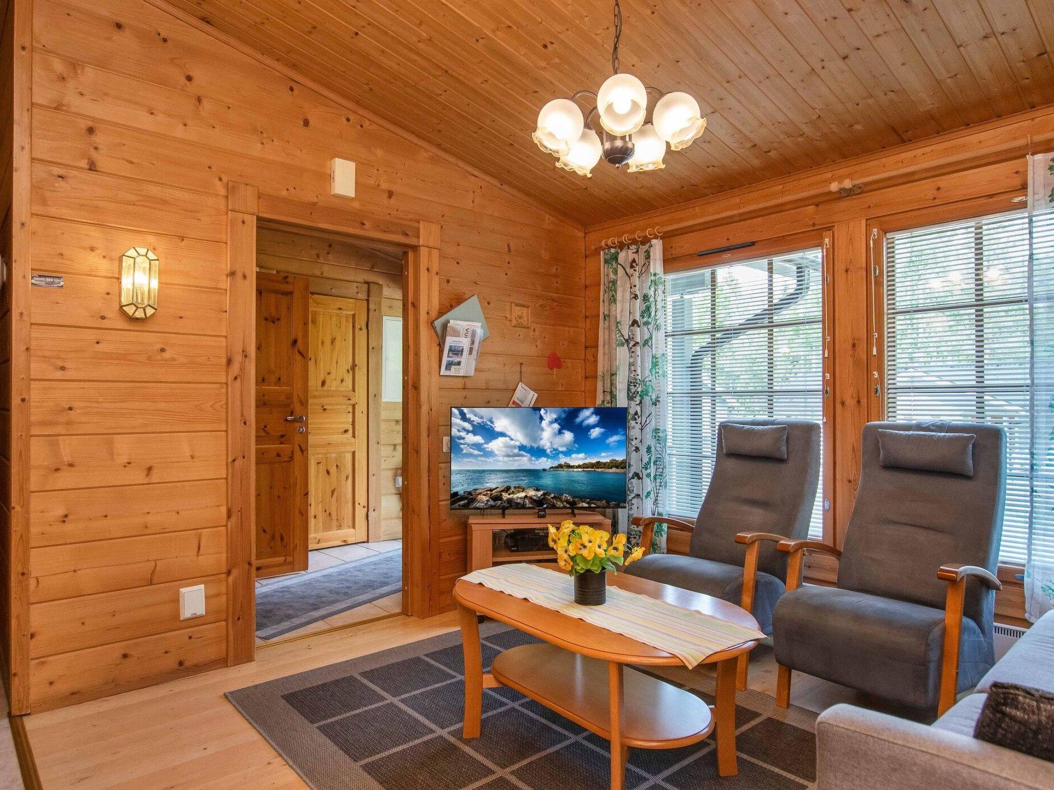 Floor area 60 m², combined living room & kitchen with sofa bed for 1-2 persons, two bedrooms, one with twin bed and one with separate beds for two persons. Sauna (electric heating), washroom and toilet. Shared beach, boat and dock. Barbecue hut in shared use. During winter it's possible to maintain your skis in the barbecue hut.