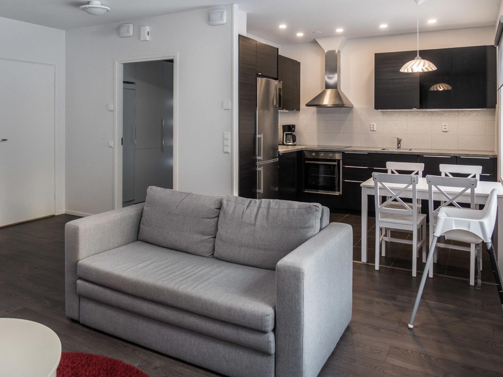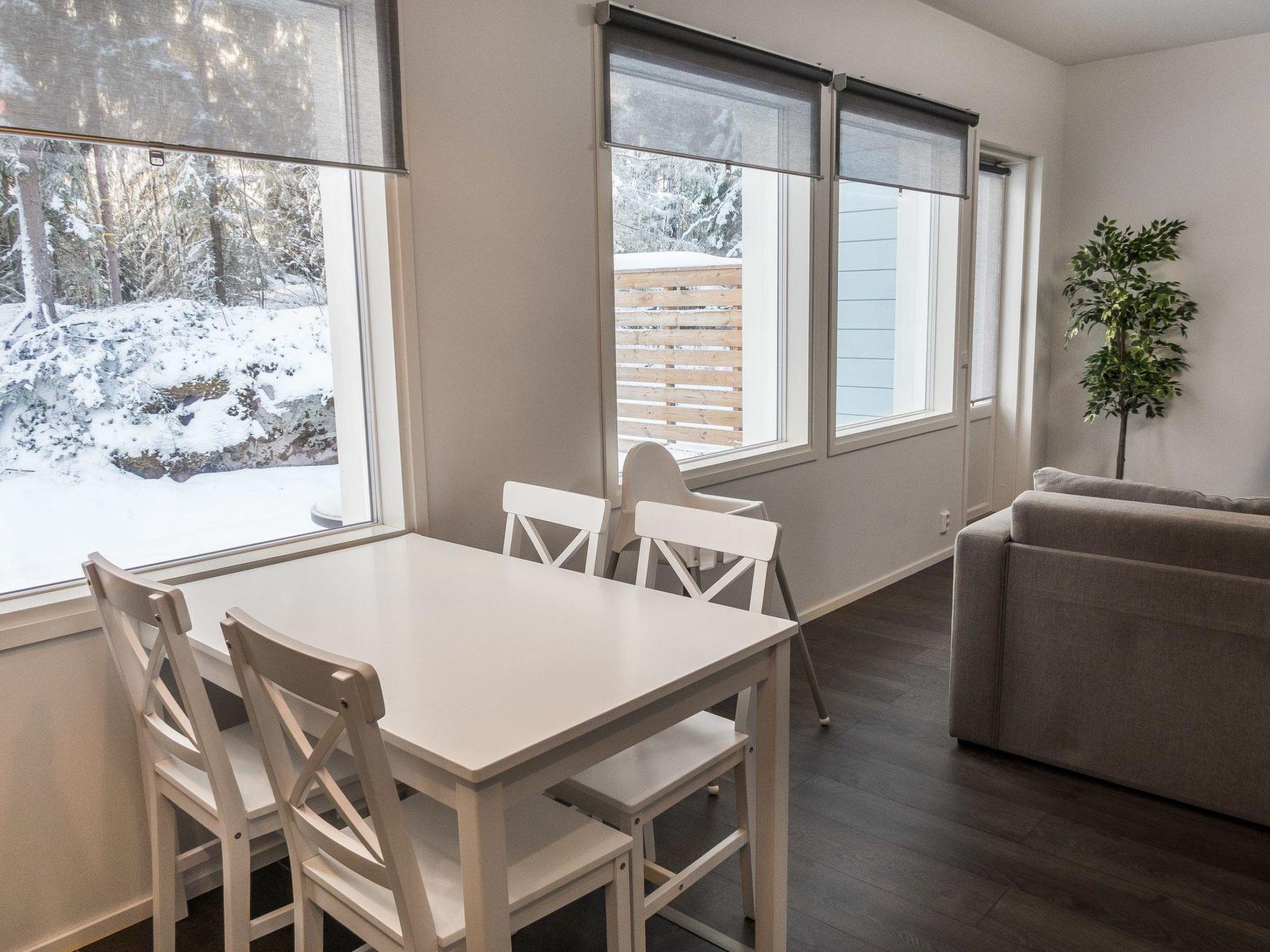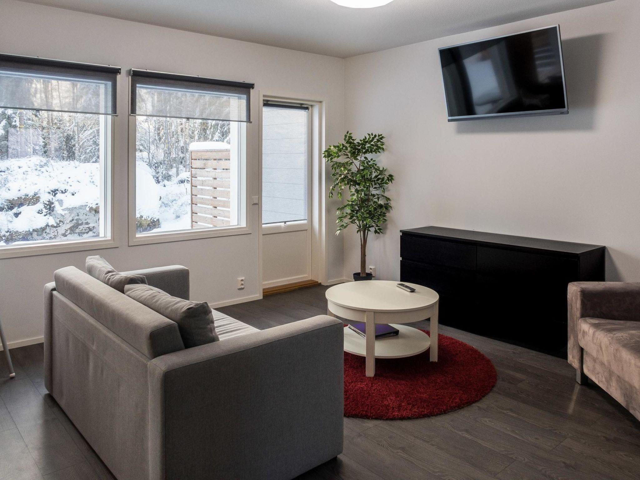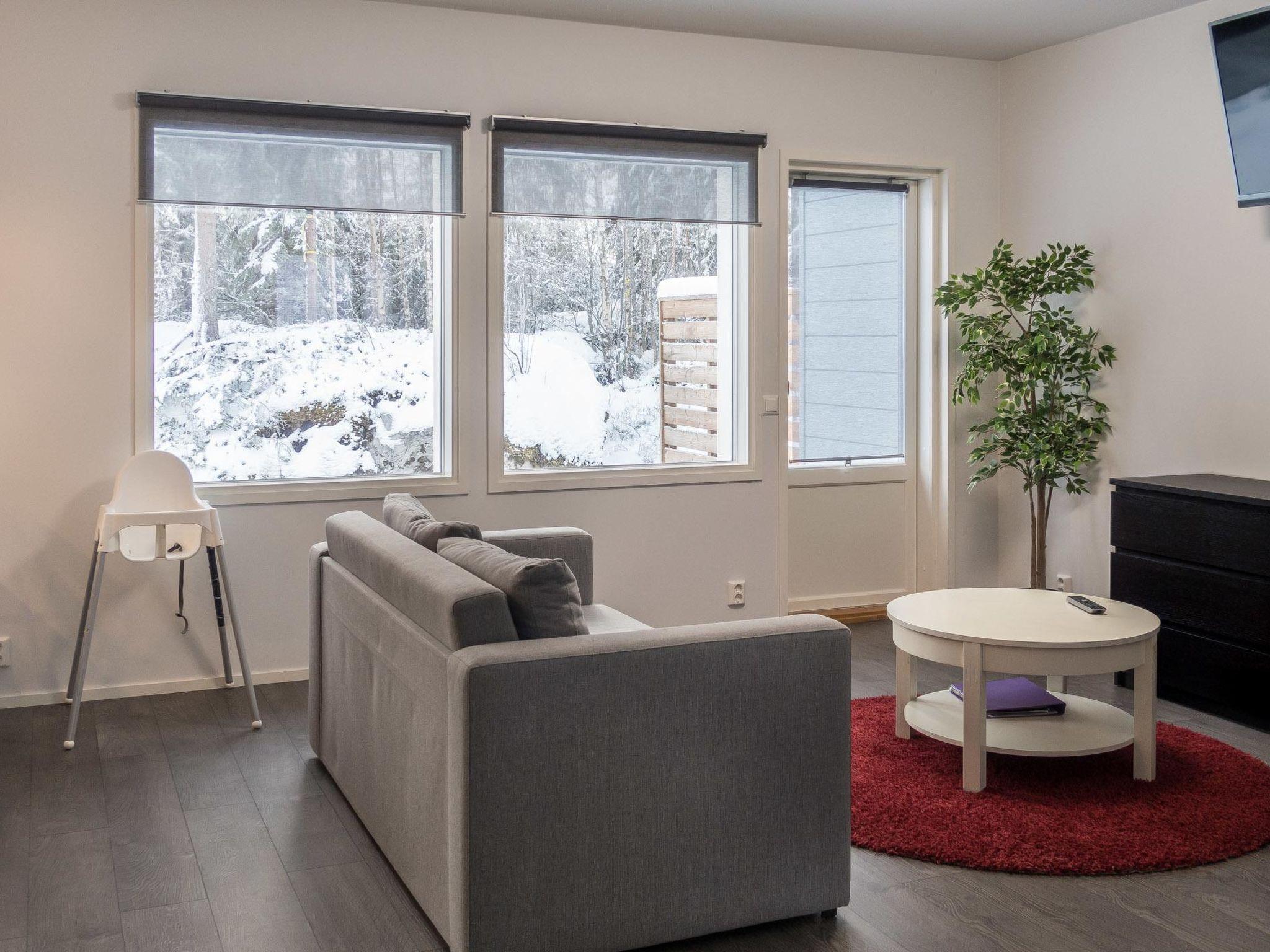 This row house apartment located middle in Vuokatti ski centre, completed in 2018. Floor area 58 m² on one floor. Combined living room & kitchen with sofa-bed for 1-2 persons. One bedroom with twin bed. Washroom/ shower+wc, sauna (electric heating), veranda, terrace.