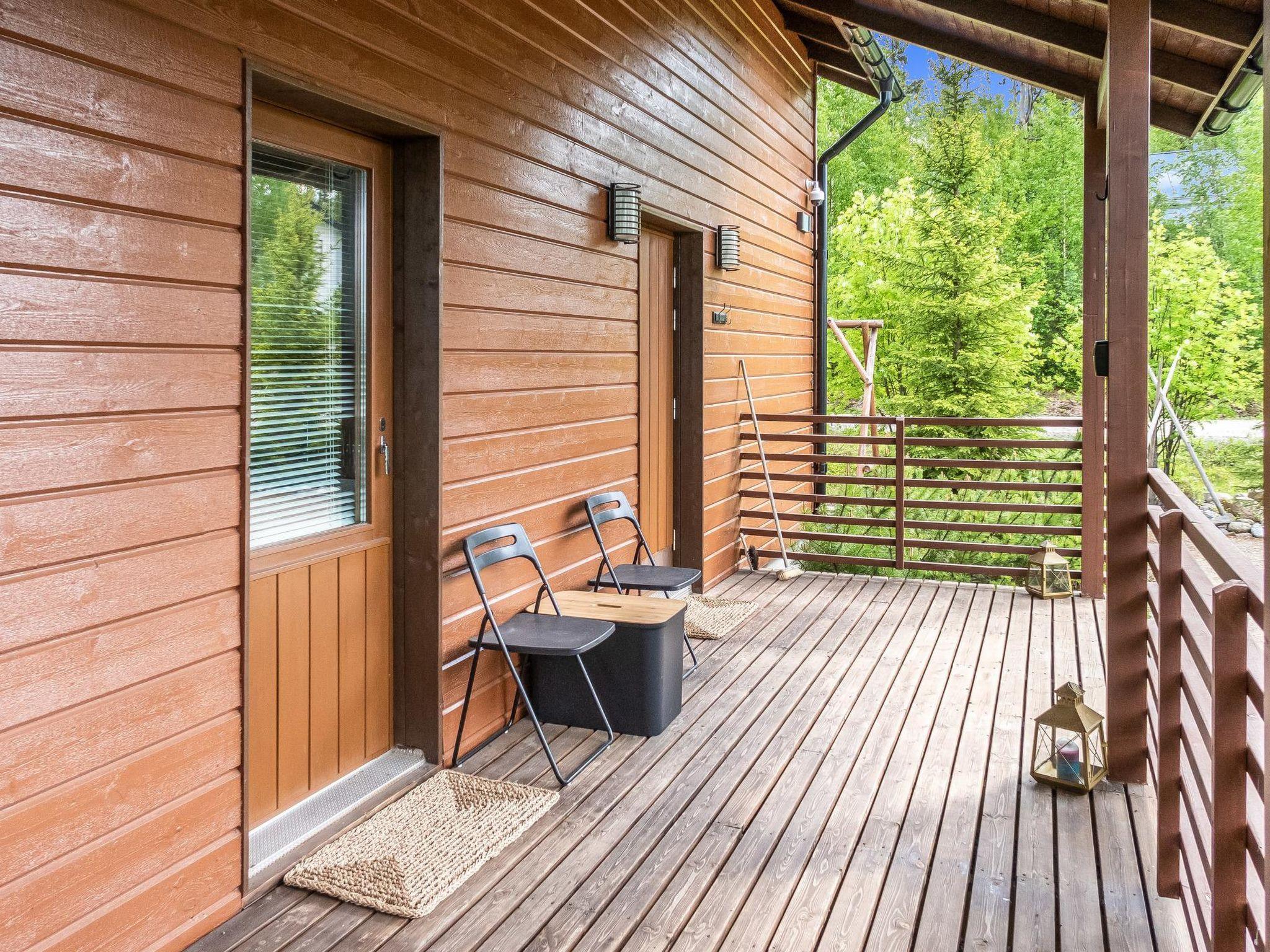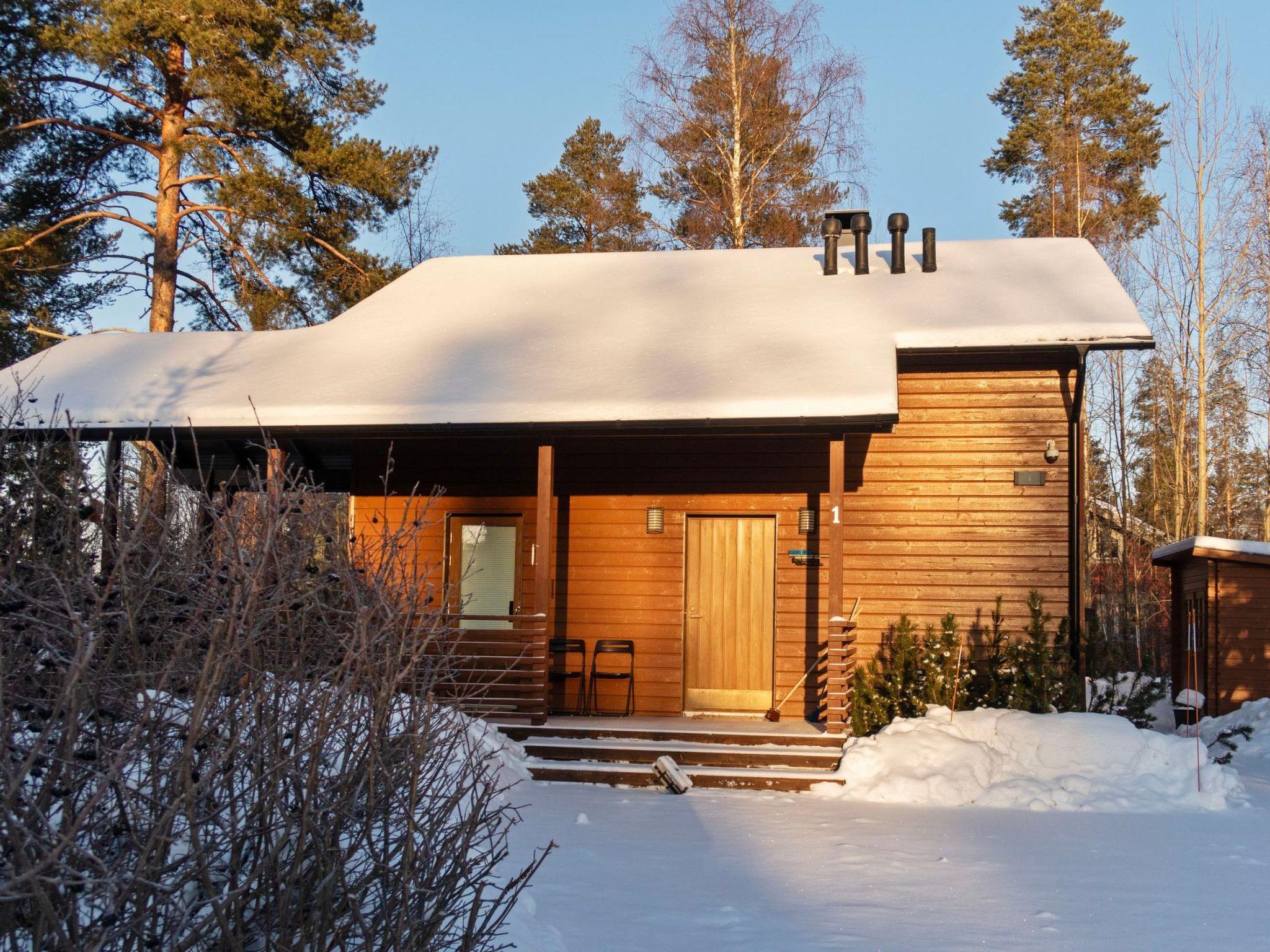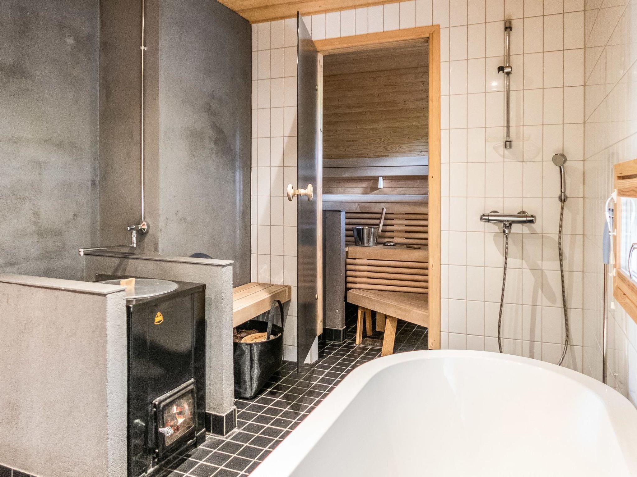 Sauna with (wood-burning stove), wood-heated kettle in the washroom, and also a shower. A separate toilet with a washing machine and a drying cabinet behind the sliding doors. Large covered terrace with dining set for 4. Parking space in front of the cottage, heating plug for a car. Small outdoor storage for skis.