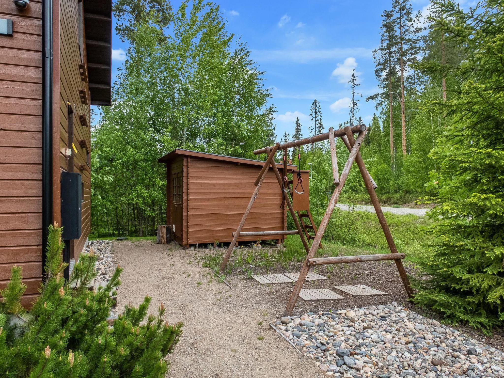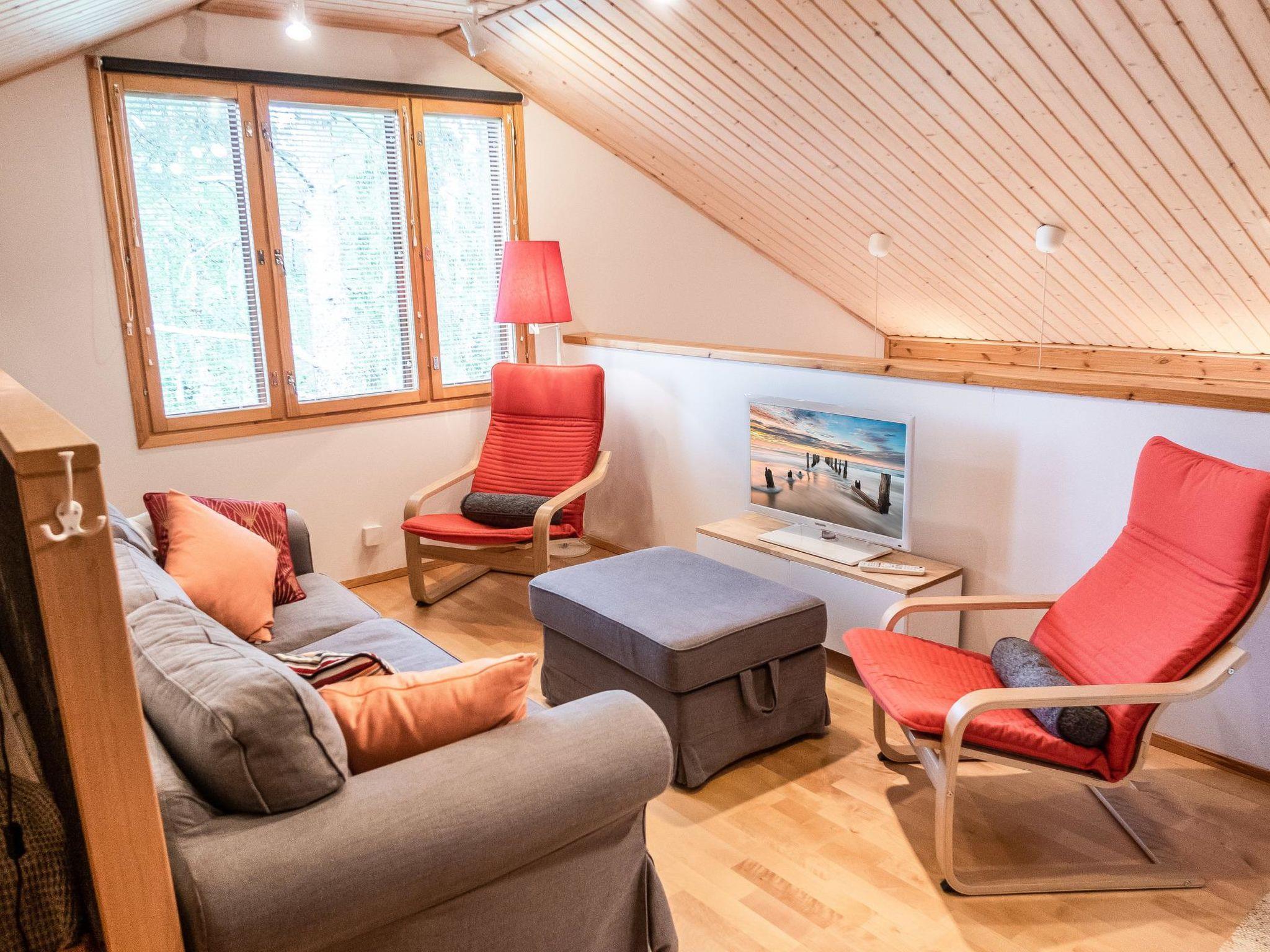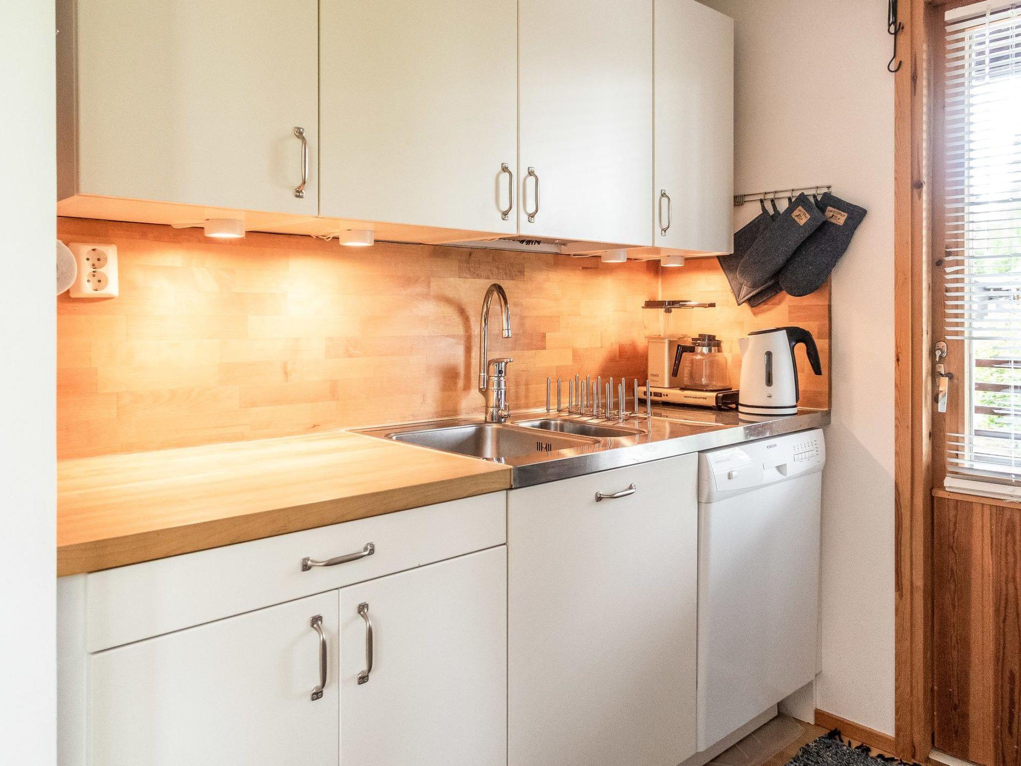 Sauna with (wood-burning stove), wood-heated kettle in the washroom, and also a shower. A separate toilet with a washing machine and a drying cabinet behind the sliding doors. Large covered terrace with dining set for 4. Parking space in front of the cottage, heating plug for a car. Small outdoor storage for skis.