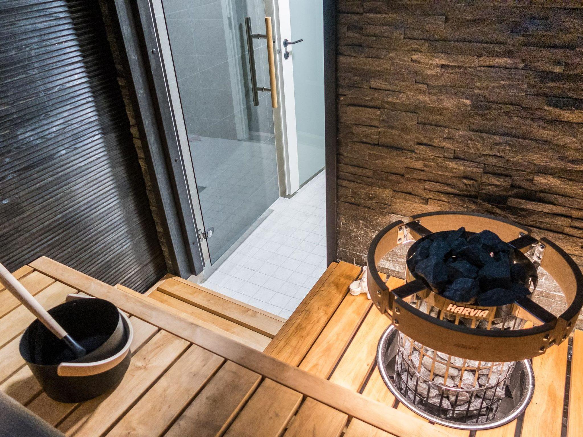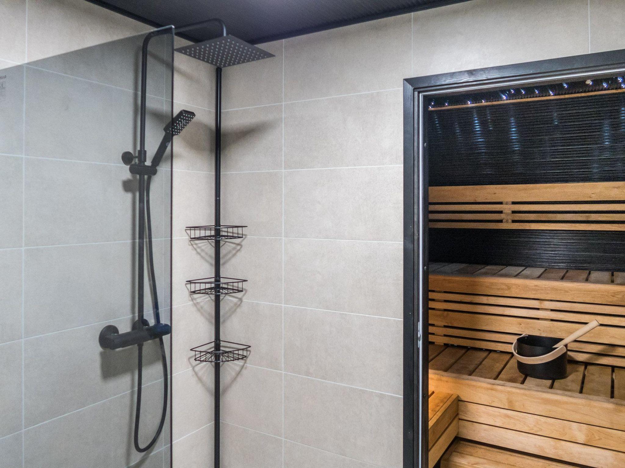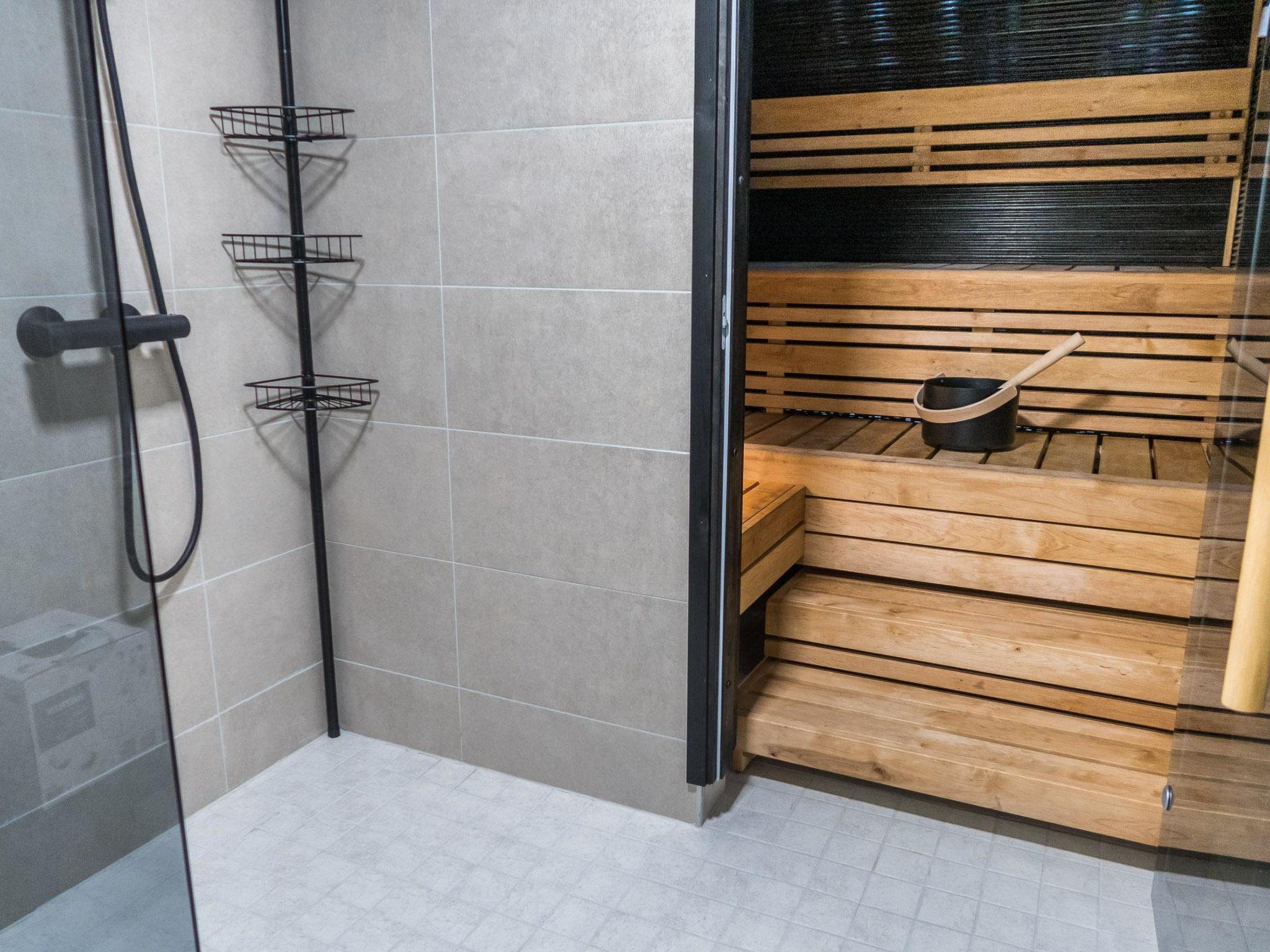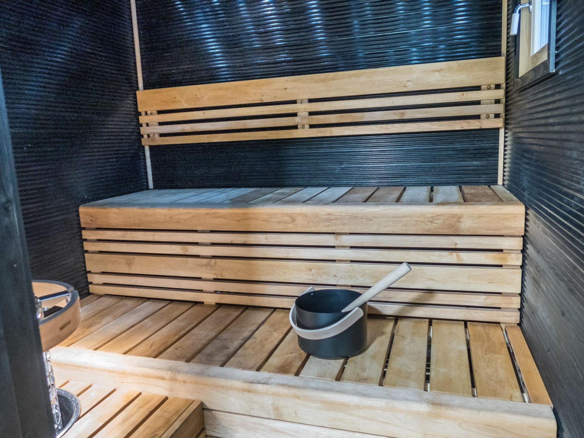 The total area of the villa is 70 m², on one floor. Spacious and bright living room/kitchen, dining set for 6-7 people. Two bedrooms with sliding doors, with double beds and wardrobes. Access from the living room to a spacious covered terrace with furniture and gas grill in the summer. In the living room there are one sofa bed (120 cm) and a folding extra bed (80 x 200 cm). A separate WC, shower and sauna with a twinkling starlight and a Harvia-brand pilar-style electric sauna stove provide atmospheric baths. Fireplace in the living room, kitchen equipment: airfryer, coffee maker, toaster, kettle, etc.