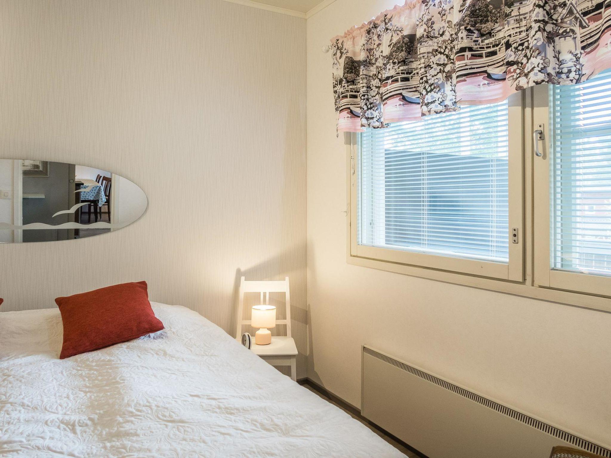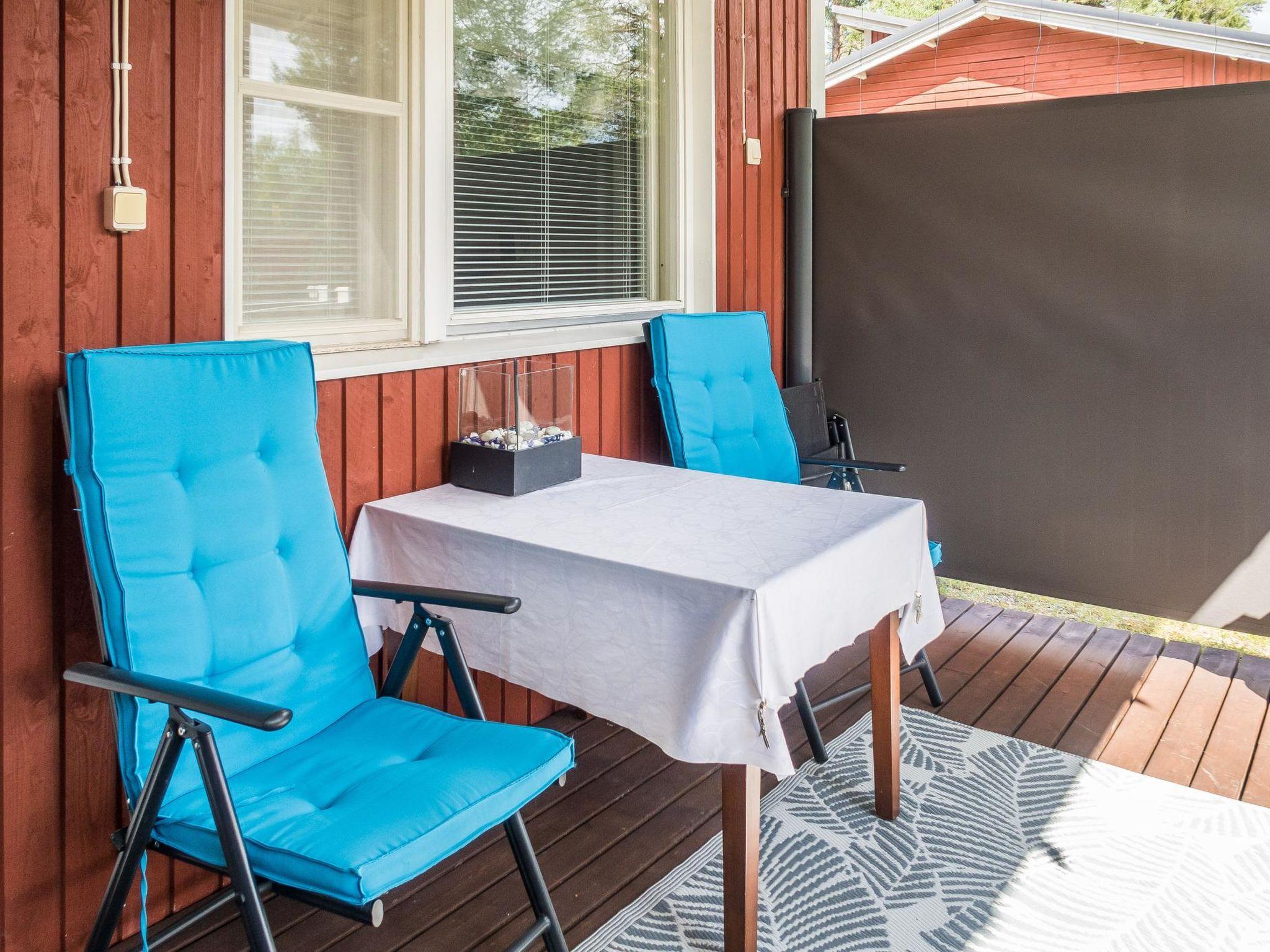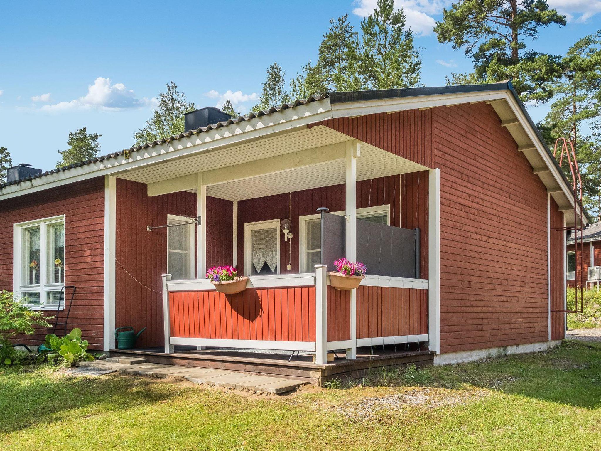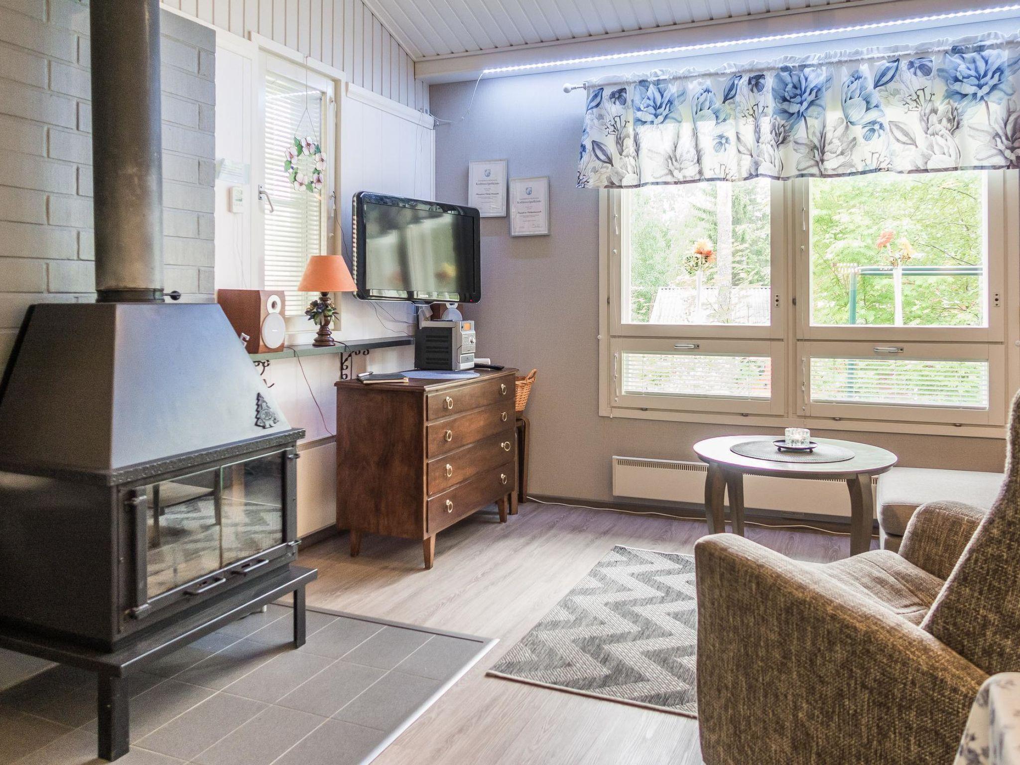 A wooden semi-detached apartment built in 1989 is located in nice location in Vuokatti's slope center. Living space 58 m², includes loft 9 m². Downstairs with a living room / kitchen with a dining set for 4 and a wood-burning fireplace creating atmosphere and warmth. Double bed in the bedroom, sauna (electric stove), washroom/toilet. Steep stairs to the loft, with separate beds for two. Covered terrace and garden furniture, grill available in summer.