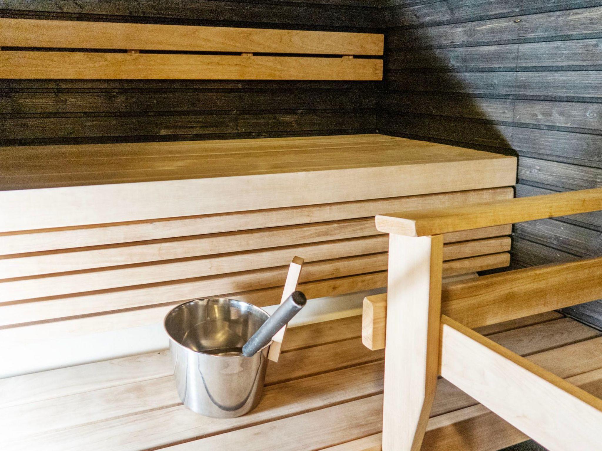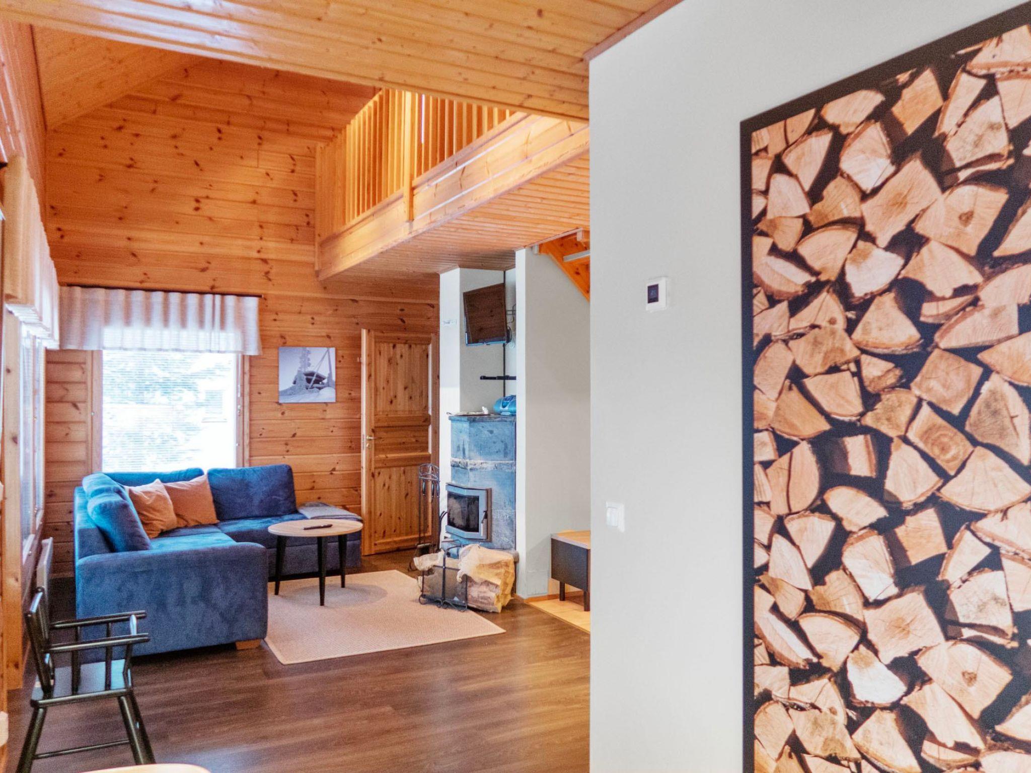 The area of ??the villa is 94 m² on two floors. Downstairs is a living-kitchen, two bedrooms, one with a double bed (160 cm), the other with separate beds for two (2 x 80 cm). Sauna, shower, separate WC. Upstairs, a bedroom with separate beds for four (4 x 80 cm), a double bed (160 cm) in the mezzanine hall, WC.