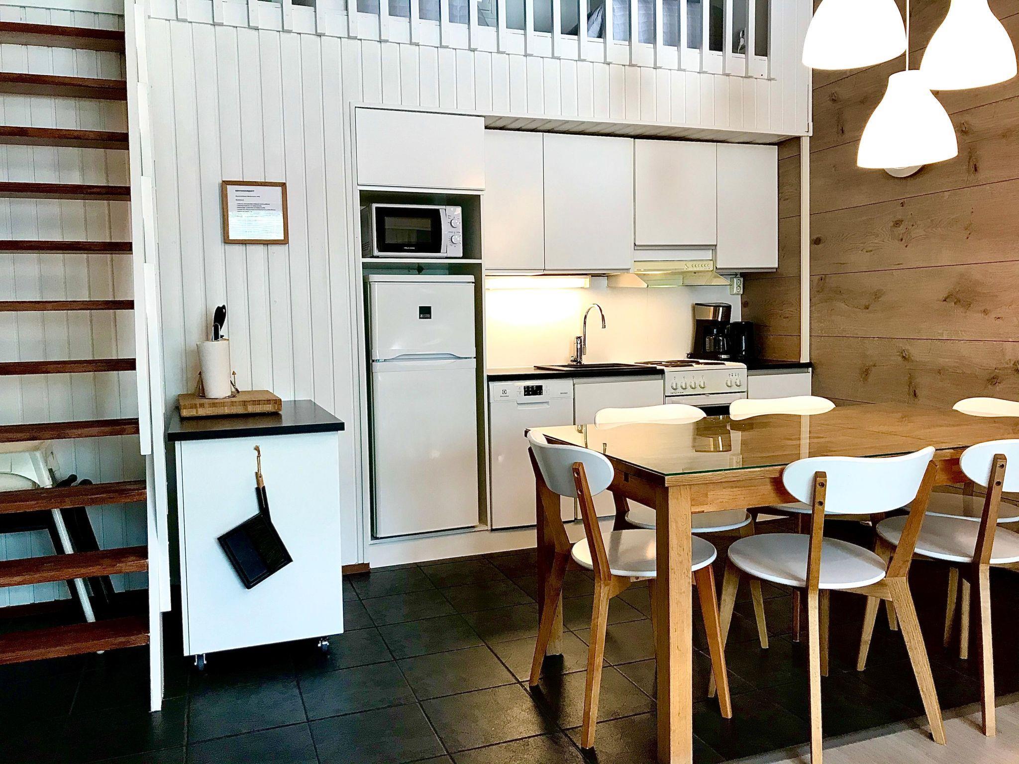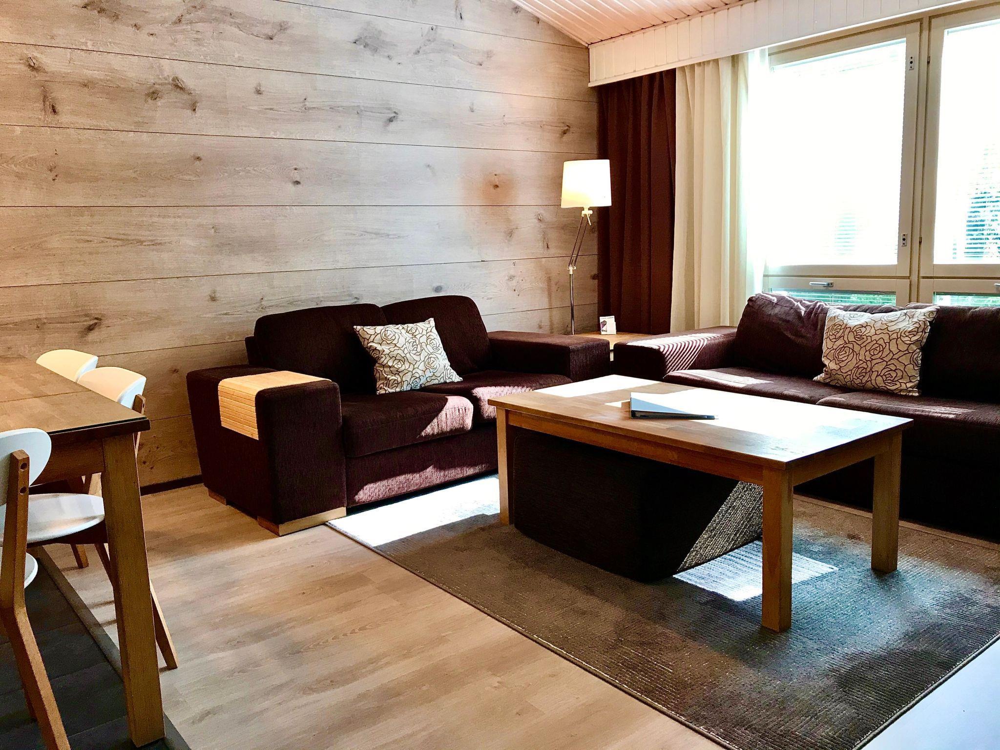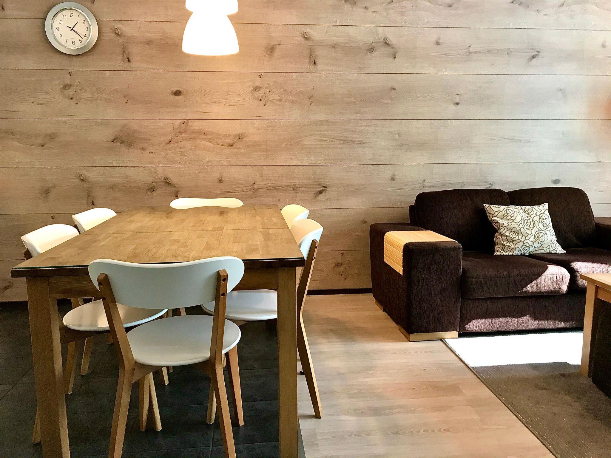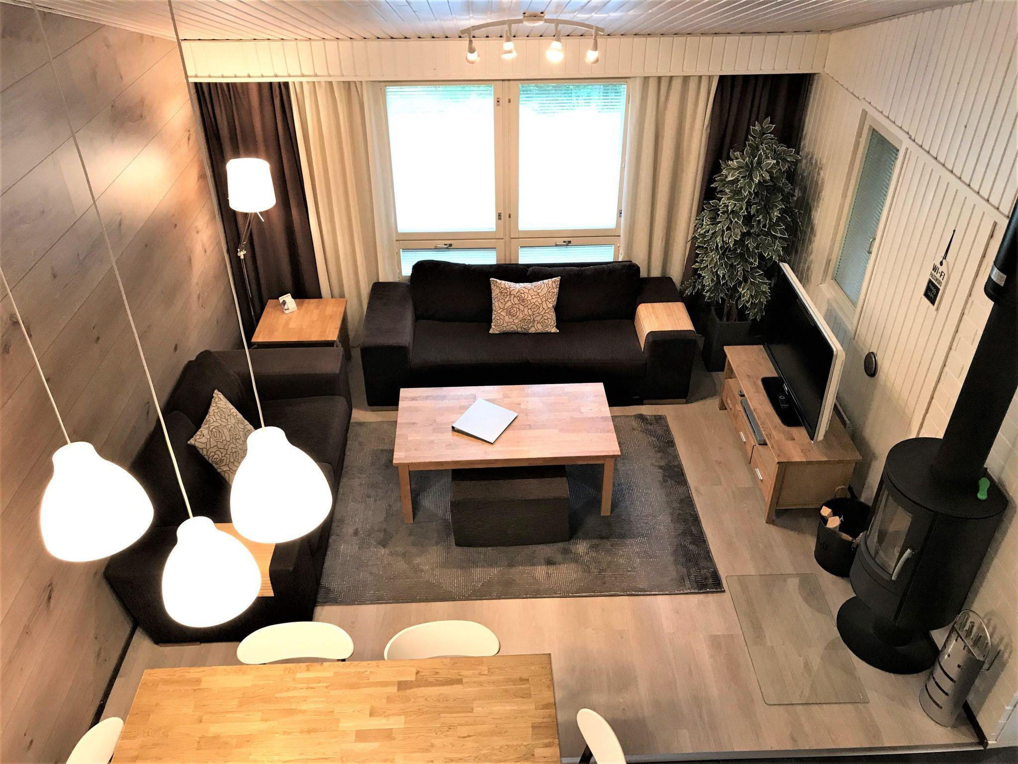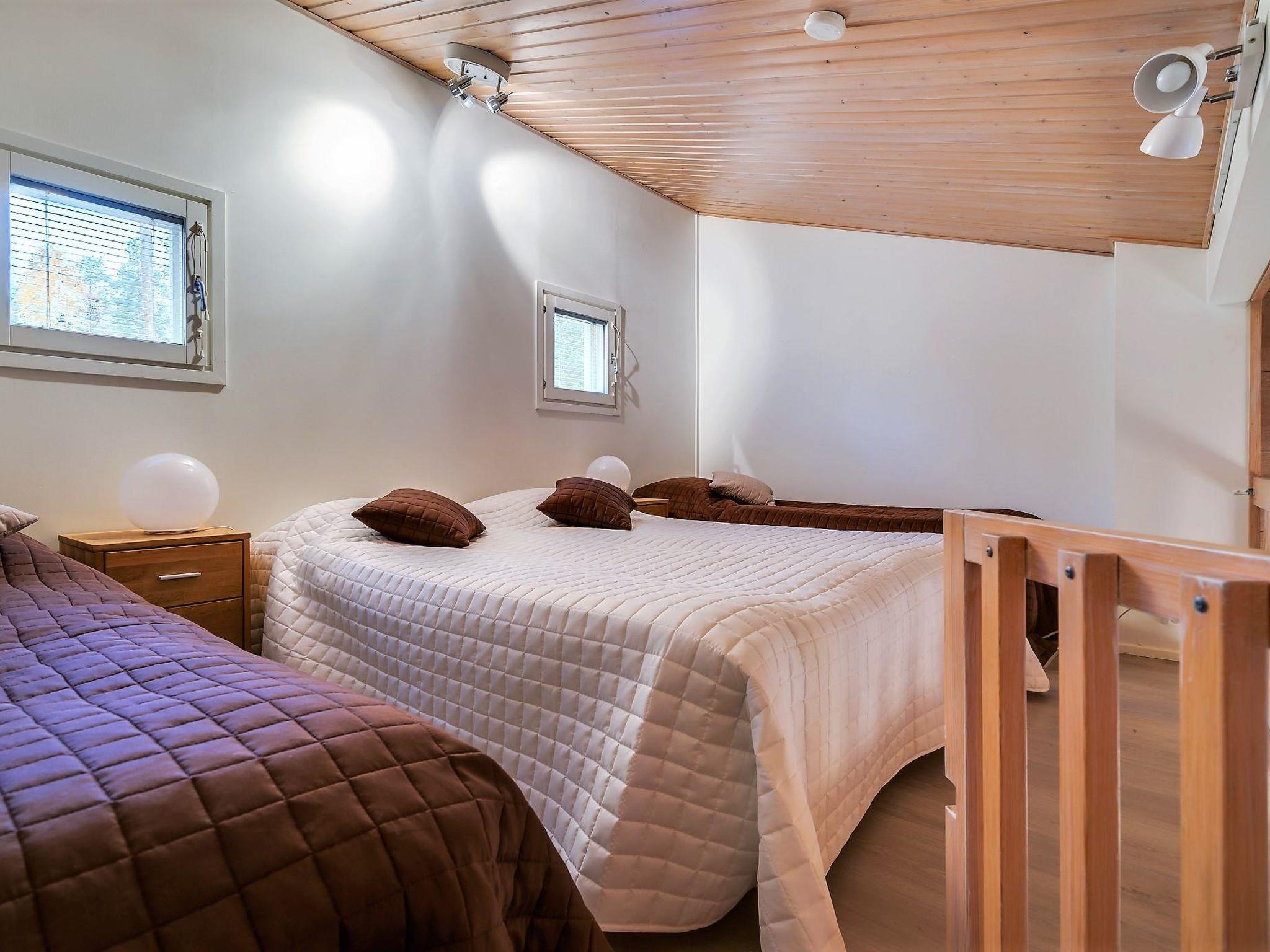 This apartment in semi-detached houselocated in Vuokatti ski centre was completed in 1989. Floor area 80 m², loft 11 m². Combined living room & kitchen, bedroom 1: 2 beds, bedroom 2: 2 beds, sauna (electric heating), washroom/toilet. Loft with 2 beds and a bed (140 cm width, for 1 person). Bed and high chair for a baby. Barbeque use on summer time.