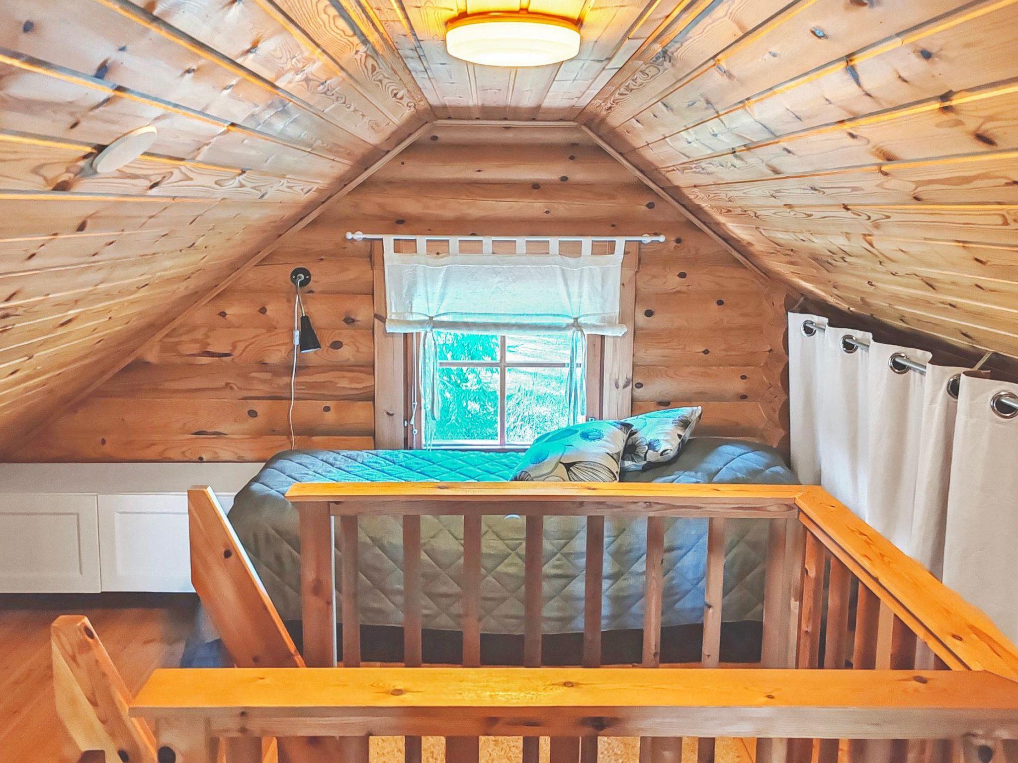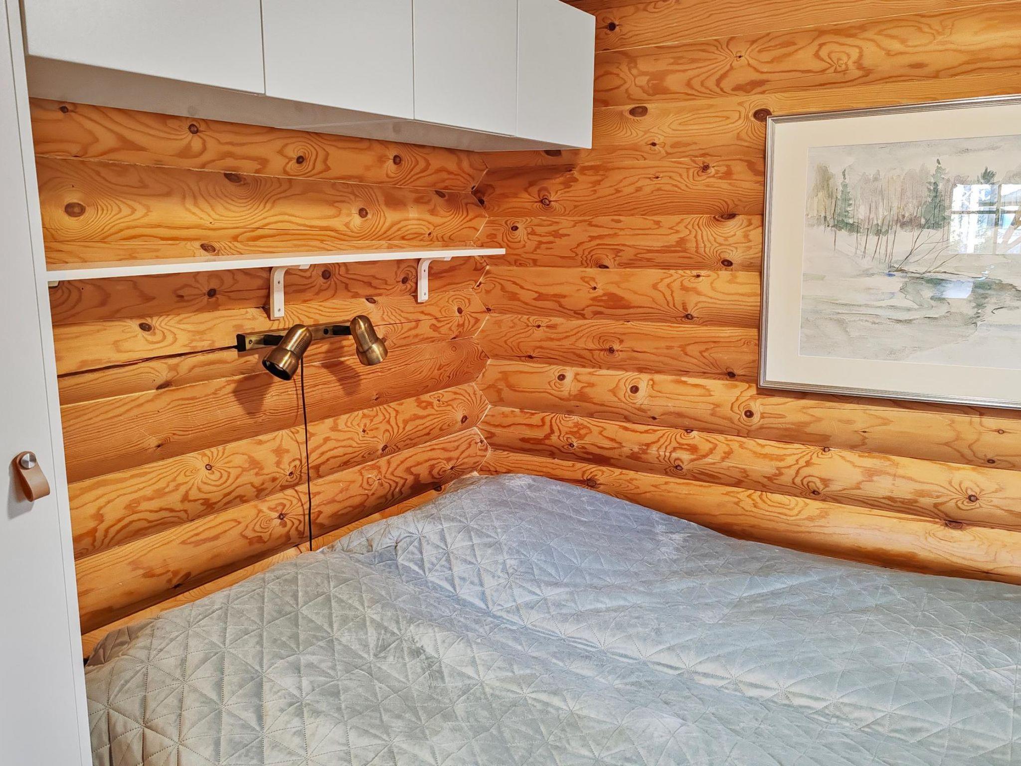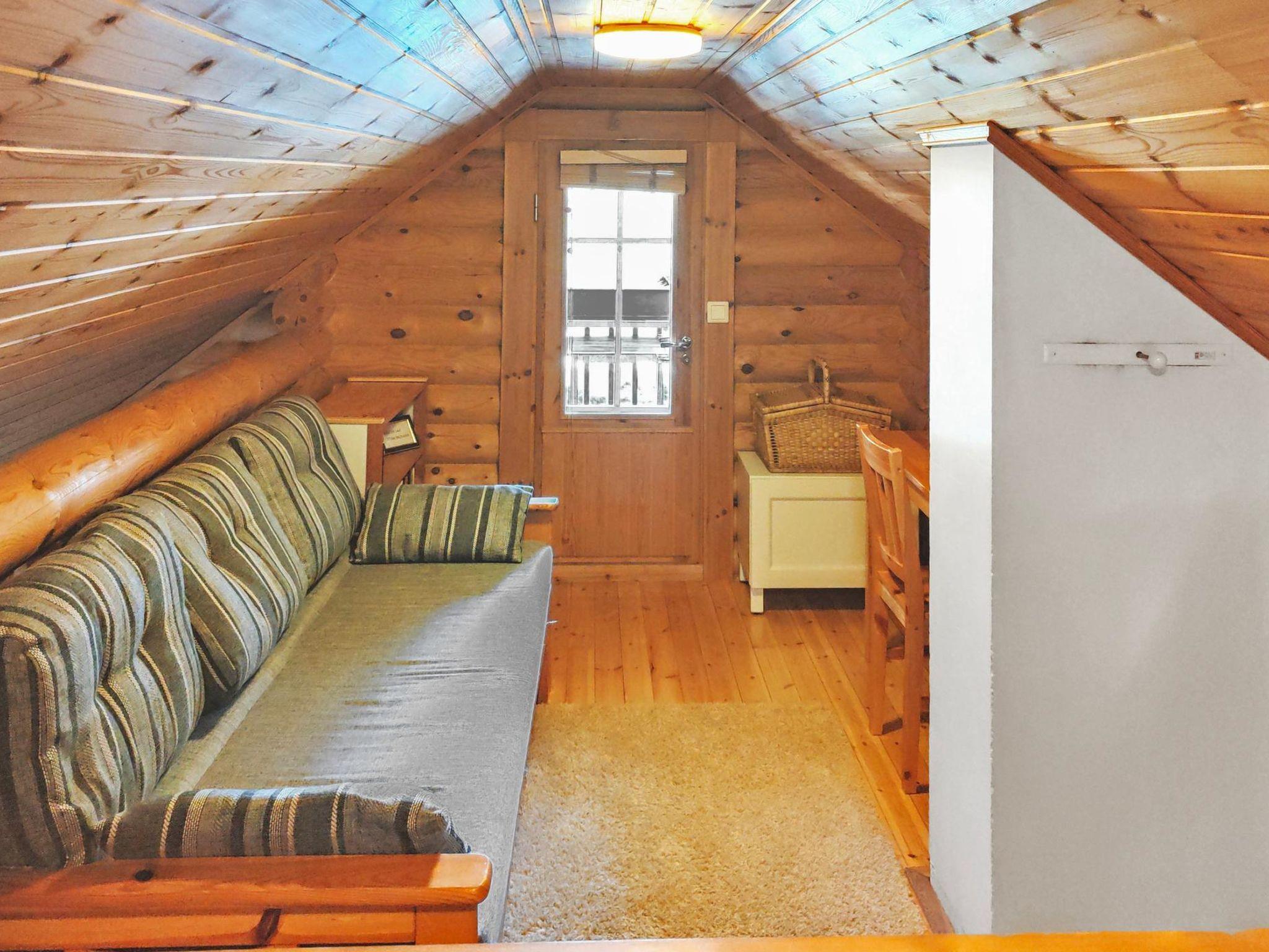 This log cottage in Vuokatti was completed in 1998. Floor area 60 m². Combined living room & kitchen with sofa-bed, bedroom with separate beds for two, loft with separate beds for two, sauna (electric heating), shower, toilet. TV: Sony 32" (with usb)