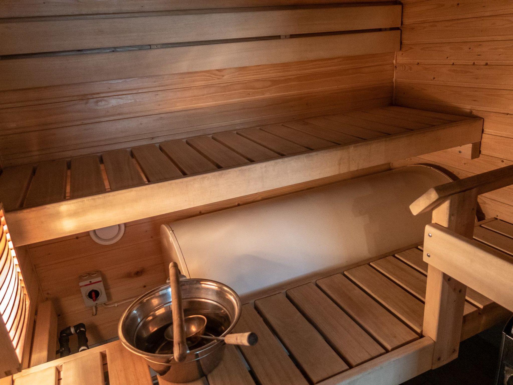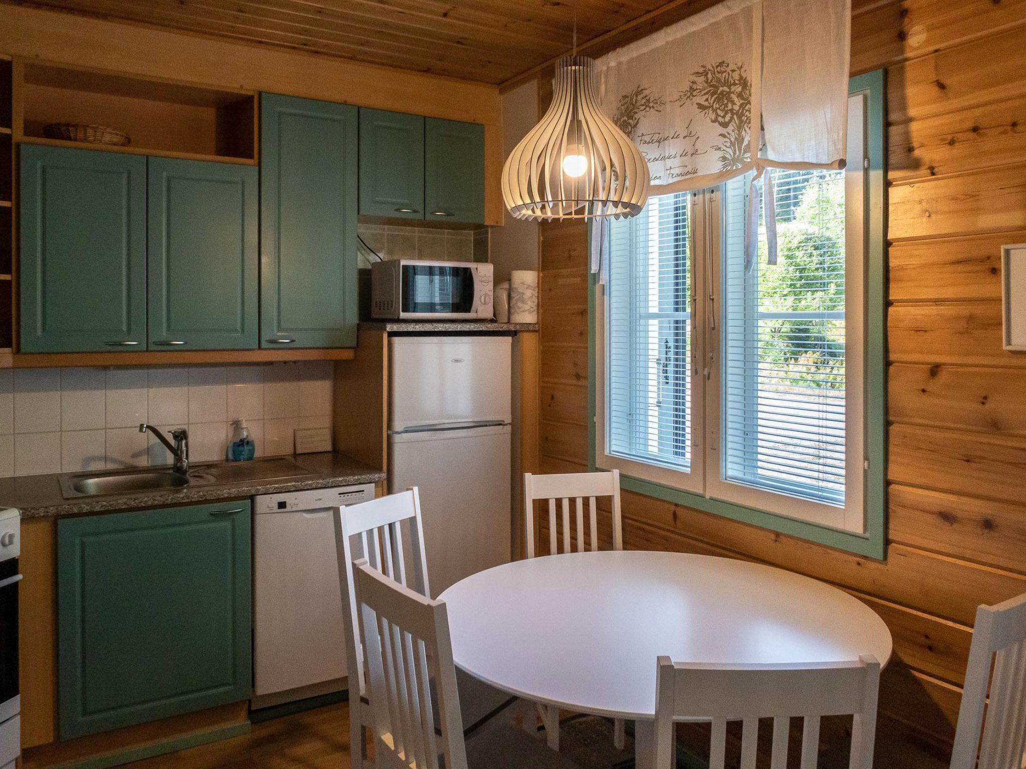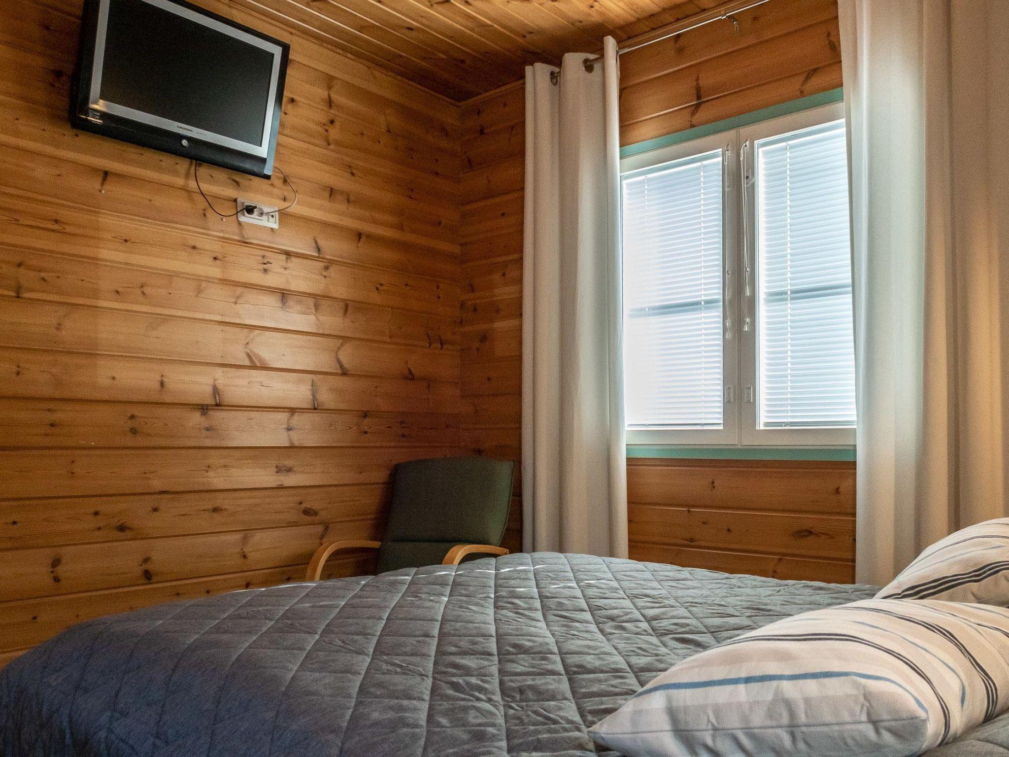 Floor area 60m², loft 35 m². On the ground floor there is combined living room & kitchen, one bedroom with twin bed, sauna (electric heating), washroom/toilet. Upstairs there is loft vestibule with separate beds for four and alcove with 120cm bed. Terrace with furniture.