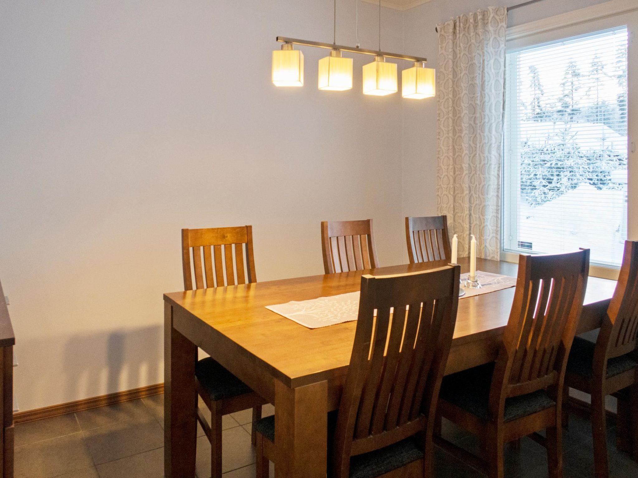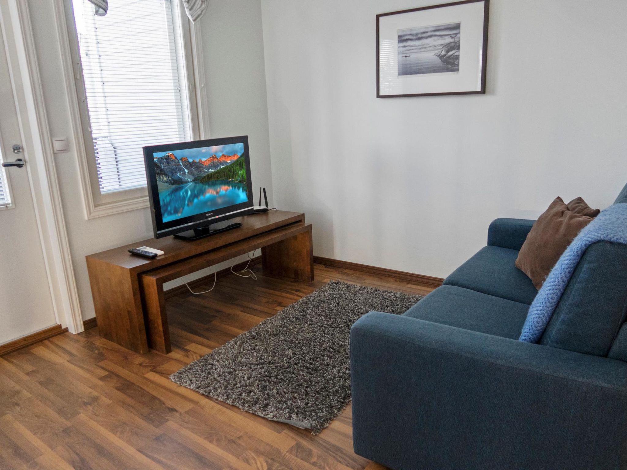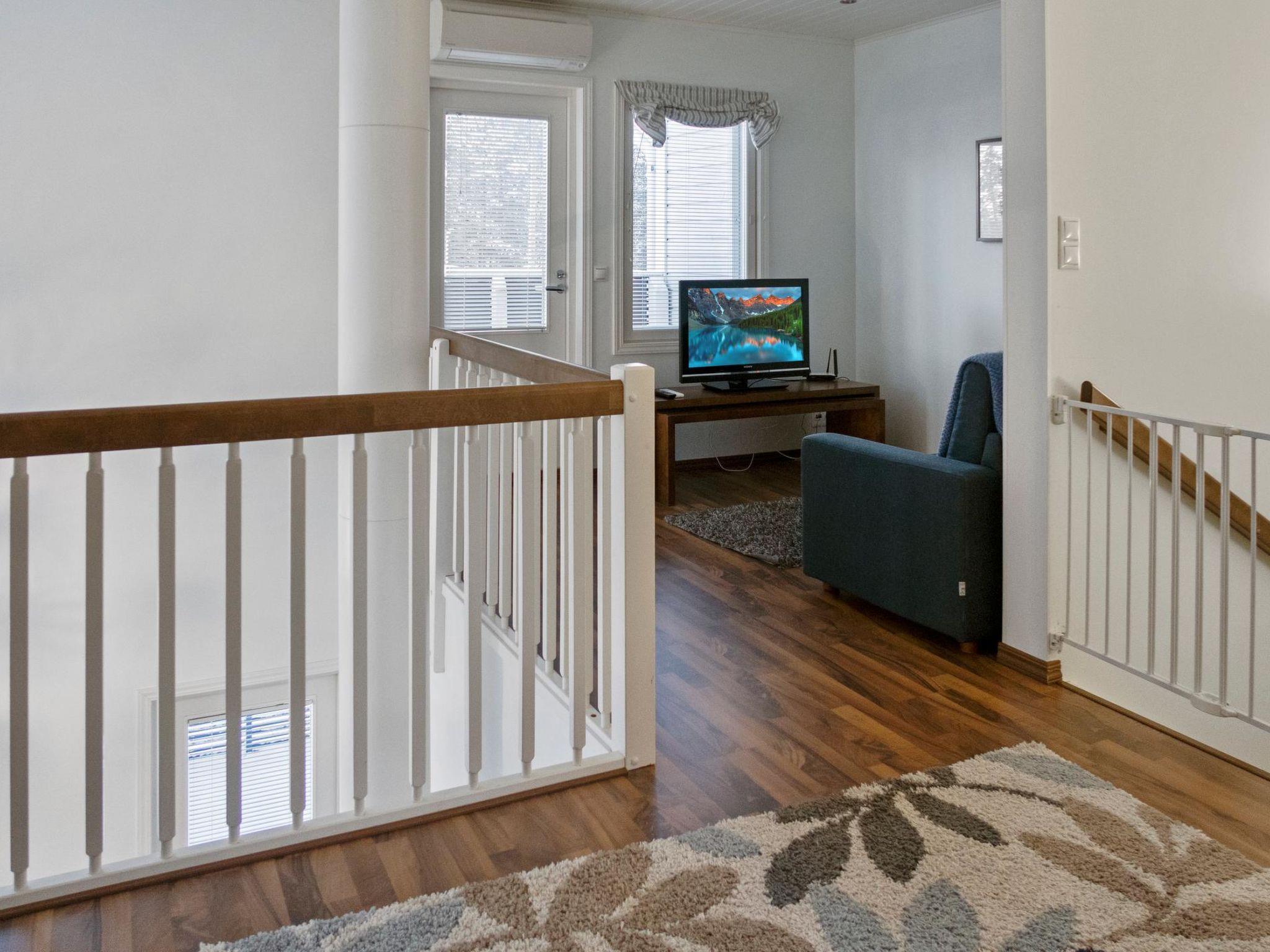 This row house apartment located in Vuokatti was completed in January 2010. Floor area 93 m². On the ground floor there is living room, dining room, kitchen, sauna (electric heating), washroom, toilet. Upstairs there is bedroom with twin bed and bedroom with separate beds for two. Loft with sofabed for 2 persons (width 120 cm), household room, toilet and balcony. Lockable, cold storage.