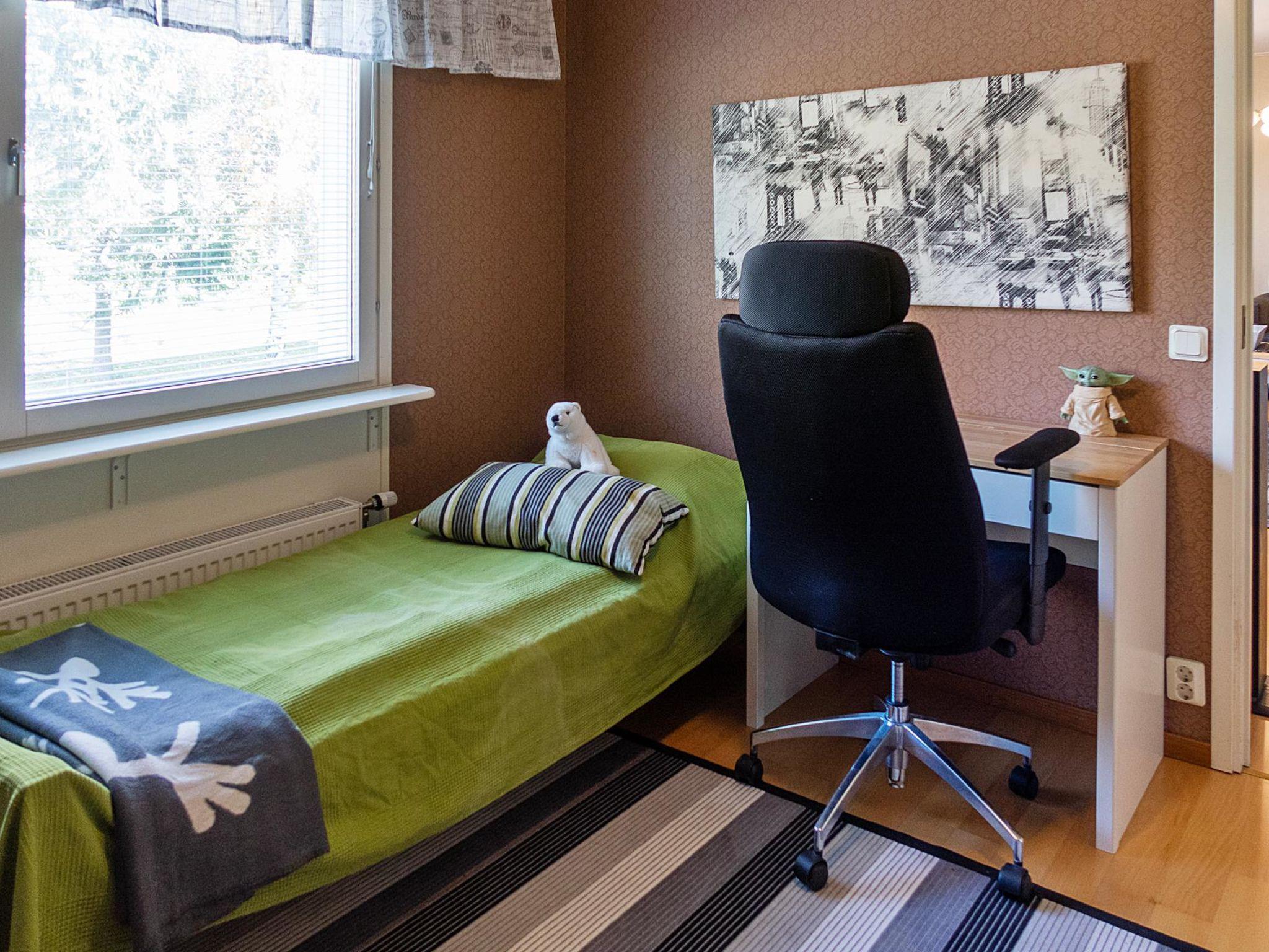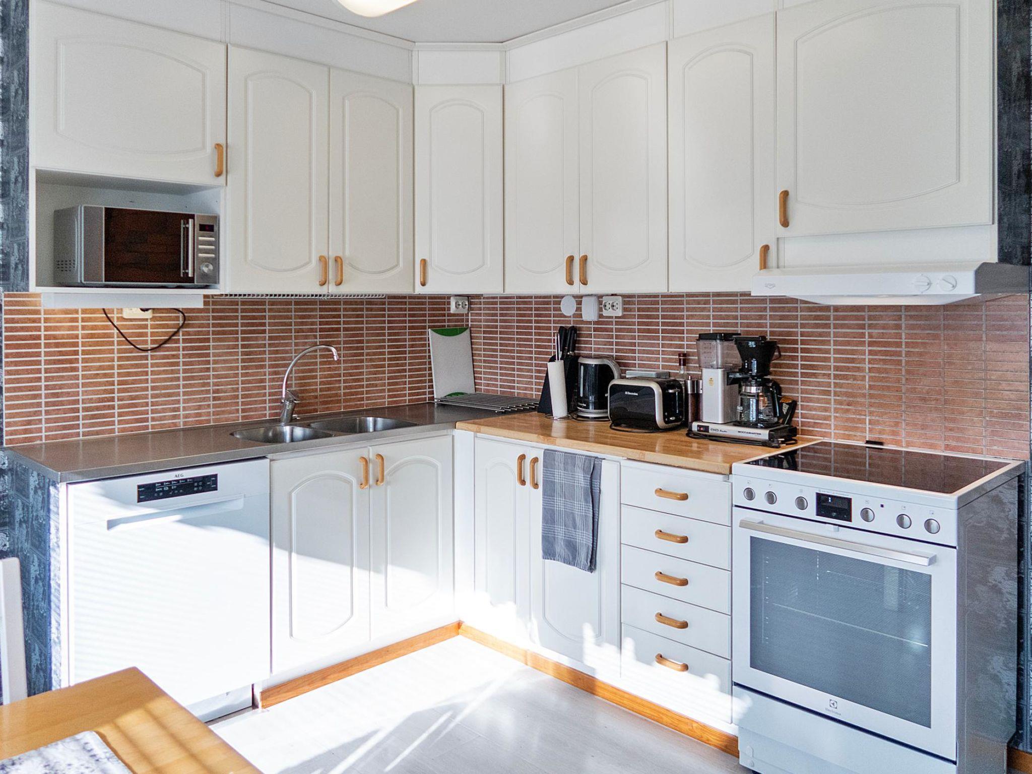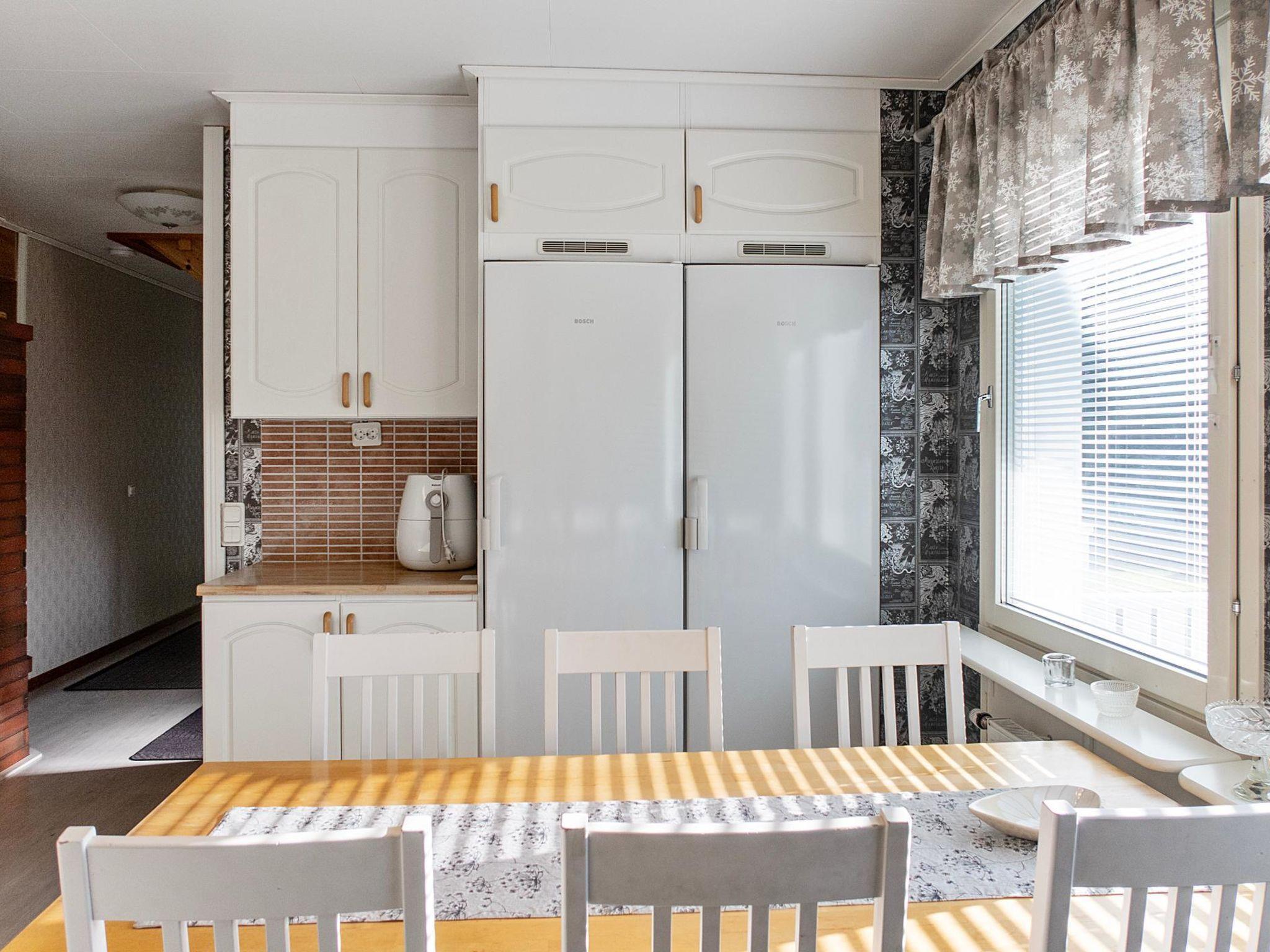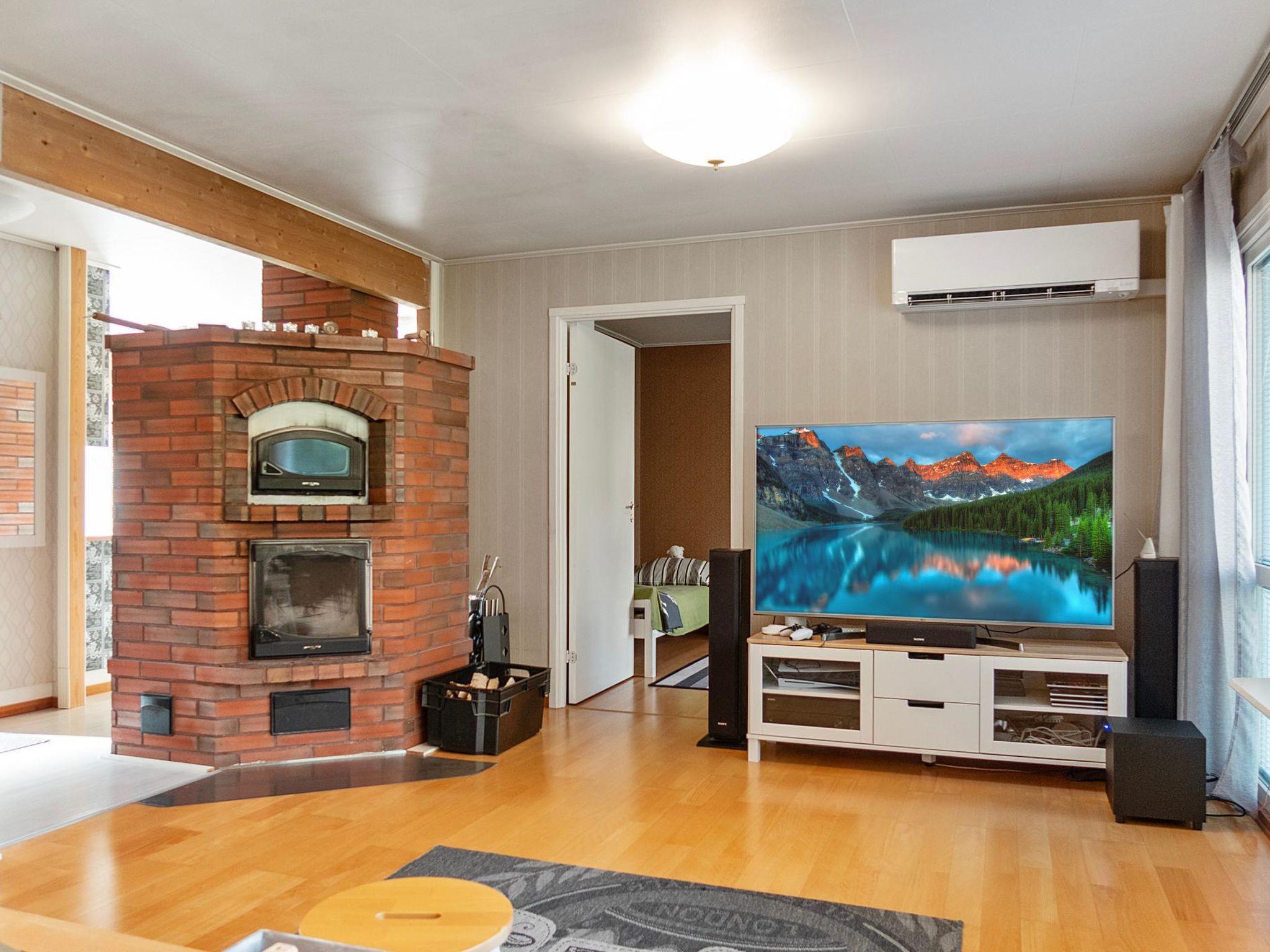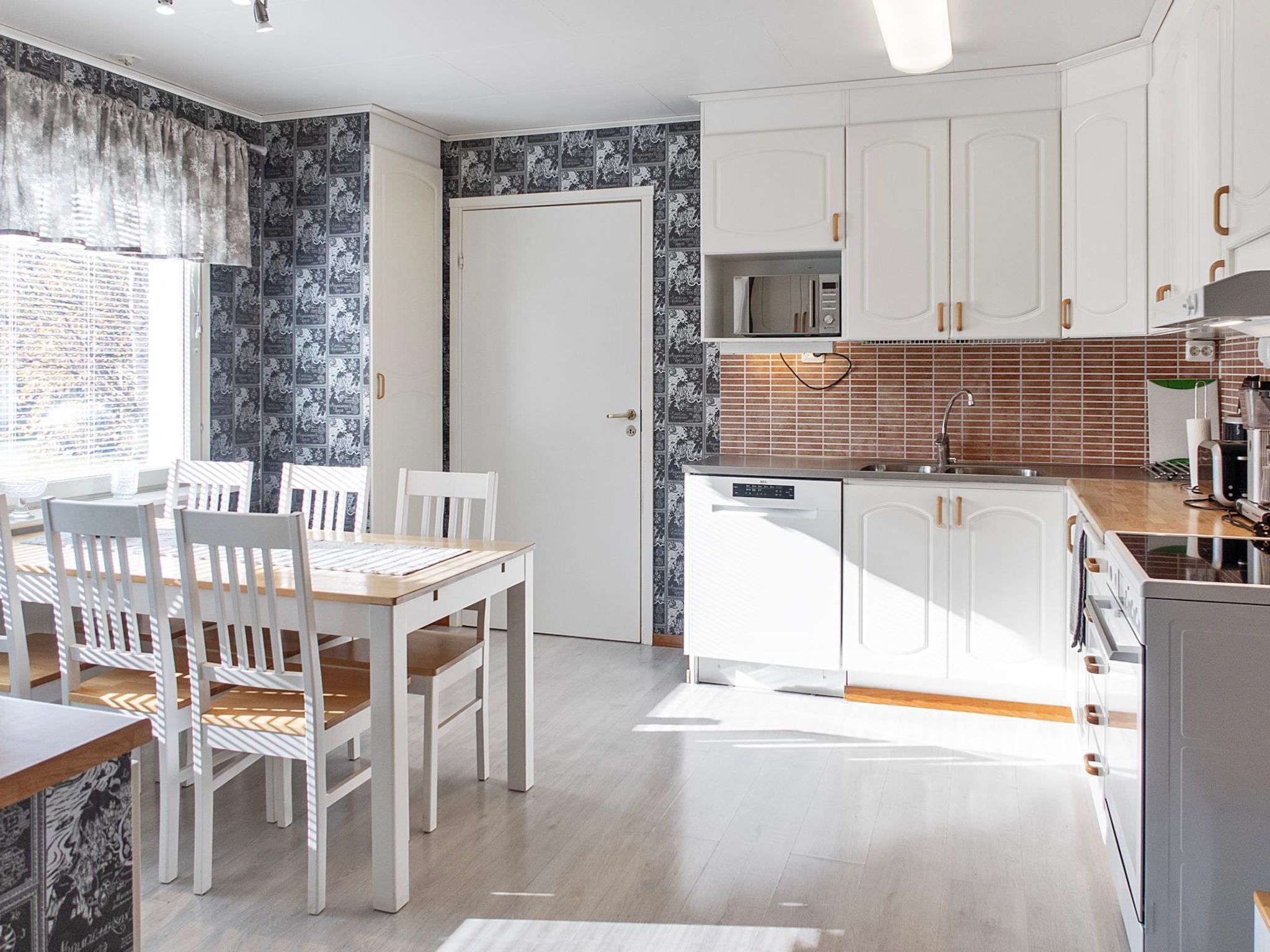 A holidayhouse completed in 2007 in Vuokatti, near the Holiday Club Katikulta spa. Area 122 m² on one floor. Kitchen, living room, fireplace. 4 bedrooms: 1 with double bed, bedroom 2: two separate beds, bedroom 3-4 separate bed for 1. Sleeps for 6 in total. Utility room, sauna (electric stove), washroom/toilet and separate toilet. Porch and terrace. A campfire place in the backyard.