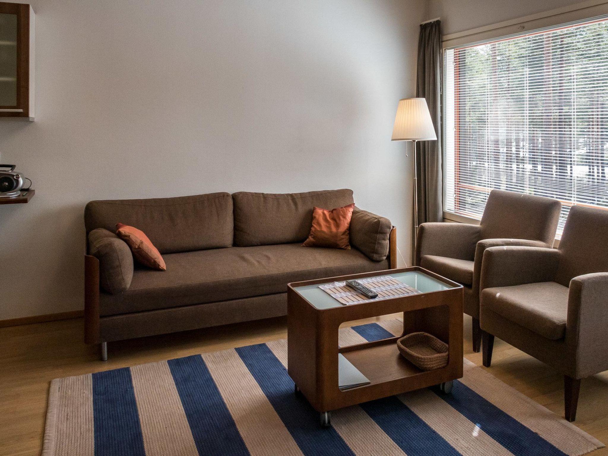 ElinanSydän Tuija partment floor area is 52,5 m². There is combined living room & kitchen. 2 bedrooms, each with separate beds for 2 persons ( in second bed room isn´t window). Living room with sofa-bed for 1-2 persons. Washroom/toilet, sauna (electric heating).