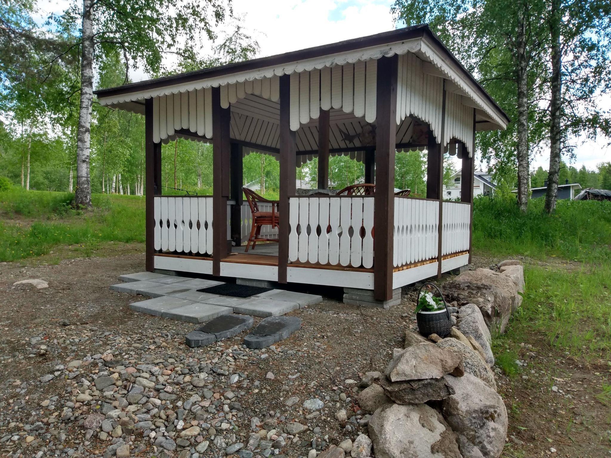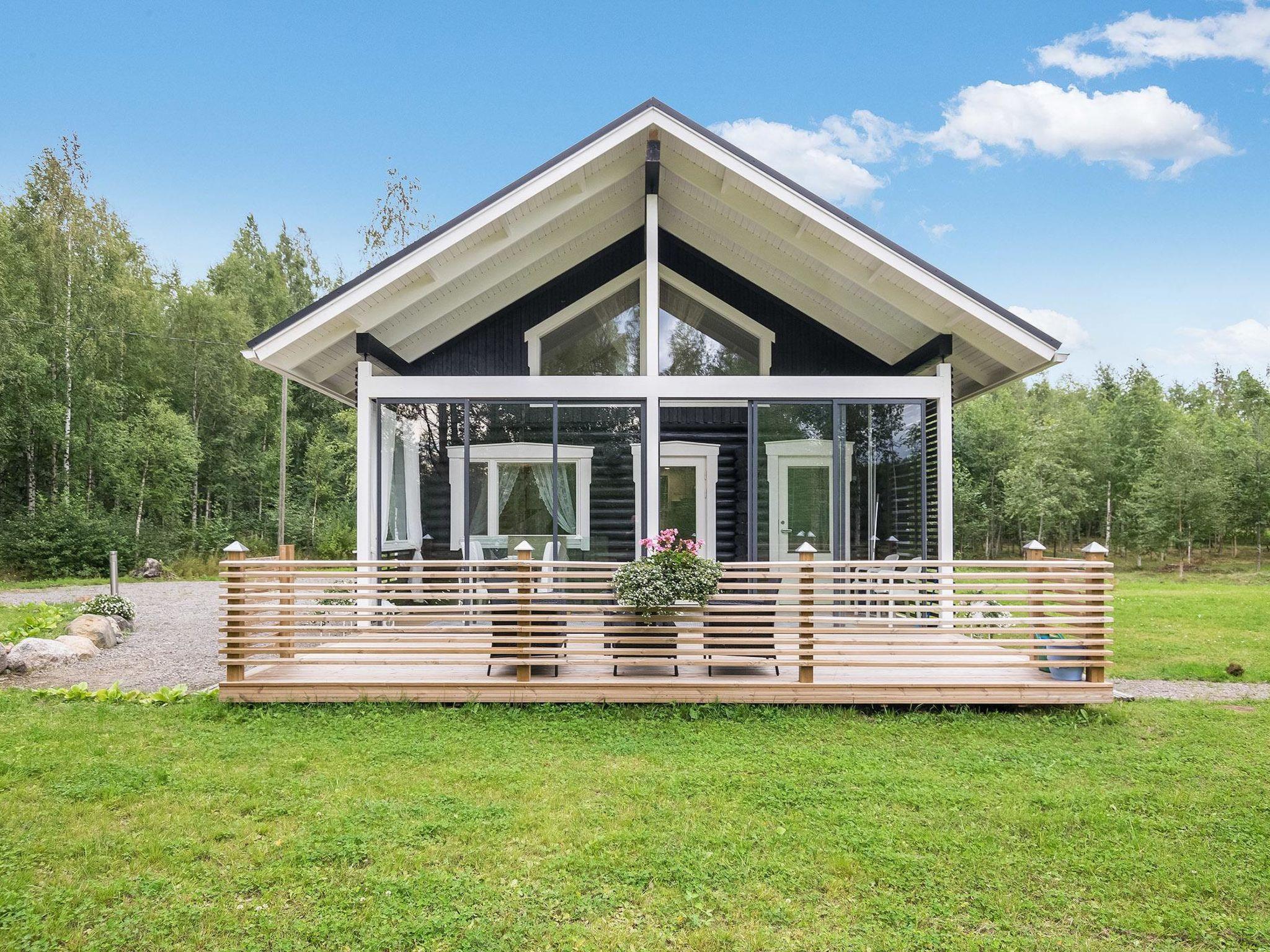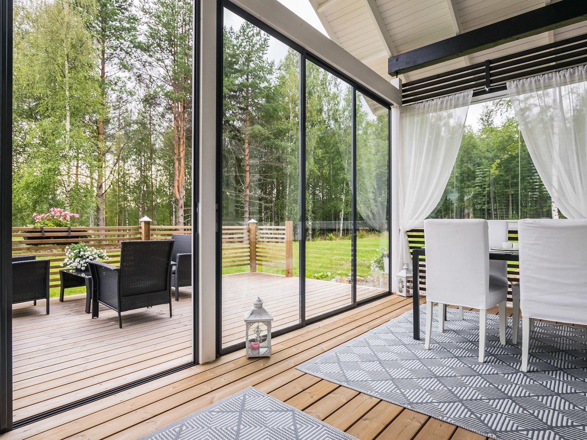 The cabin has a glazed terrace, which is followed by an unglazed terrace as well.
