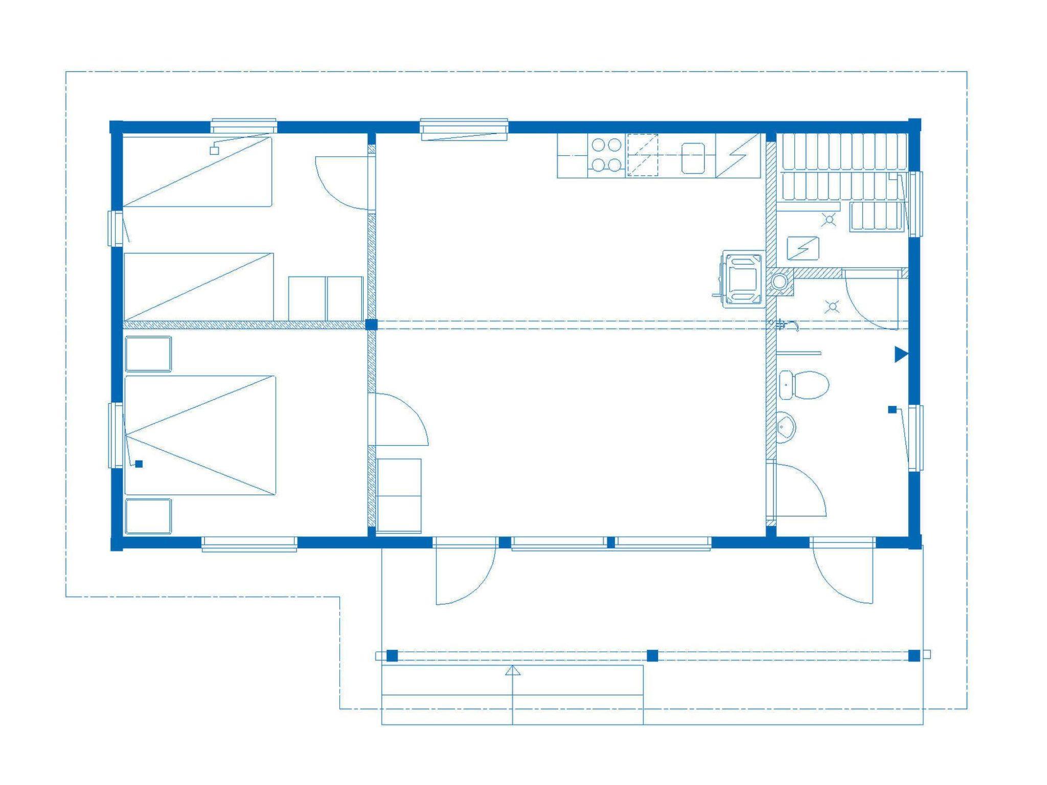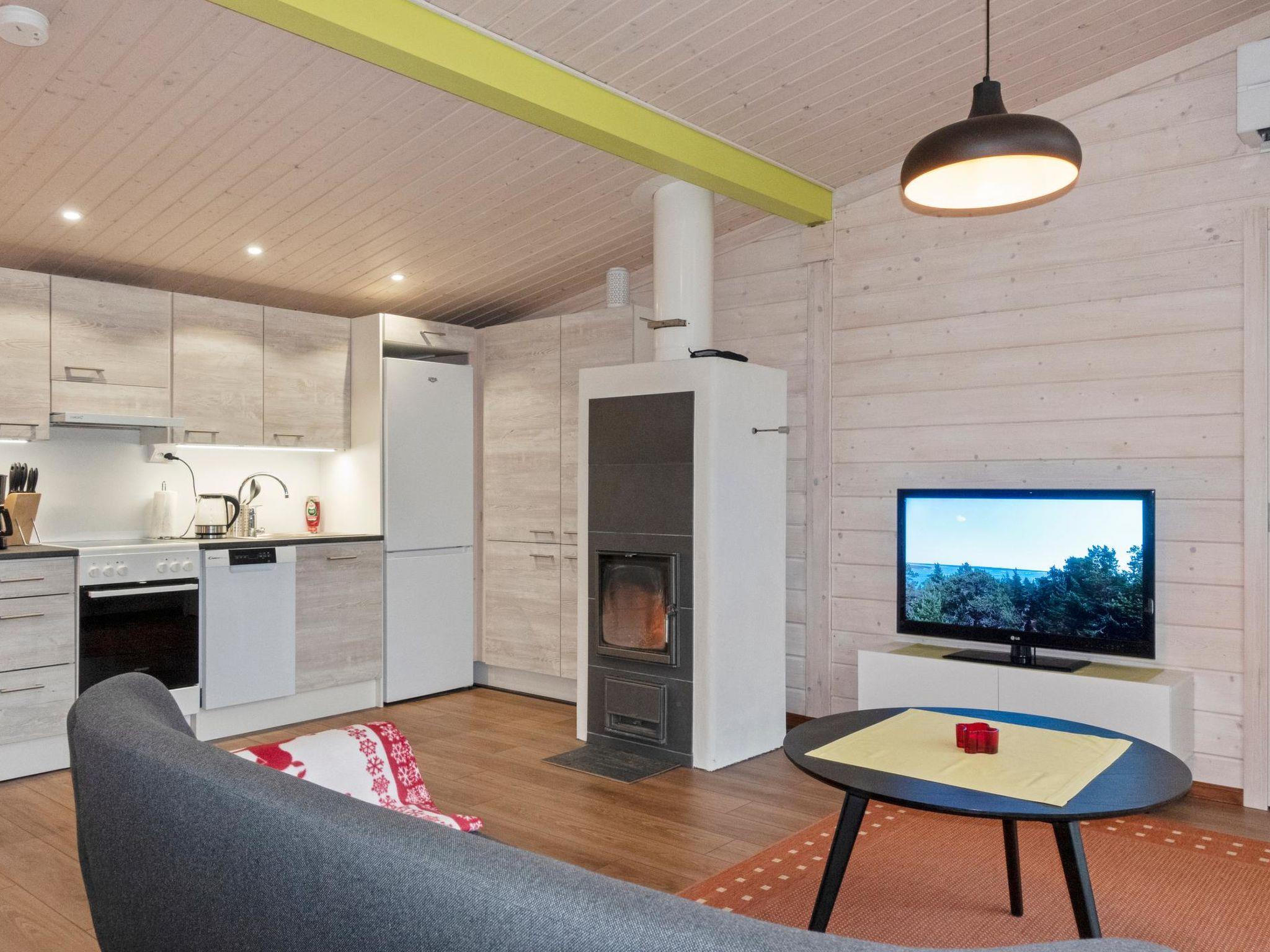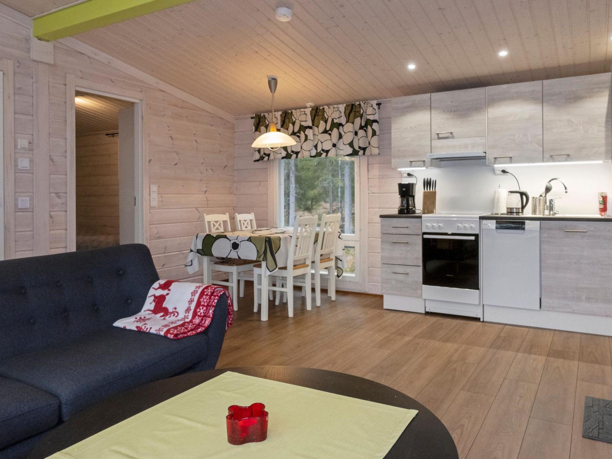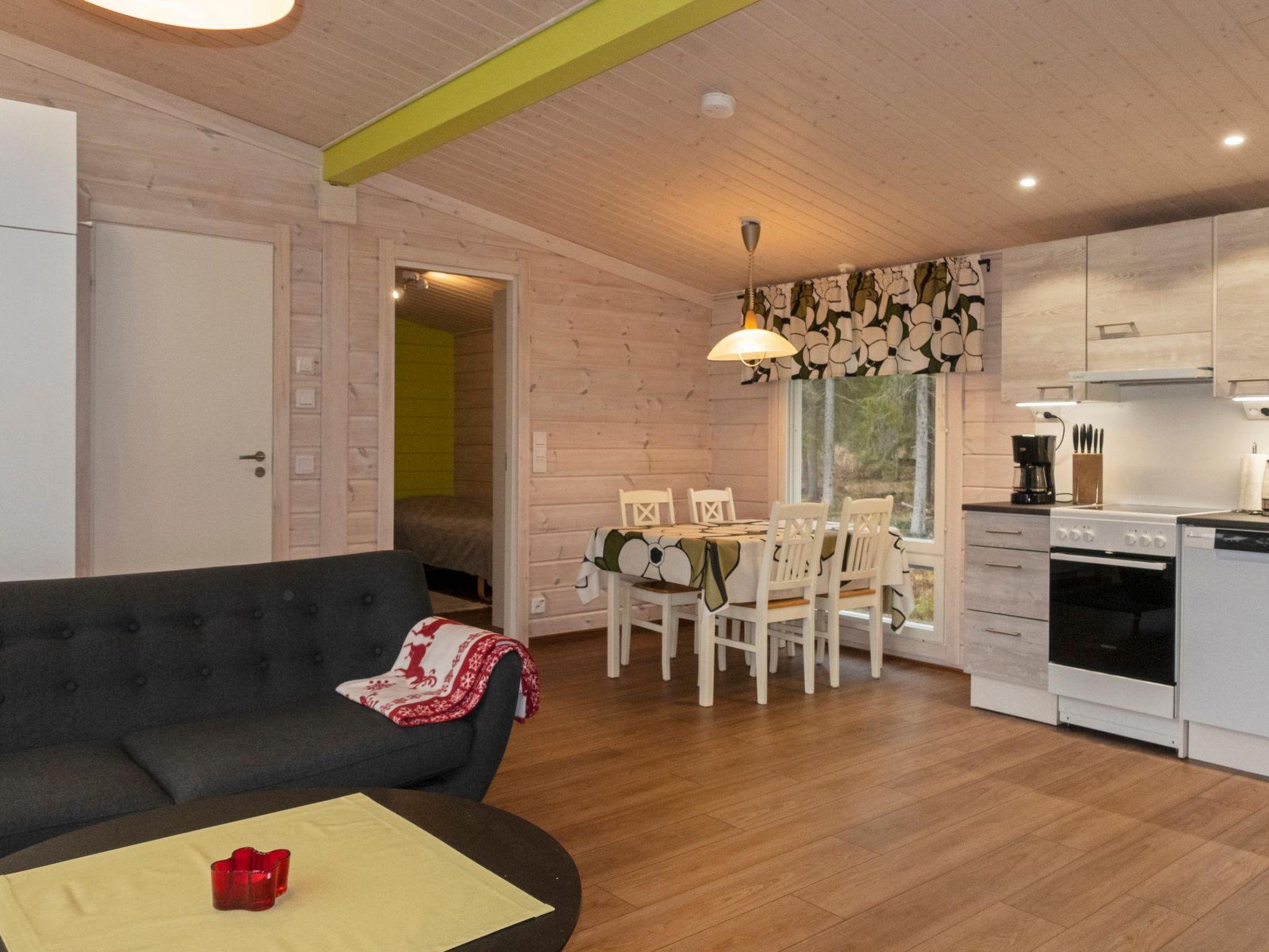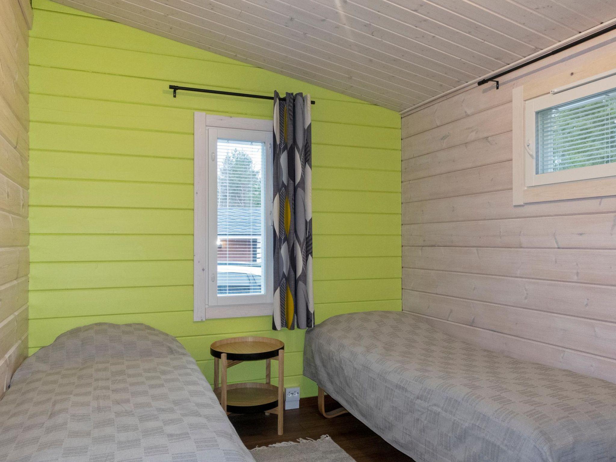 The cabin is built of planed logs, completed in 2022. Living room/kitchen, 2 bedrooms, one with double bed and other with 2 beds, sauna and washroom/WC.