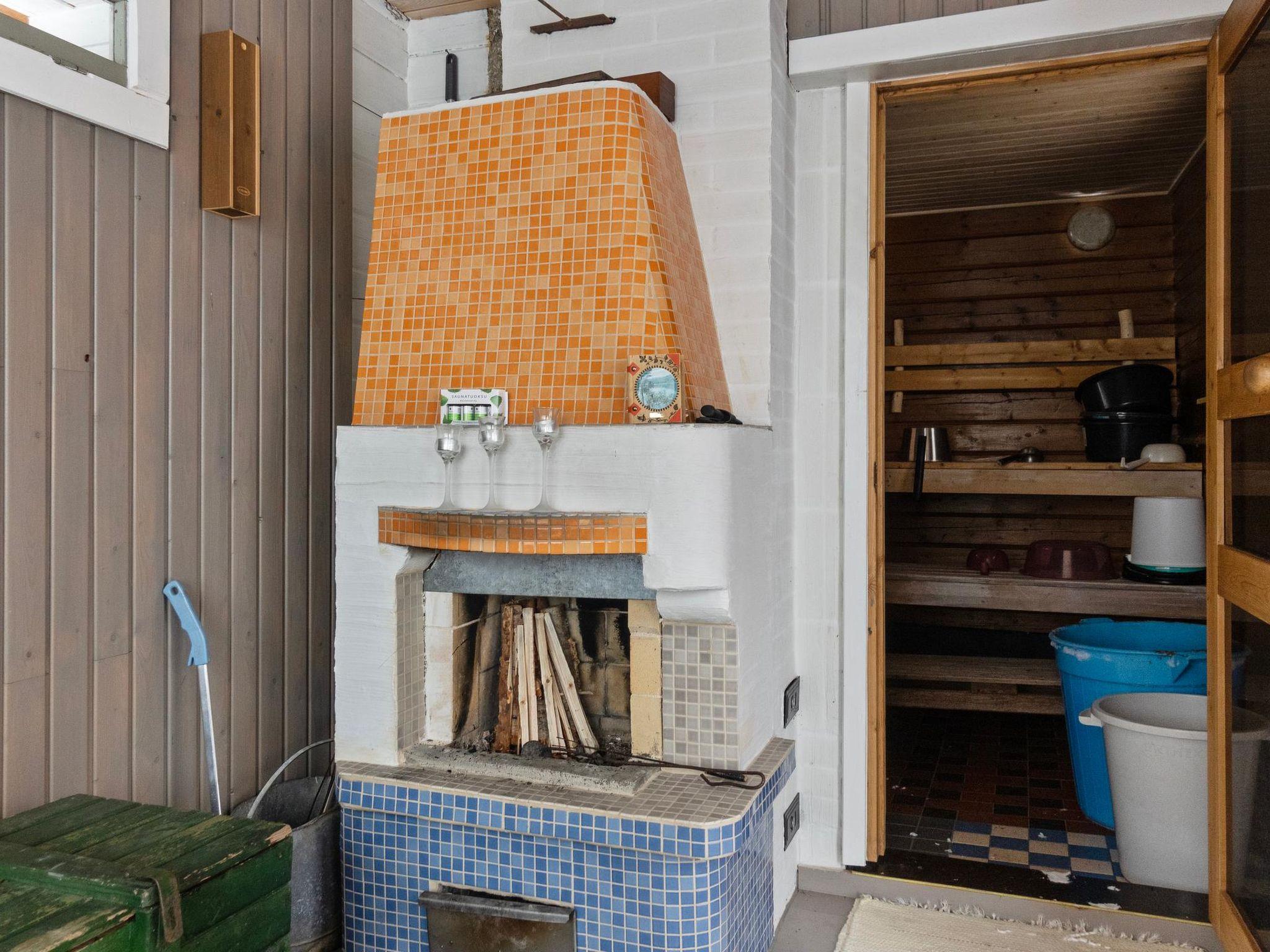 The main building doesn't include a sauna, but there's a traditional Finnish sauna by the lake with a steam room and living area. The sauna has a wood-burning sauna stove and a cauldron heated by wood. Water for the sauna is fetched from the lake (or the main cabin). In addition, there's a cooking hut by the shore to prepare delicious meals.