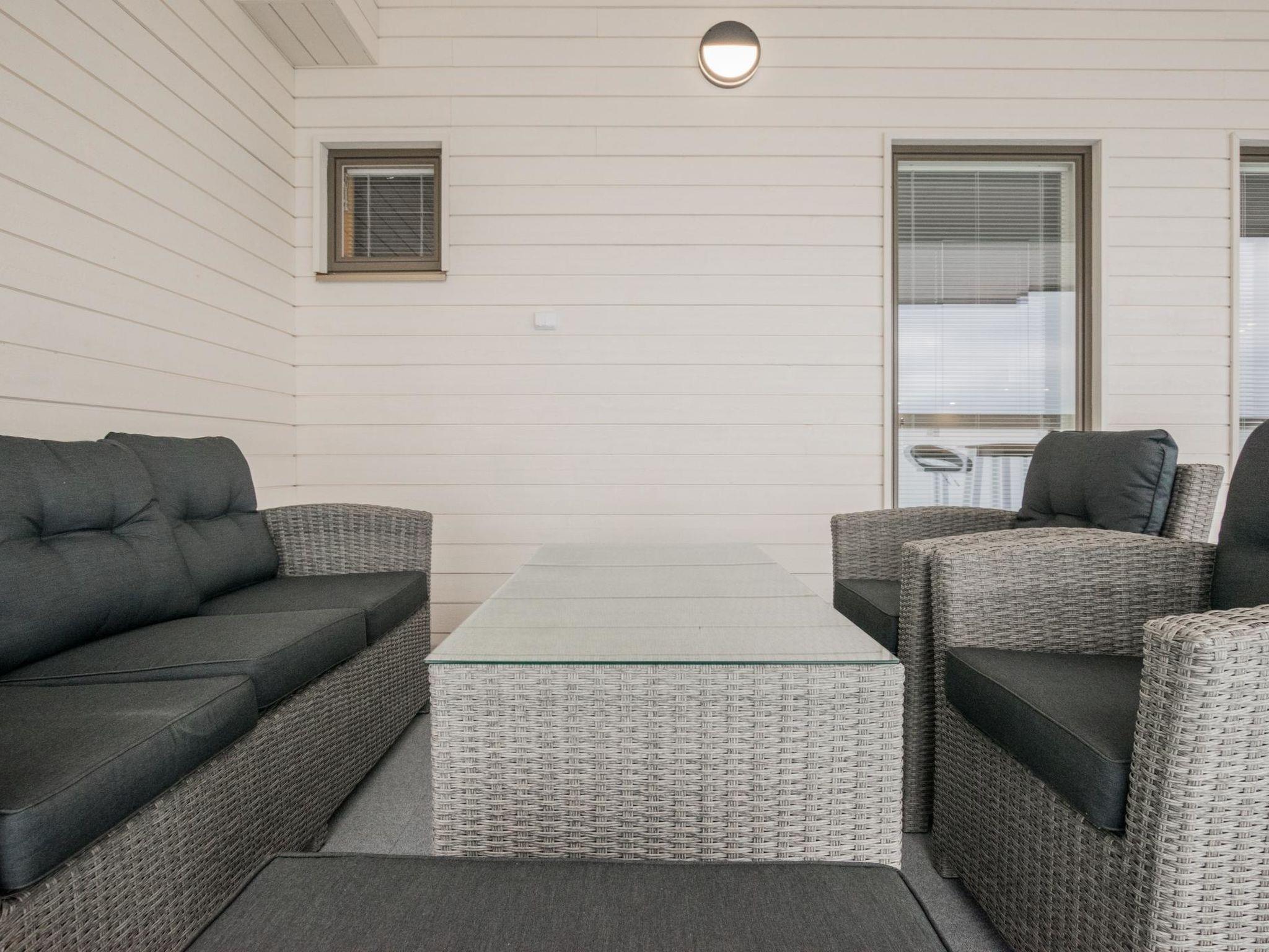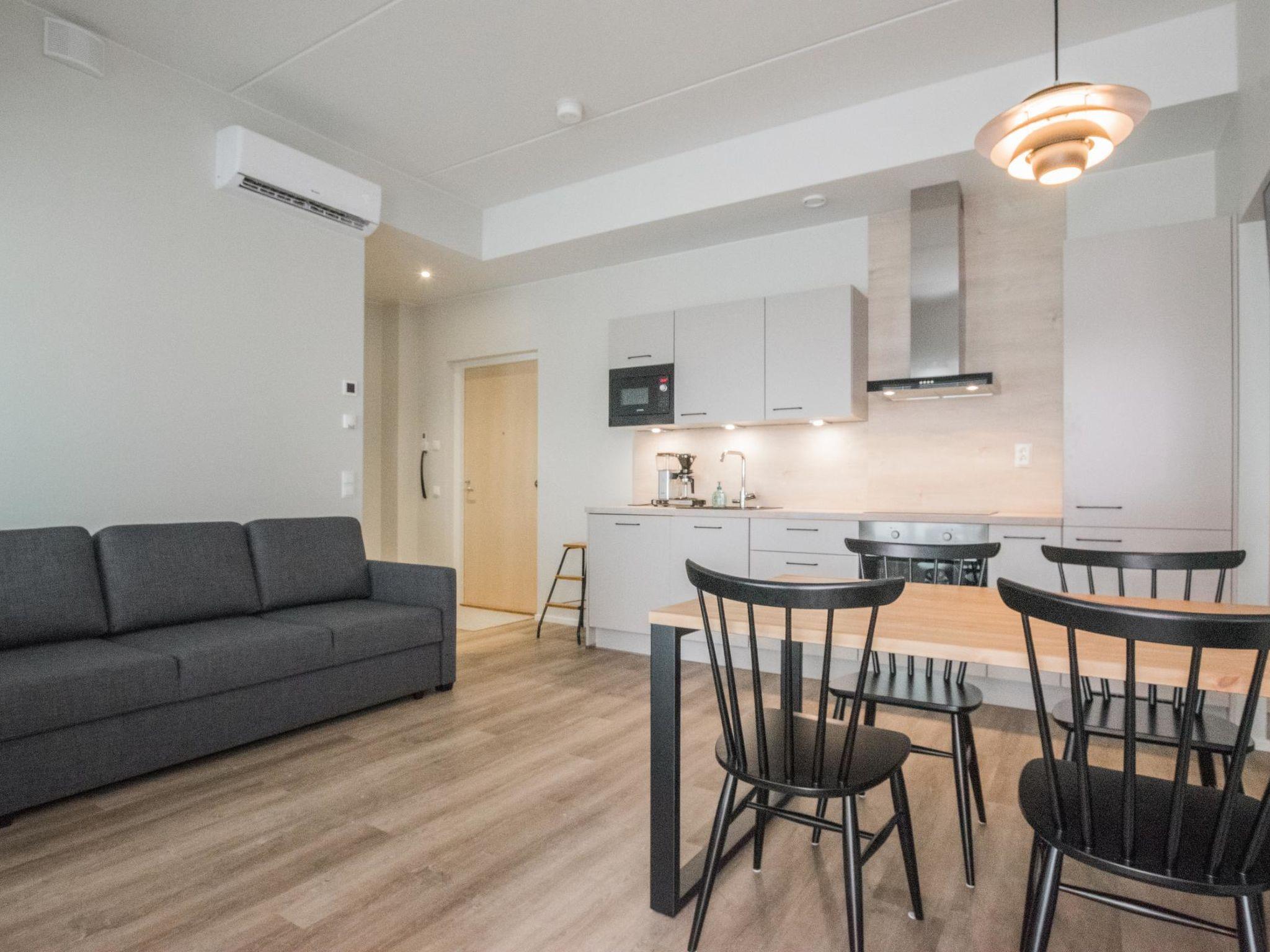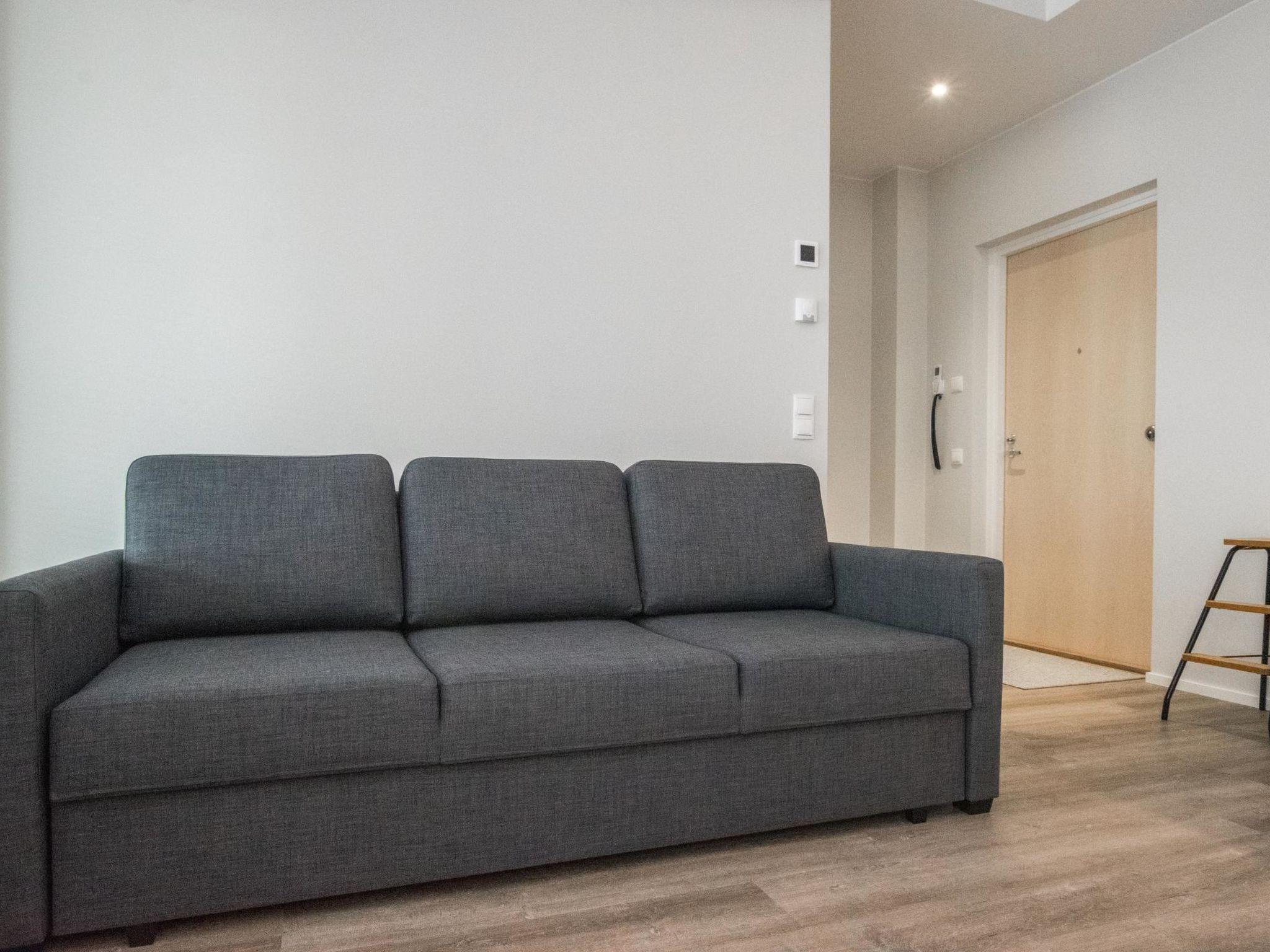 Dagmarin Kulma was built in 2023. It features a living room/kitchen, a living area with a sofa bed (140x190cm for two), and a sleeping alcove with a double bed. There is also an electric sauna, bathroom with shower, WC, washing machine, and a dryer. The spacious glazed balcony has a sofa set for relaxation. The building's inner courtyard offers a parking space with the option for car heating or electric car charging.