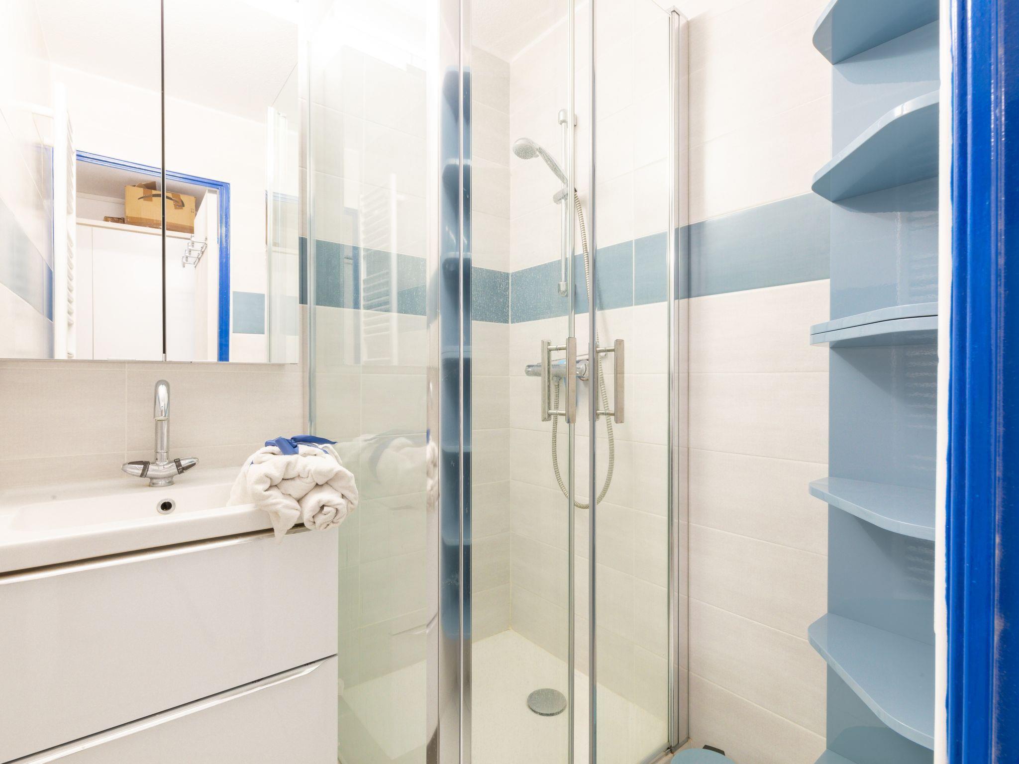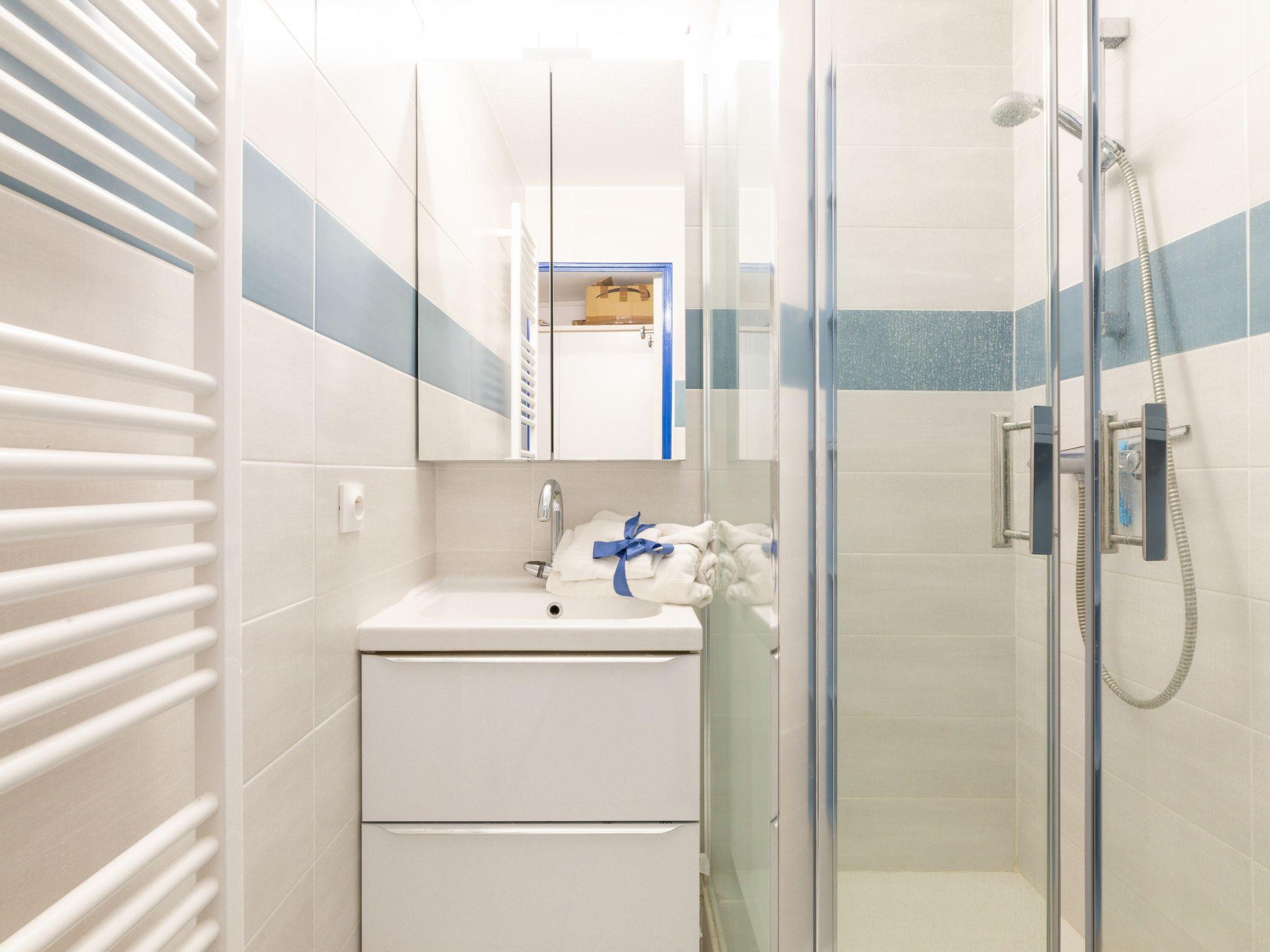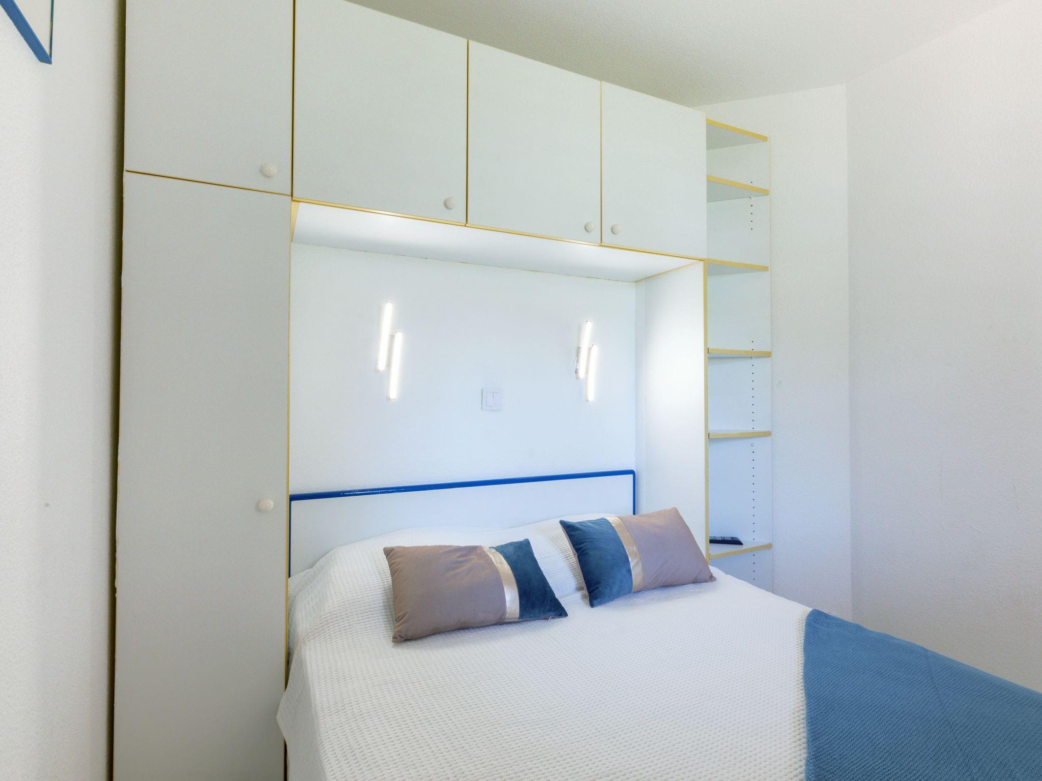"Le Village (E1103)", 2-room apartment 30 m2, on the ground floor. Living room with 2 sofabeds (90 cm, length 190 cm), TV (flat screen), air conditioning. Exit to the terrace, to the patio. 1 room with 1 french bed (140 cm, length 190 cm), TV (flat screen). Kitchenette (4 hot plates, dishwasher, toaster, kettle, freezer, electric coffee machine, combination microwave). Shower, sep. WC. Terrace 14 m2, patio. Terrace furniture. Beautiful view of the sea. Facilities: washing machine. Internet (WiFi, extra). Parking space n 2649 (roofed, 1 car), height 180 cm. Please note: non-smokers only. Smoke alarm. Offer by a private individual according to Art. 155, IV of CGI.