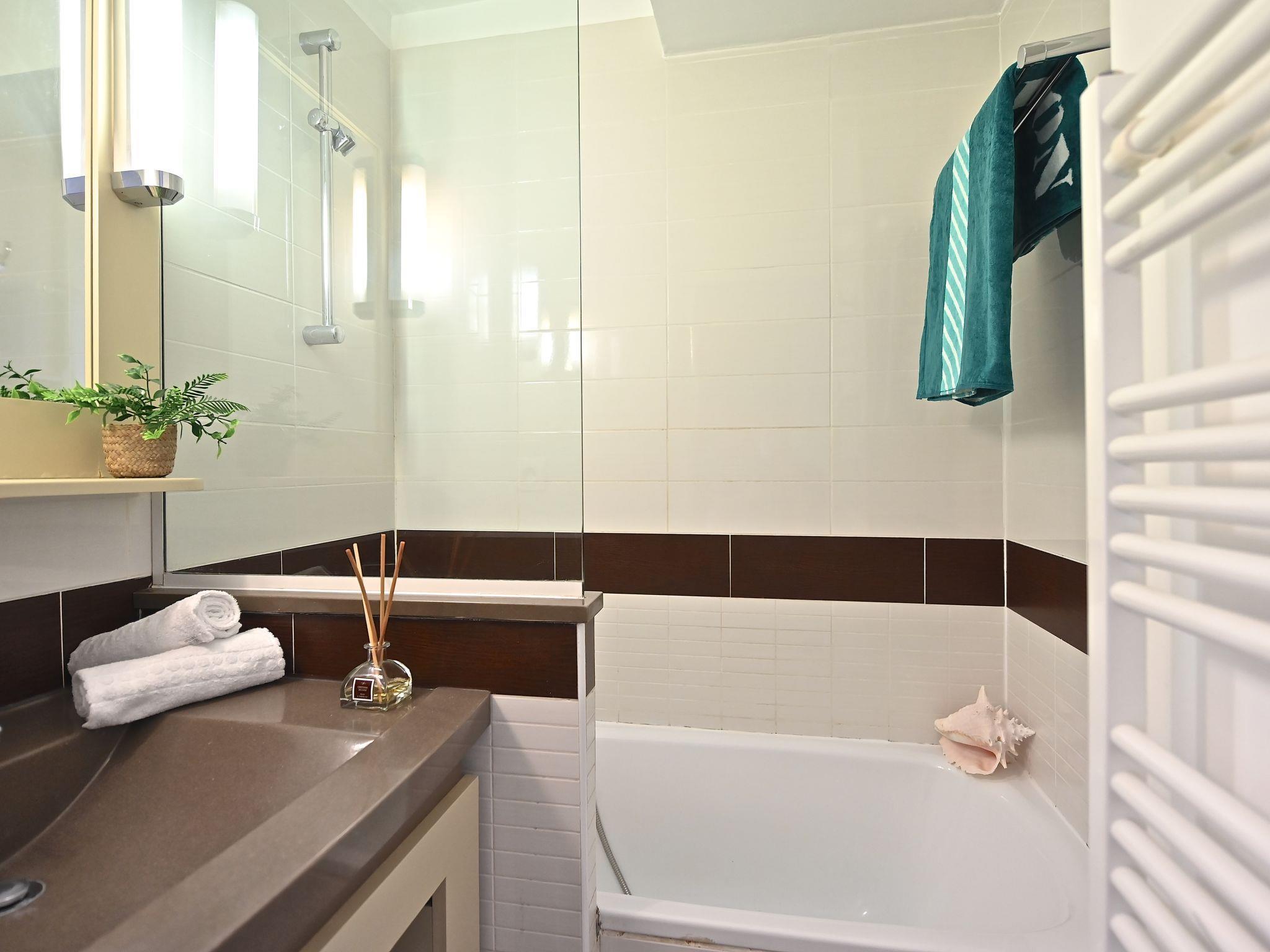 "L'Esquinade (FH205)", 2-room apartment 28 m2 on 1st floor. Living room with 1 fold-away bed (80 cm, length 190 cm), 1 pull-out bed (2 x 80 cm, length 190 cm), TV (flat screen), air conditioning. Exit to the terrace. 1 room with 1 french bed (140 cm, length 190 cm). Exit to the terrace. Kitchenette (dishwasher, 4 induction hot plates, toaster, kettle, microwave, electric coffee machine). Bathroom, sep. WC. Electric heating. Terrace 10 m2. Terrace furniture. View of the sea. Facilities: Internet (WiFi, extra). Parking space n 2419 (roofed, 1 car), height 180 cm. Please note: non-smokers only. Smoke alarm. Offer by a private individual according to Art. 155, IV of CGI.