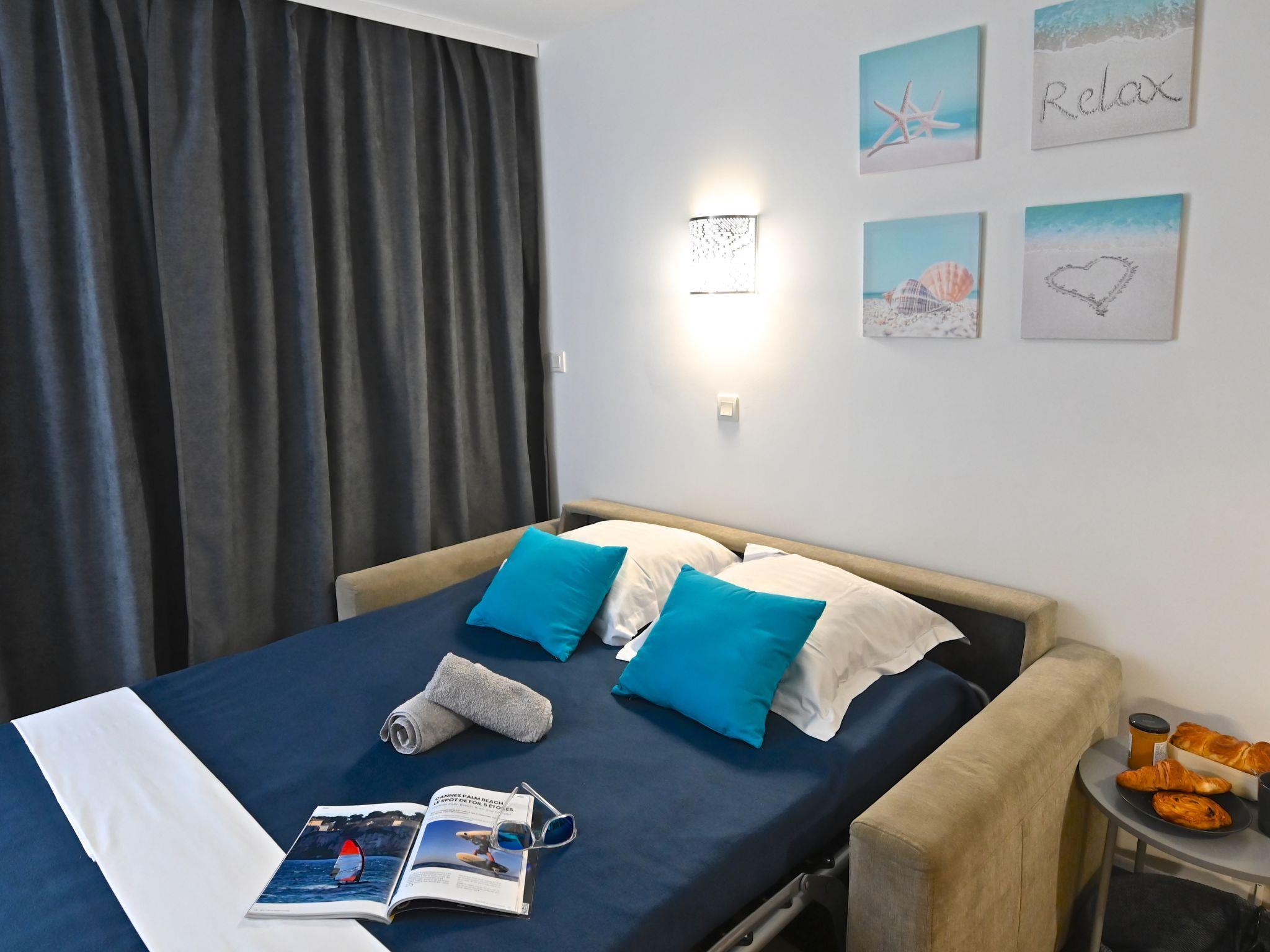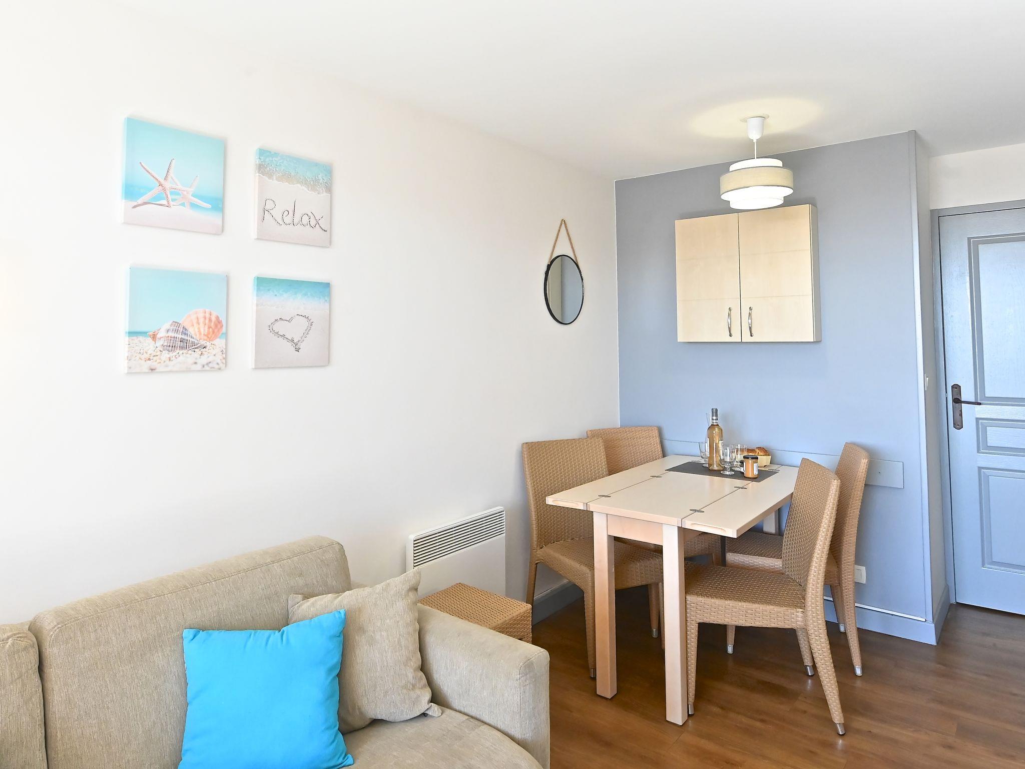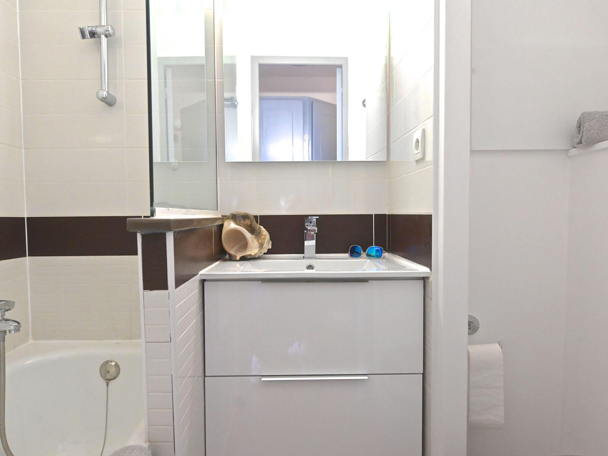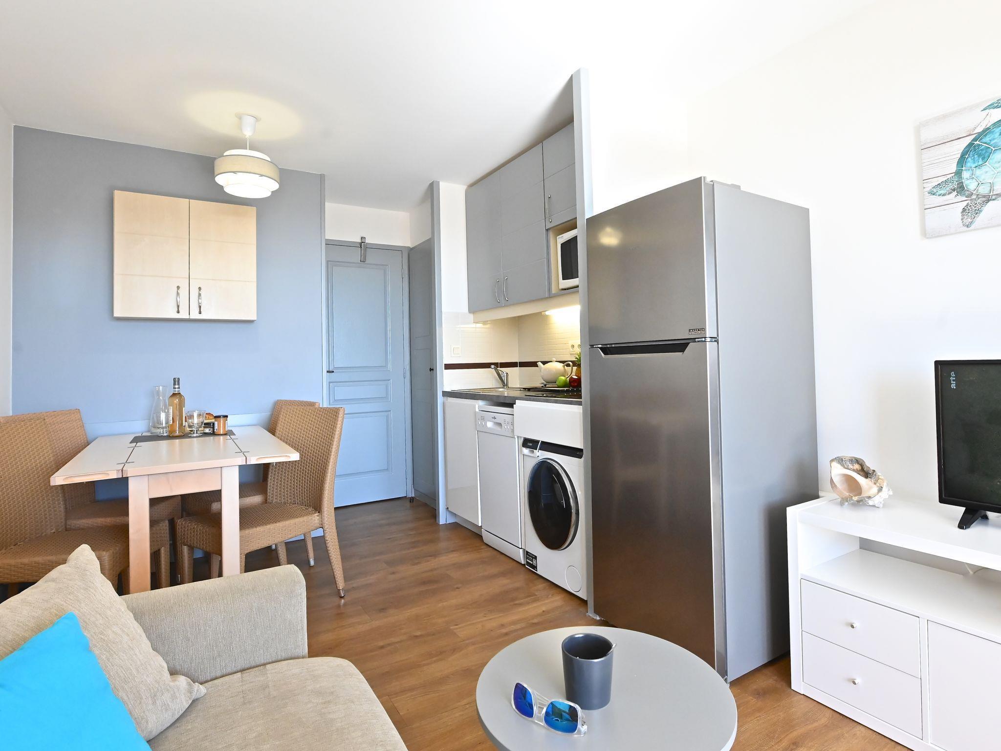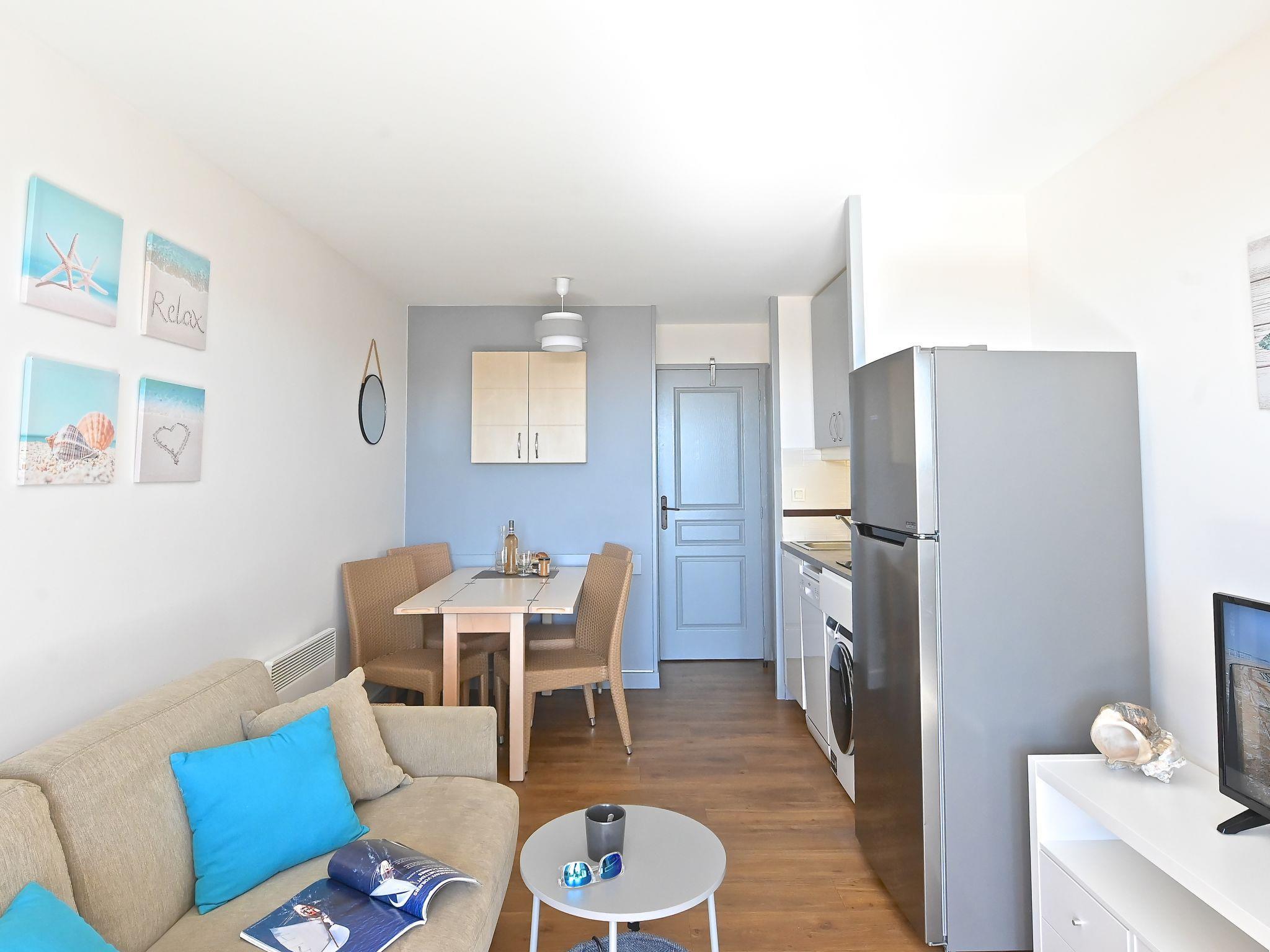 "L'Esquinade (G2 115)", 1-room studio 23 m2 on 1st floor. Object suitable for 2 adults + 2 children. Bright, fully renovated in 2025, comfortable furnishings: living room with 1 double sofabed (1 x 140 cm, length 190 cm), TV (flat screen), air conditioning. Exit to the terrace. Sleeping alcove with 1 x 2 bunk beds (90 cm, length 190 cm). Kitchenette (dishwasher, 4 ceramic glass hob hotplates, toaster, kettle, microwave, freezer, electric coffee machine, Capsules for coffee machine (Dolce Gusto) extra). Bath/WC. Electric heating. Terrace 10 m2, roofed, south facing position. Terrace furniture. Partial view of the sea, the mountains and golf course. Facilities: washing machine. Internet (WiFi, extra). Parking (1 car). Please note: non-smokers only. Maximum 1 pet/ dog allowed. Smoke alarm. Offer by a private individual according to Art. 155, IV of CGI.