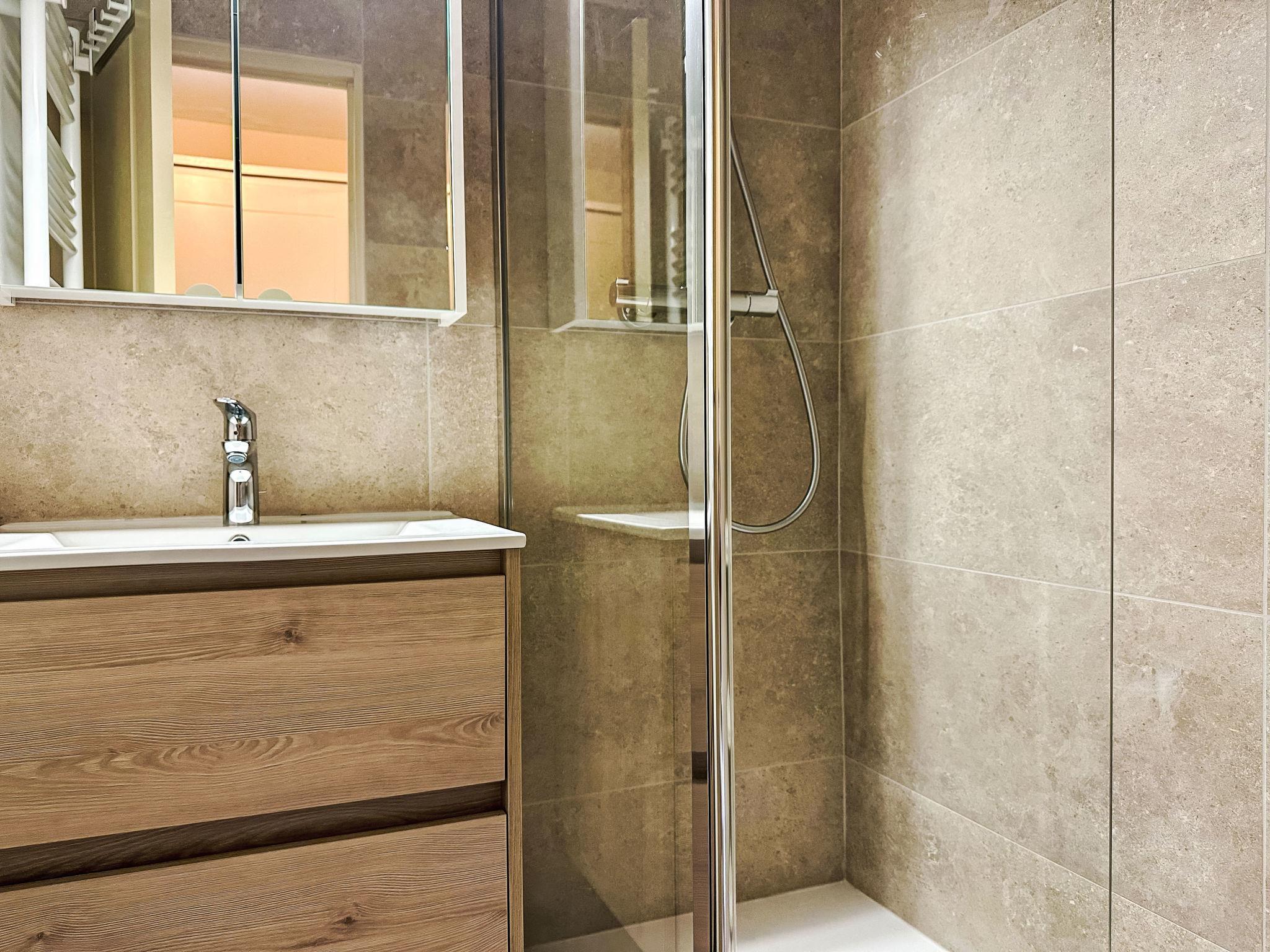 "L'Esquinade (J5 113)", 2-room apartment 28 m2 on 1st floor, south-east facing position. Object suitable for 4 adults. Bright, partly renovated in 2023, comfortable and beautiful furnishings: living room with 1 sofabed (140 cm, length 190 cm), TV (flat screen). Exit to the terrace, south facing position and east facing position. 1 room with 1 french bed (1 x 140 cm, length 190 cm). Kitchenette (4 hot plates, dishwasher, 4 ceramic glass hob hotplates, toaster, kettle, microwave, electric coffee machine, Capsules for coffee machine (NESPRESSO) extra). Bathroom, sep. WC. Electric heating, air-conditioning. Terrace 10 m2, south facing position and, east facing position. Terrace furniture. Very beautiful view of the sea. Facilities: Internet (WiFi, extra). Parking space n 2232 (roofed, 1 car), height 180 cm. Please note: non-smokers only. Maximum 1 pet/ dog allowed. Smoke alarm. Offer by a private individual according to Art. 155, IV of CGI.